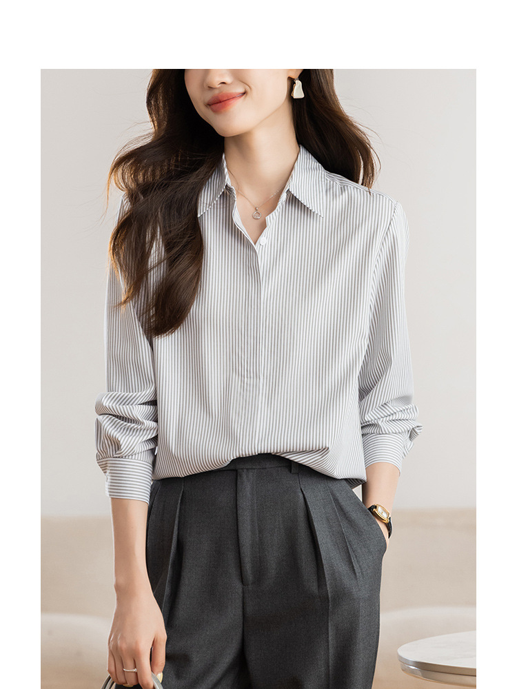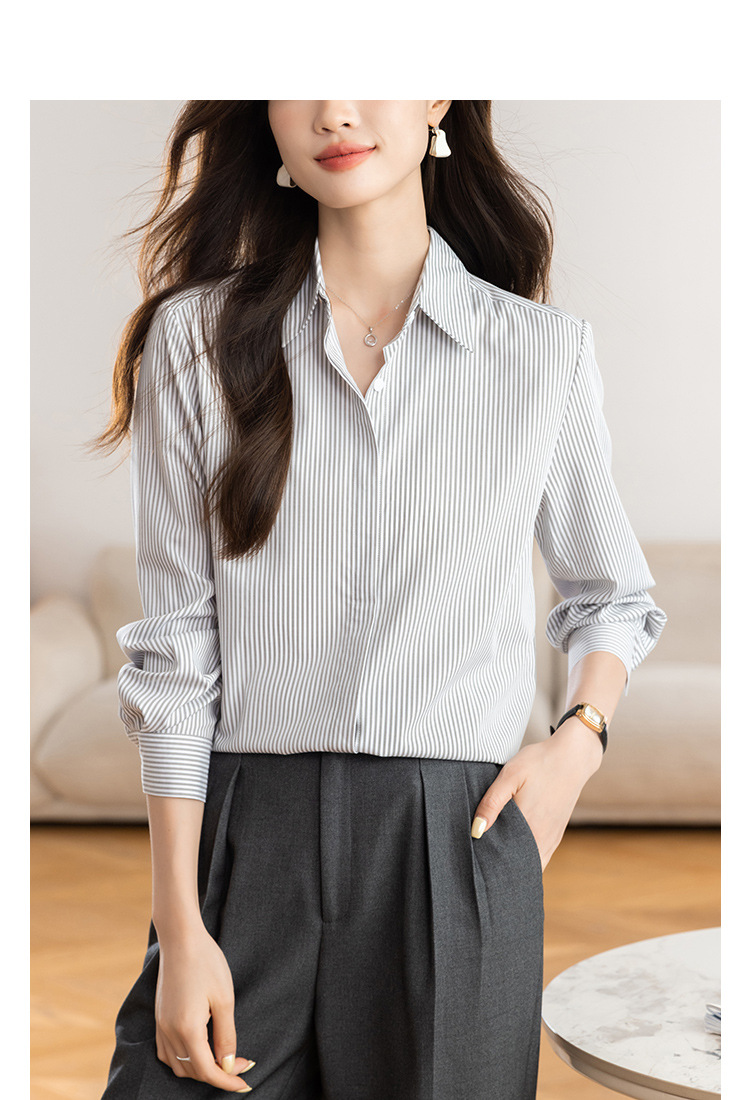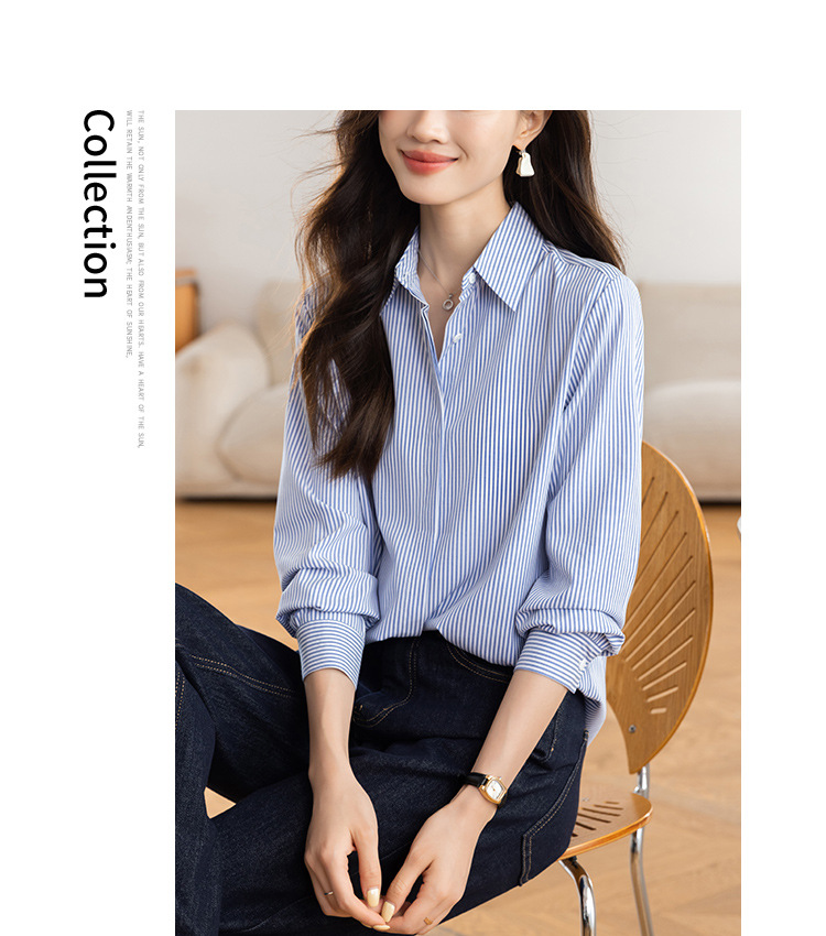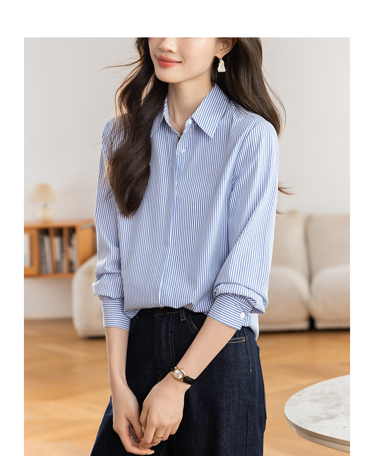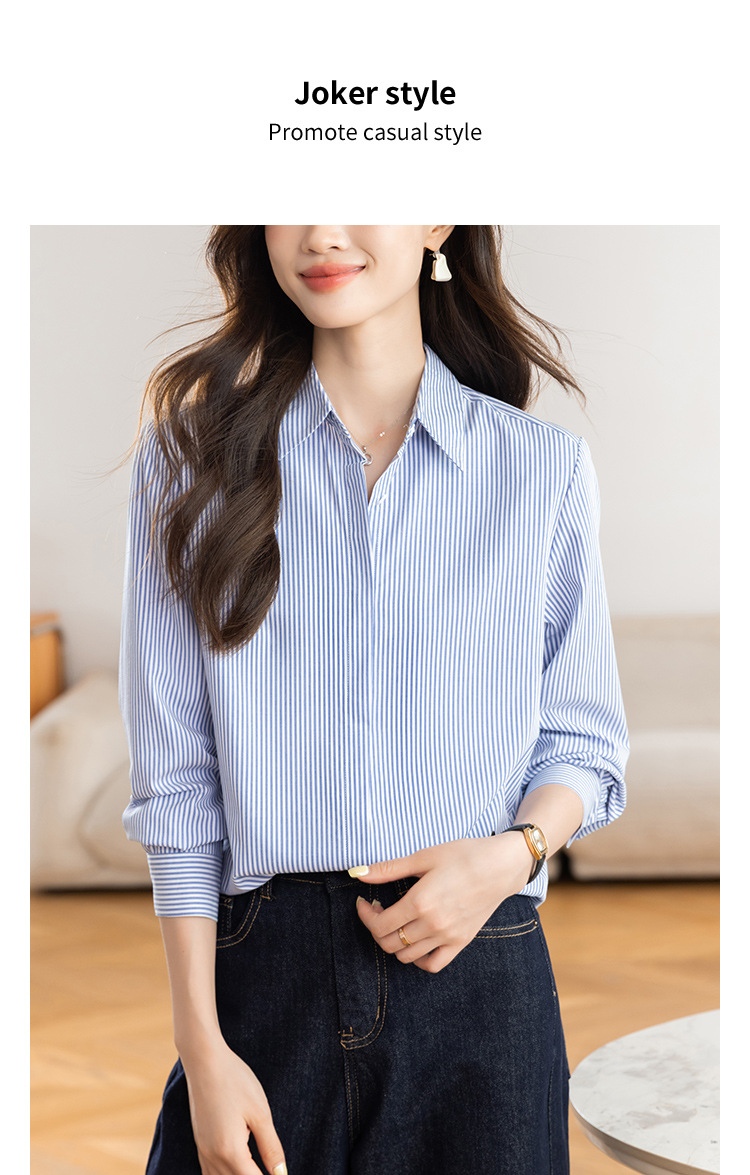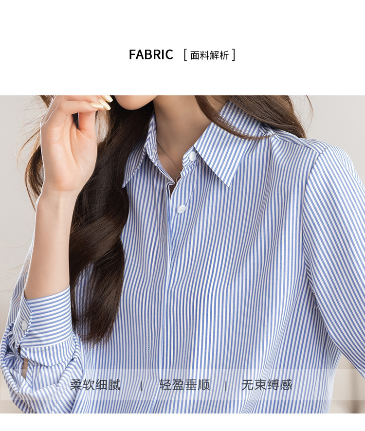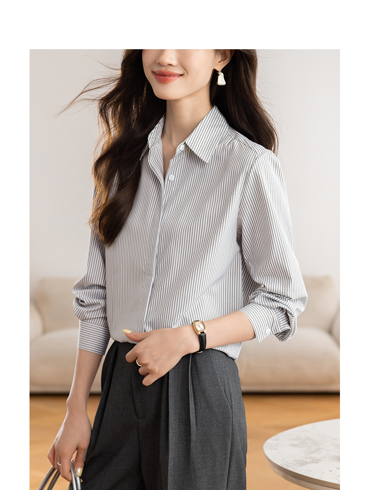 KQL 627T8333纯色简约条纹衬衫长袖宽松显瘦打底衬衣