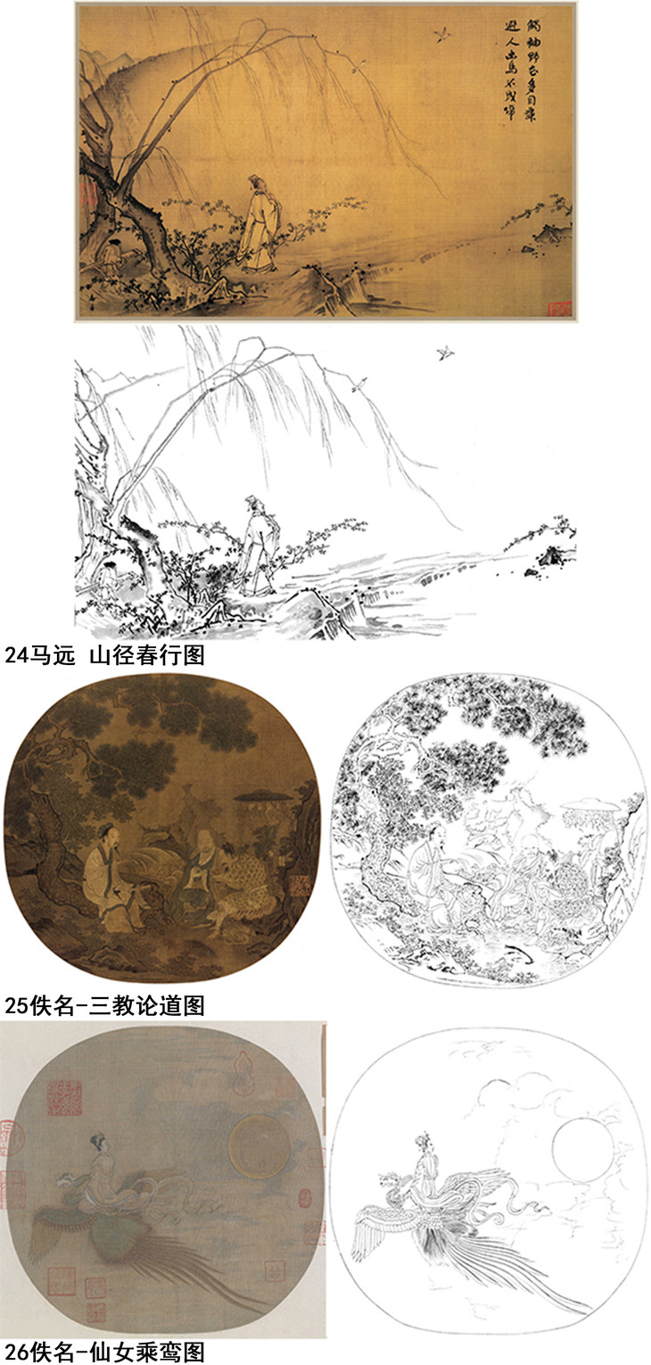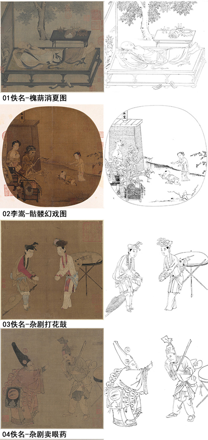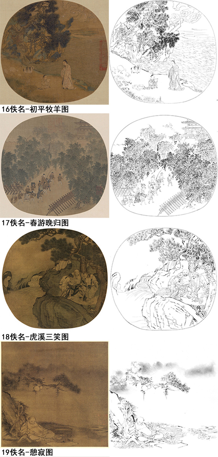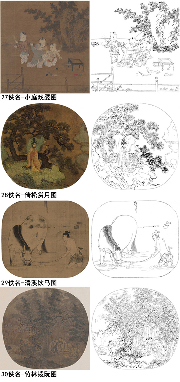 宋画人物小品白描底稿一套30幅册页-DB85
