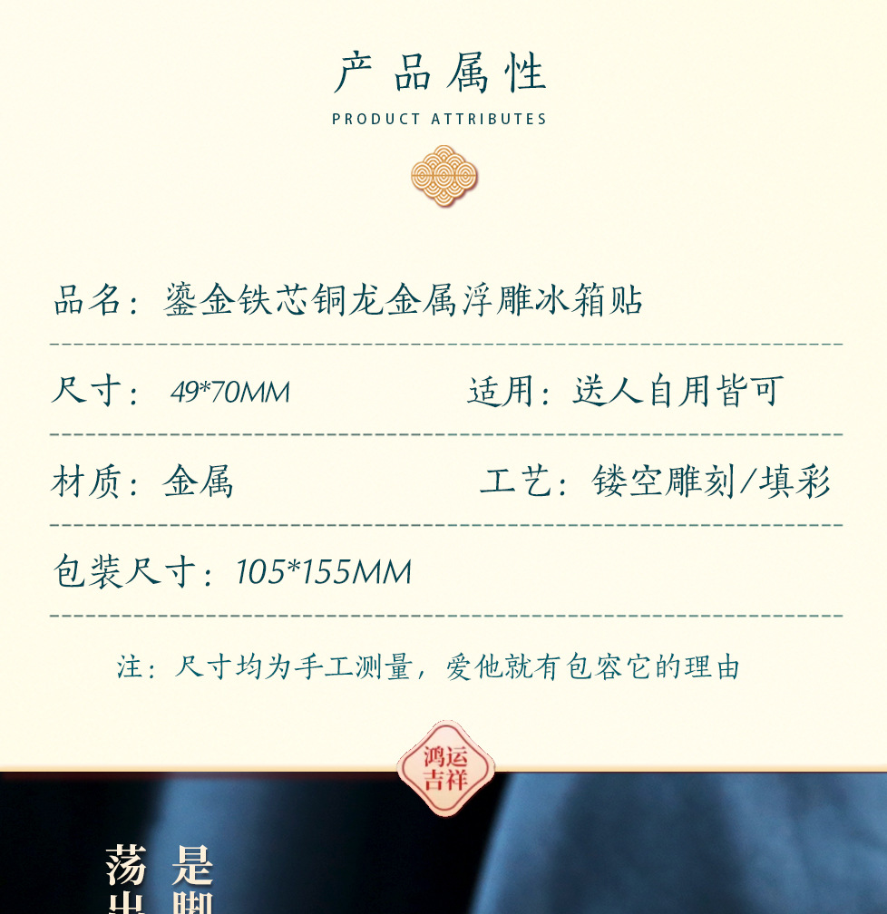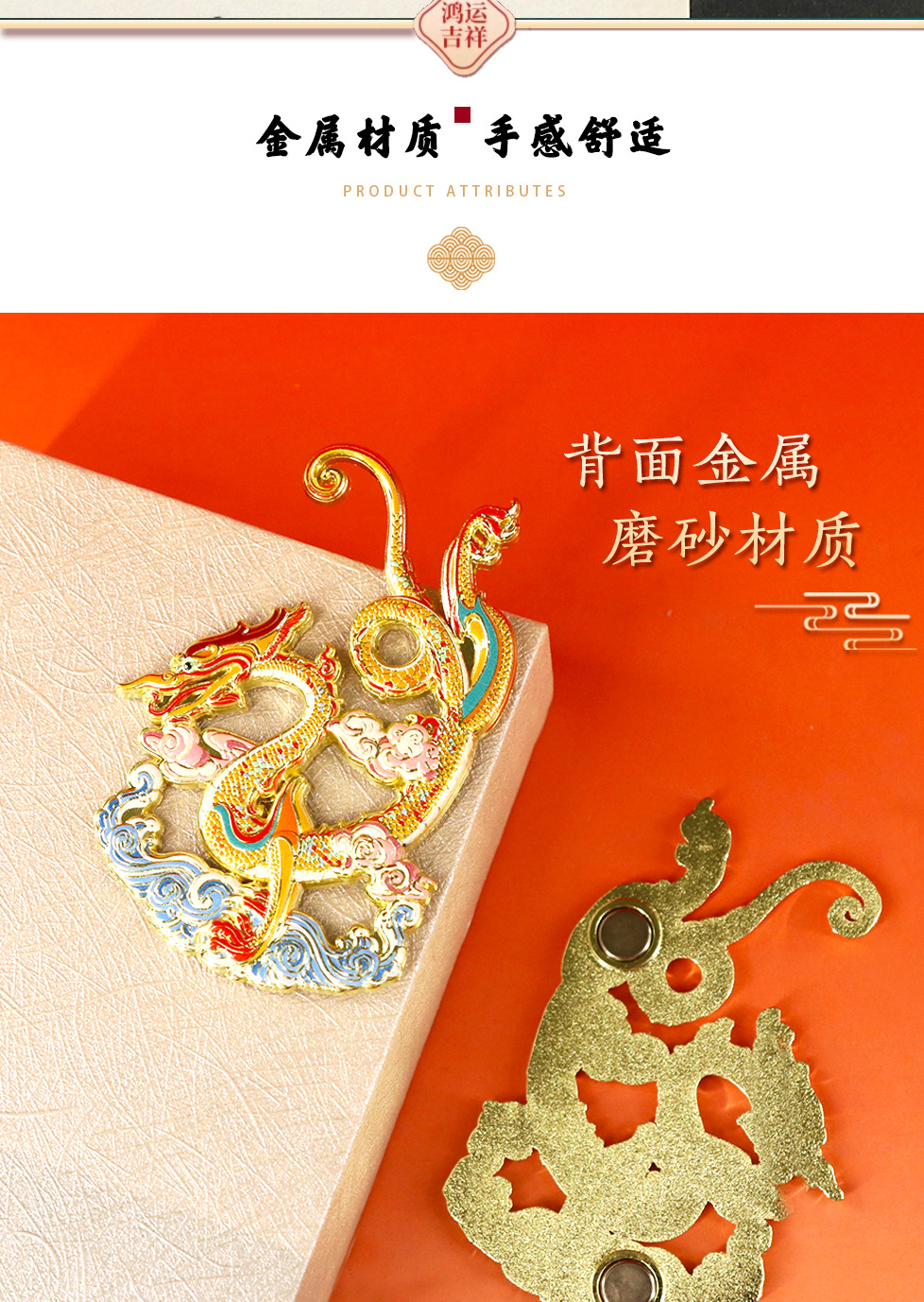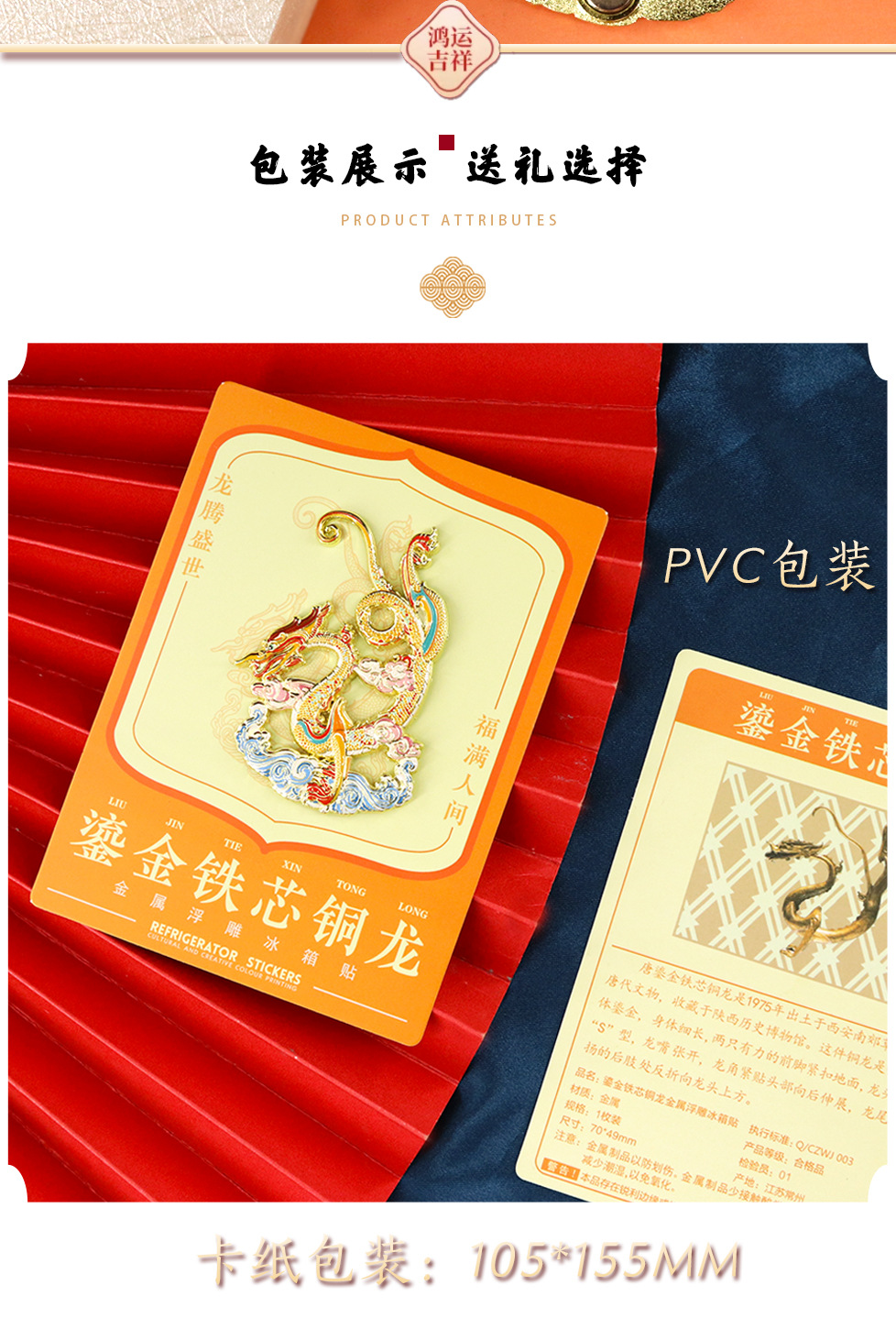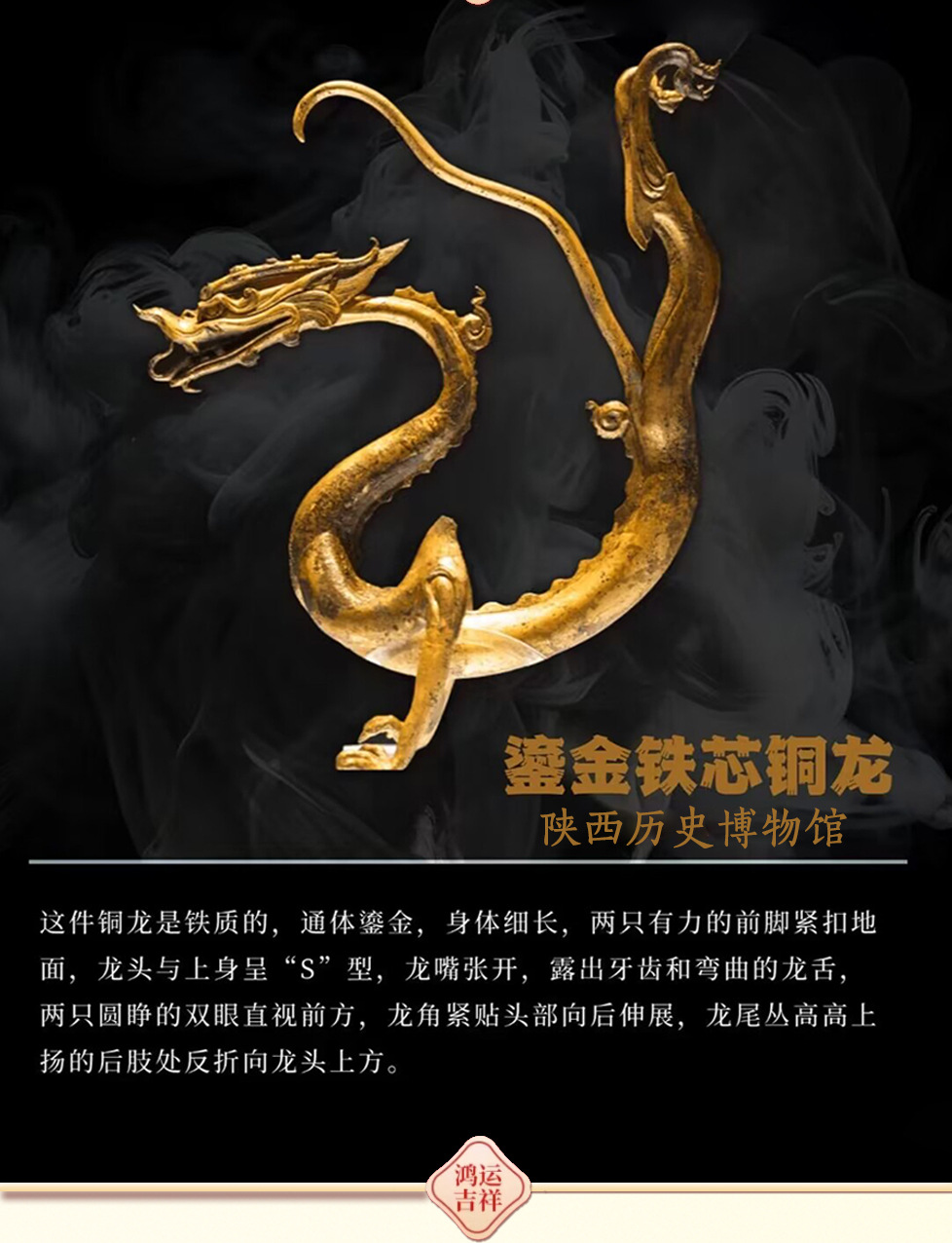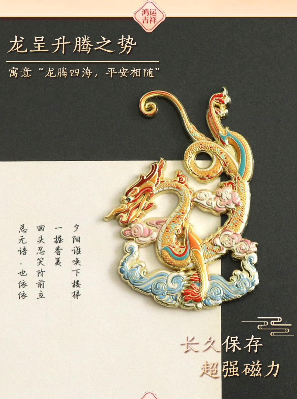【鎏金铜龙】金属祥云镂空冰箱贴唐代博物馆文创设计感装饰磁吸贴