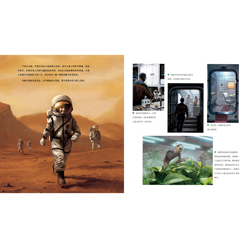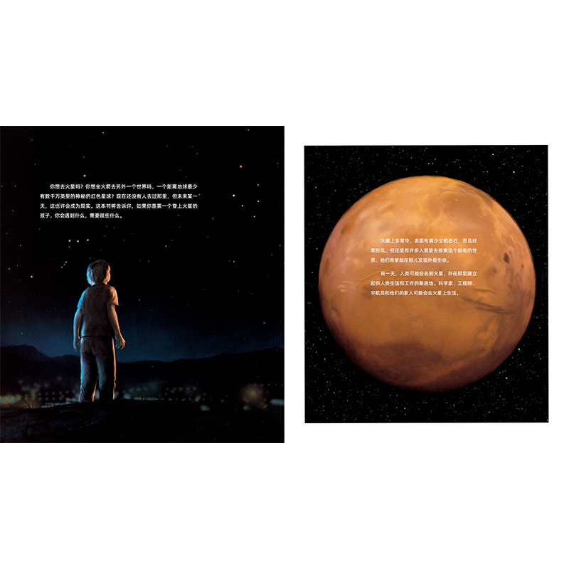 作家兼插画家帕特里克·奥布莱恩用翔实的文字和精彩的插画叙述了一段充满幻想和科学的旅程,邀请读者一起展望未来的太空生活。细节丰富,情节生动,书的最后还列出了更多关于火星的知识,是一部不可多得的火星探索主题绘本。