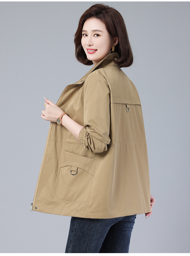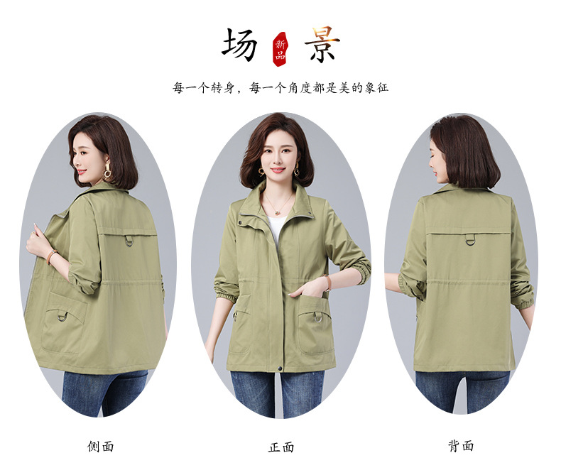连帽短款风衣外套加肥加大码中老年妈妈女装2025