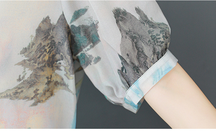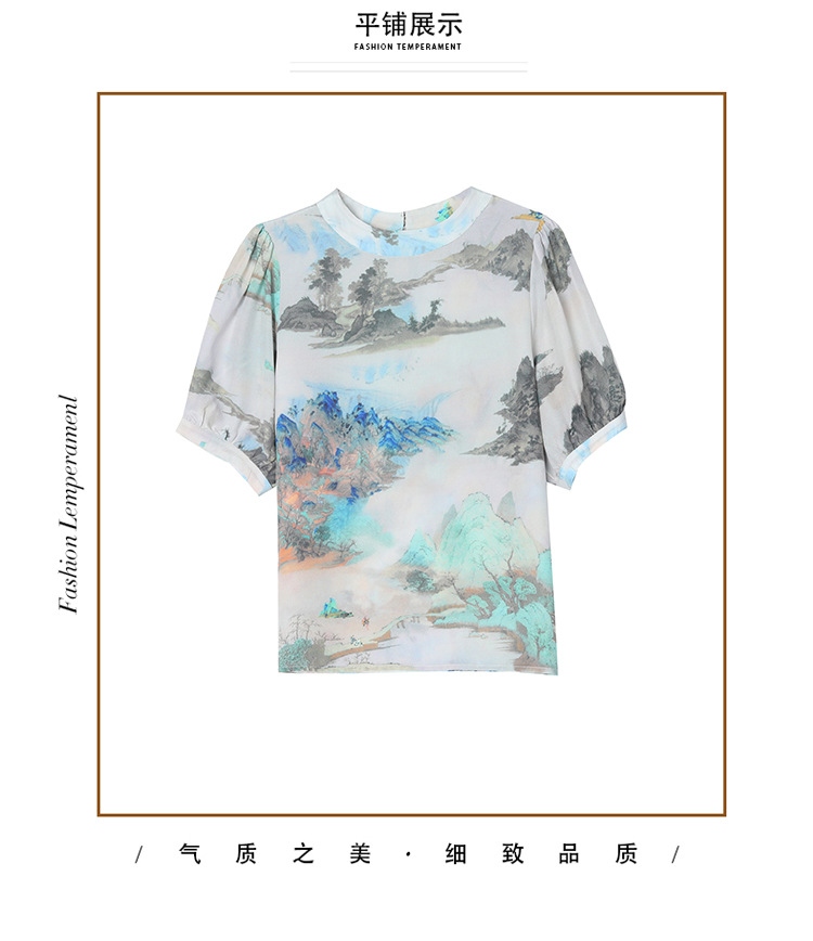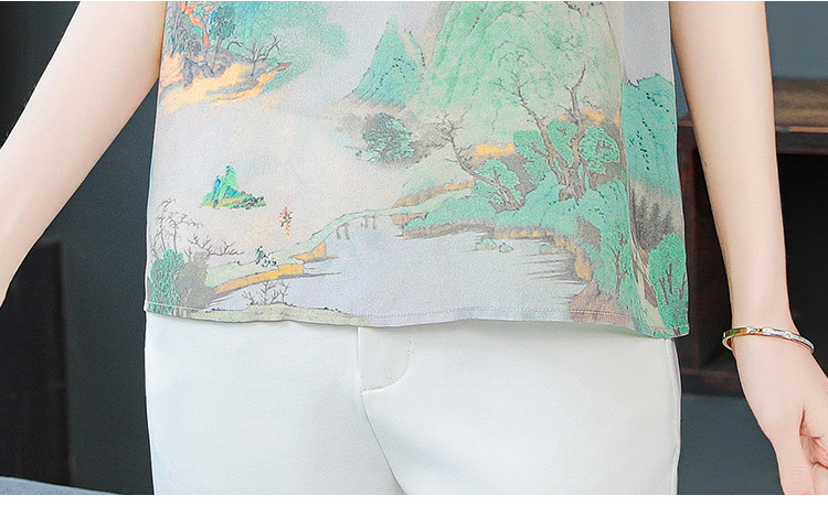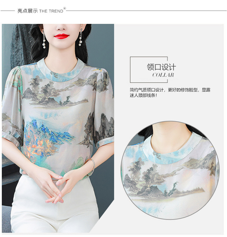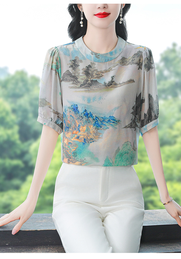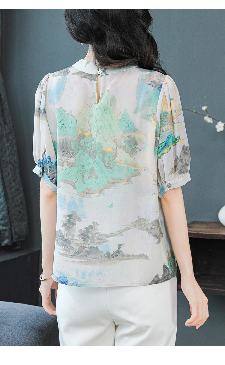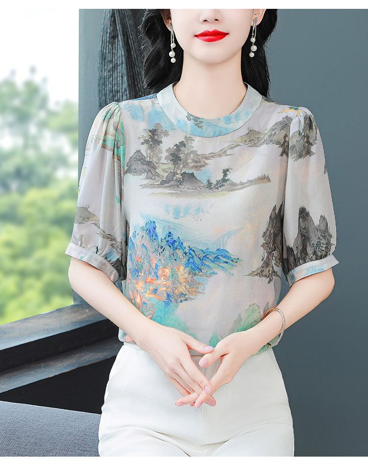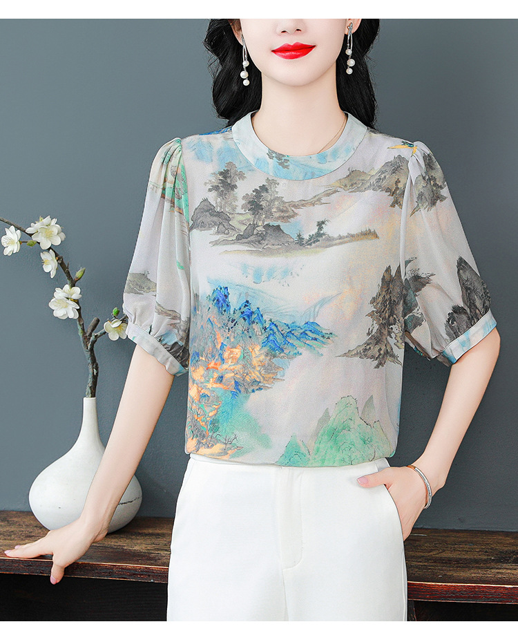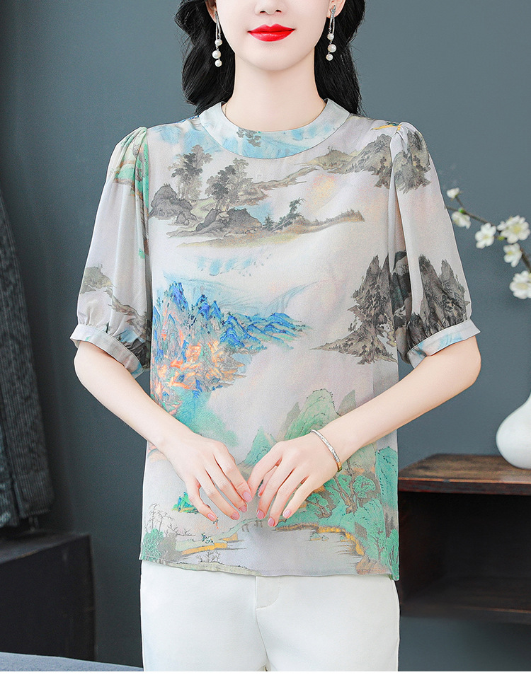 SMZ18516国风印花小衫女士夏季2024新款中老年妈妈宽松遮肚子套头休闲上衣