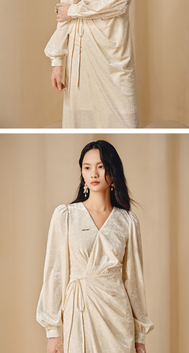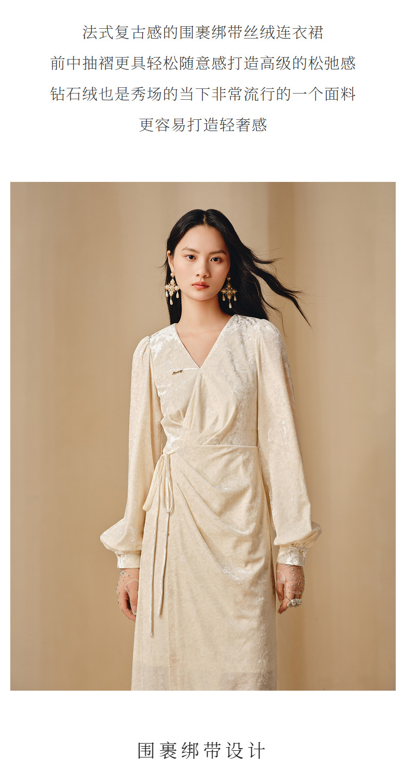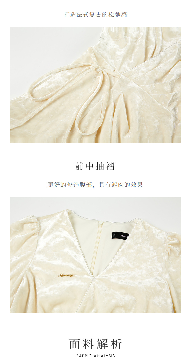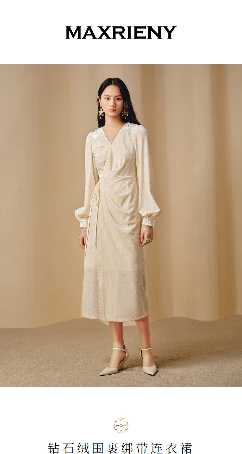 玛克门店发货:MAXRIENY法式复古连衣裙钻石绒围裹绑带松弛感裙子(货号:MC88DR808)