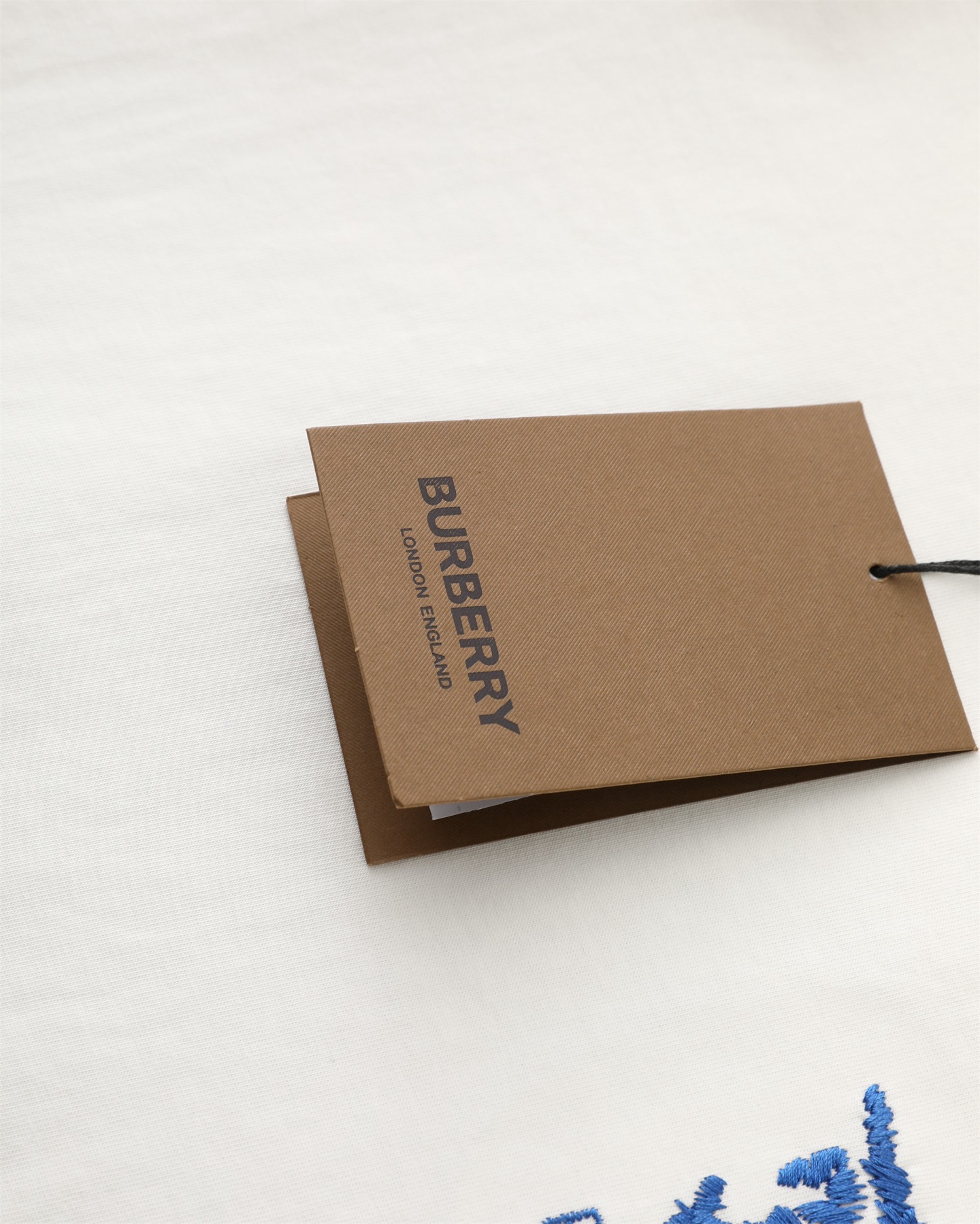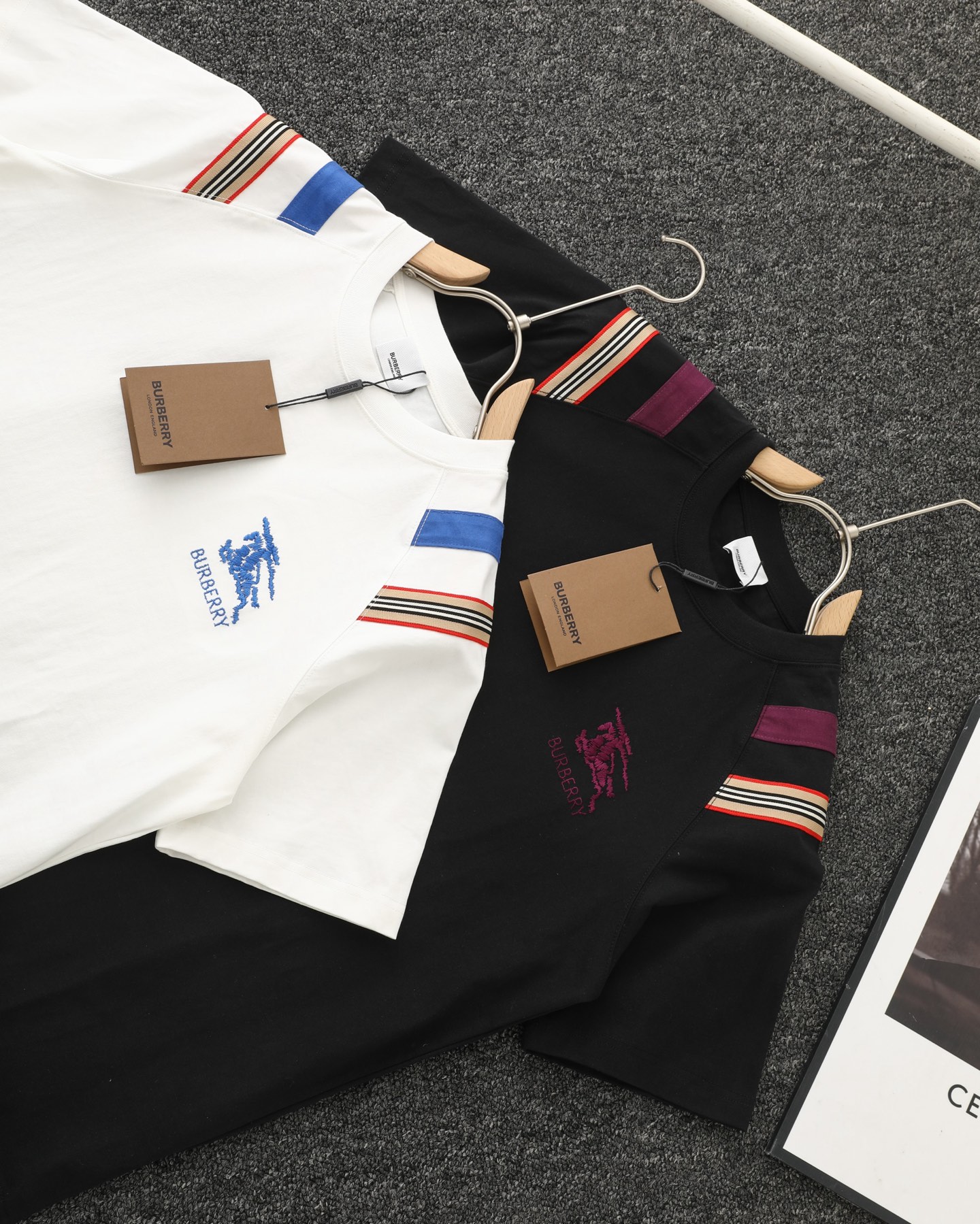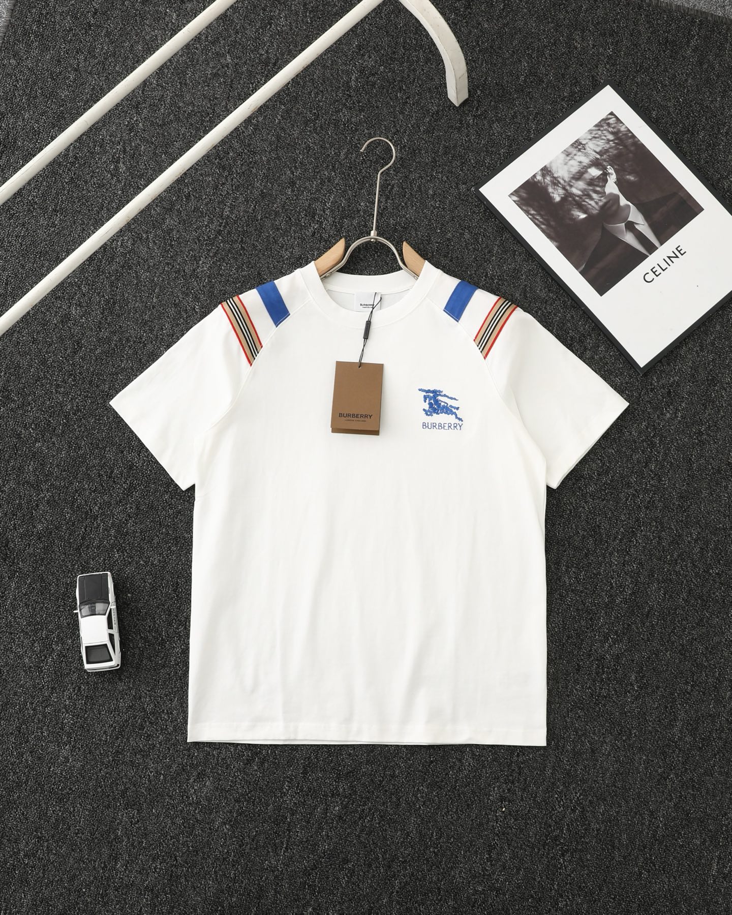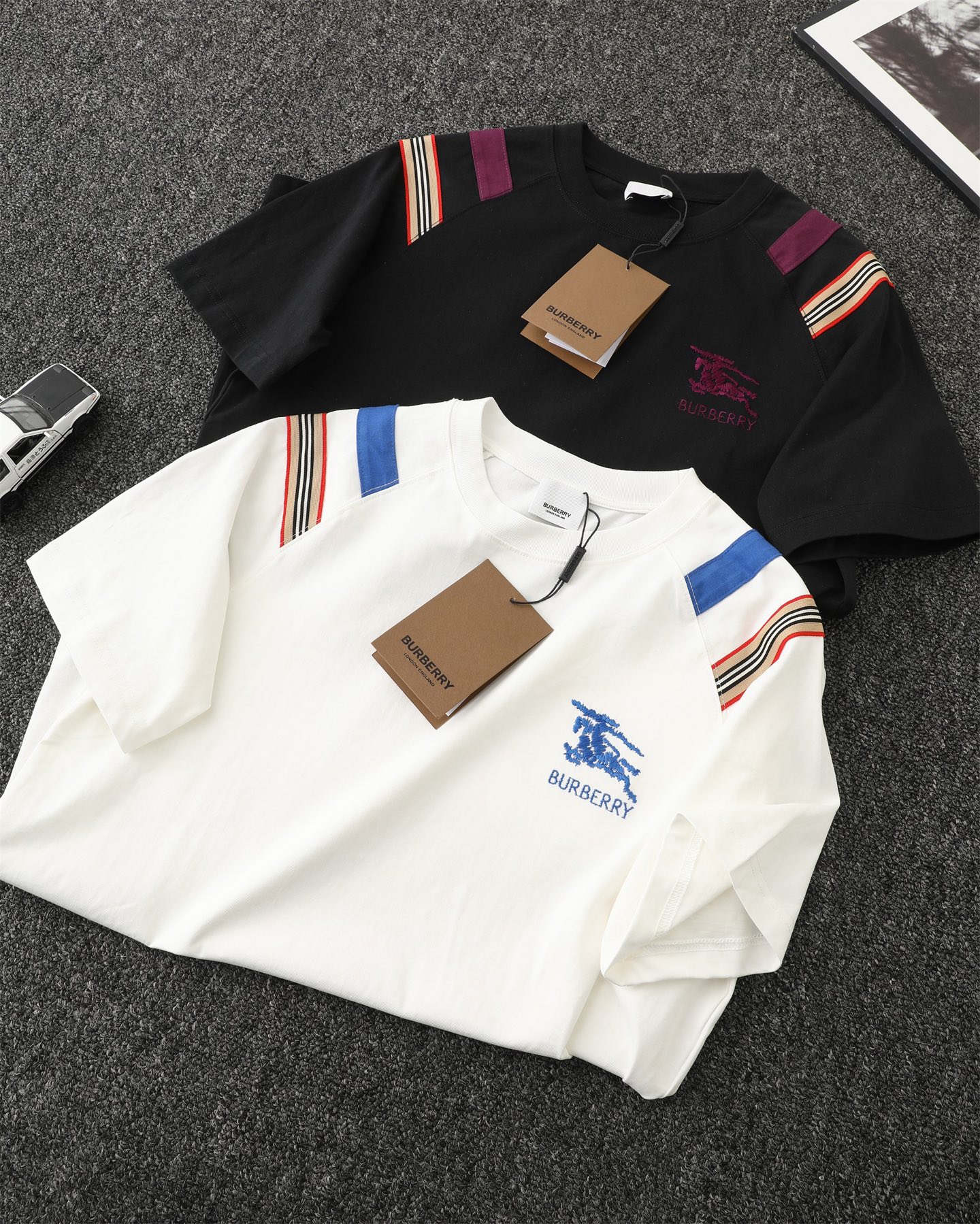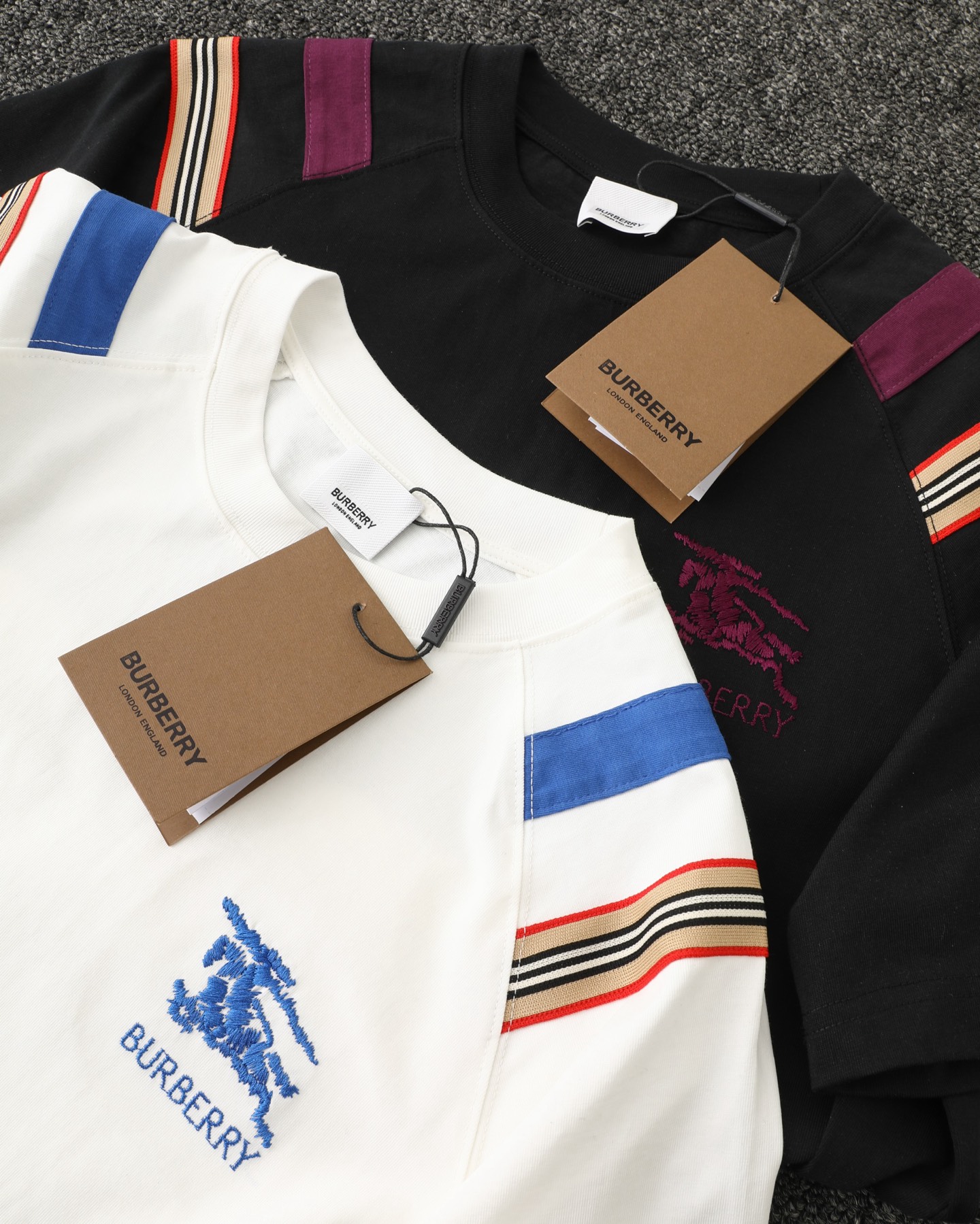 Burberry巴宝莉BBR 25新款 拼接领口双色织带刺绣短袖T恤