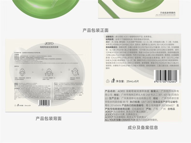 Aoeo海葡萄凝润漾颜面膜25mlx5片