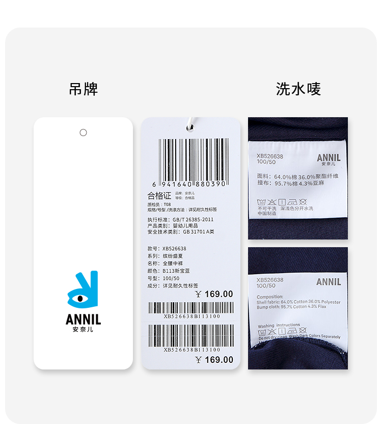 【实体店同款】男童全腰针织中裤夏季新款安奈儿童装XB526638