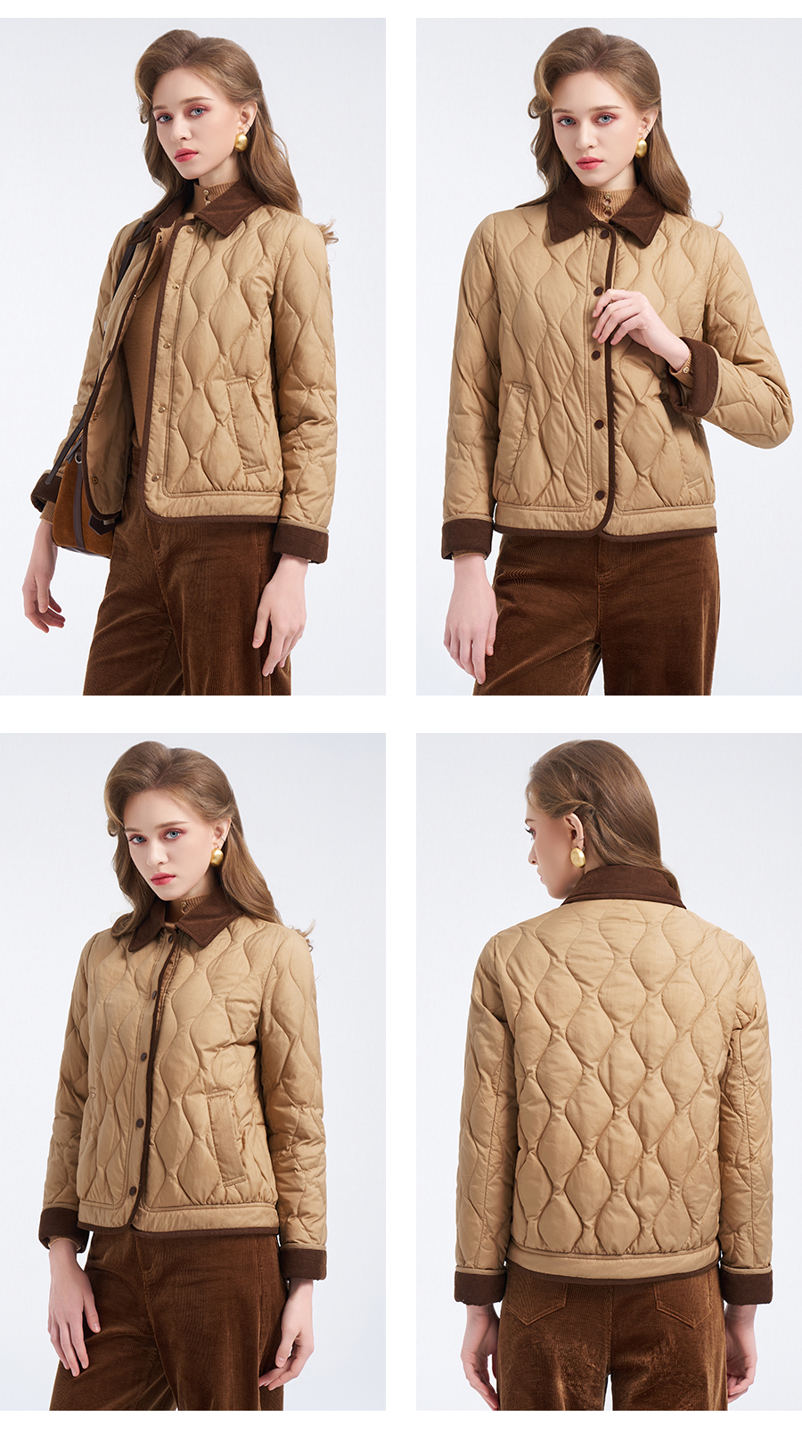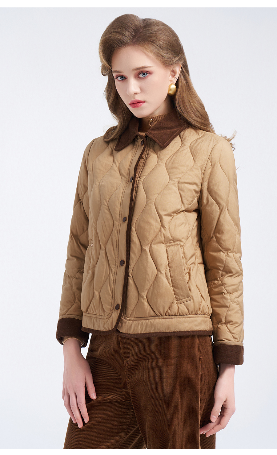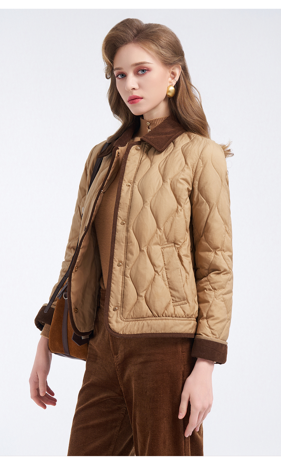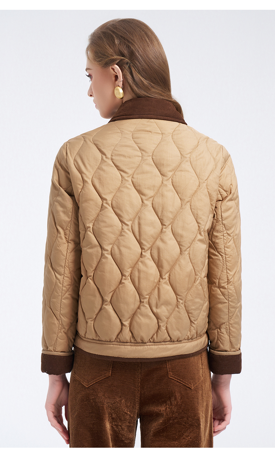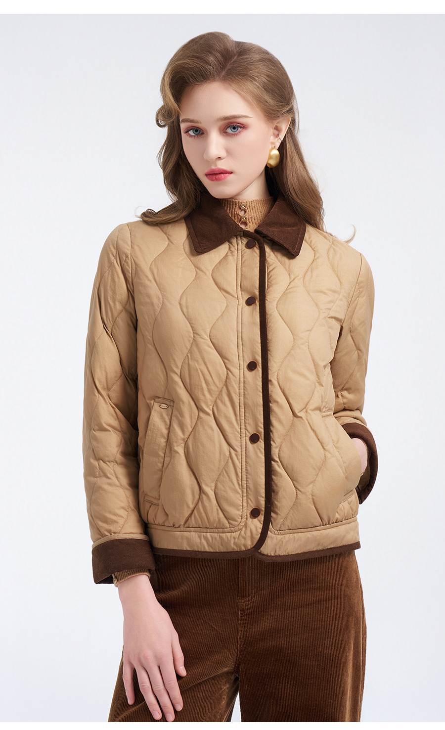 【鹅绒】乔万尼经典葫芦绗缝撞色翻领宽松白鹅绒羽绒服ED4T848