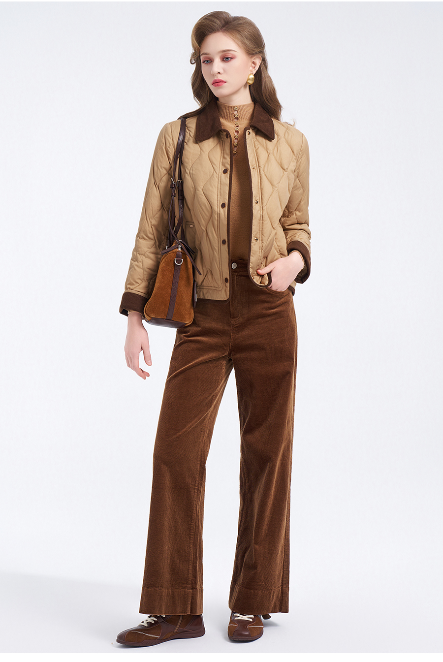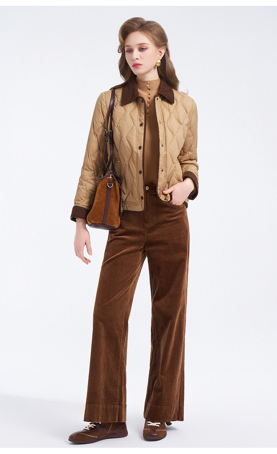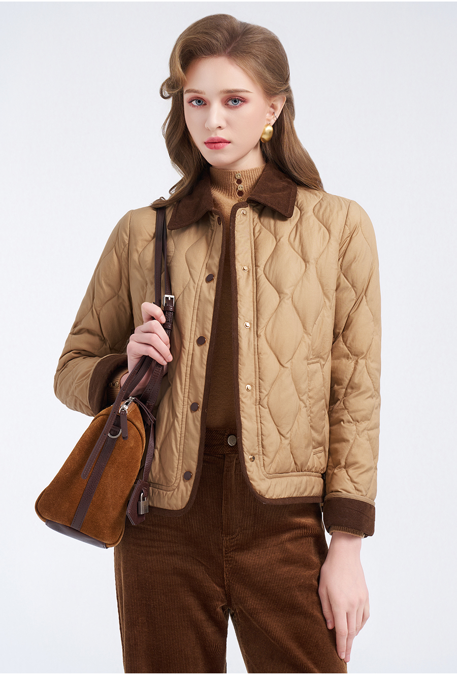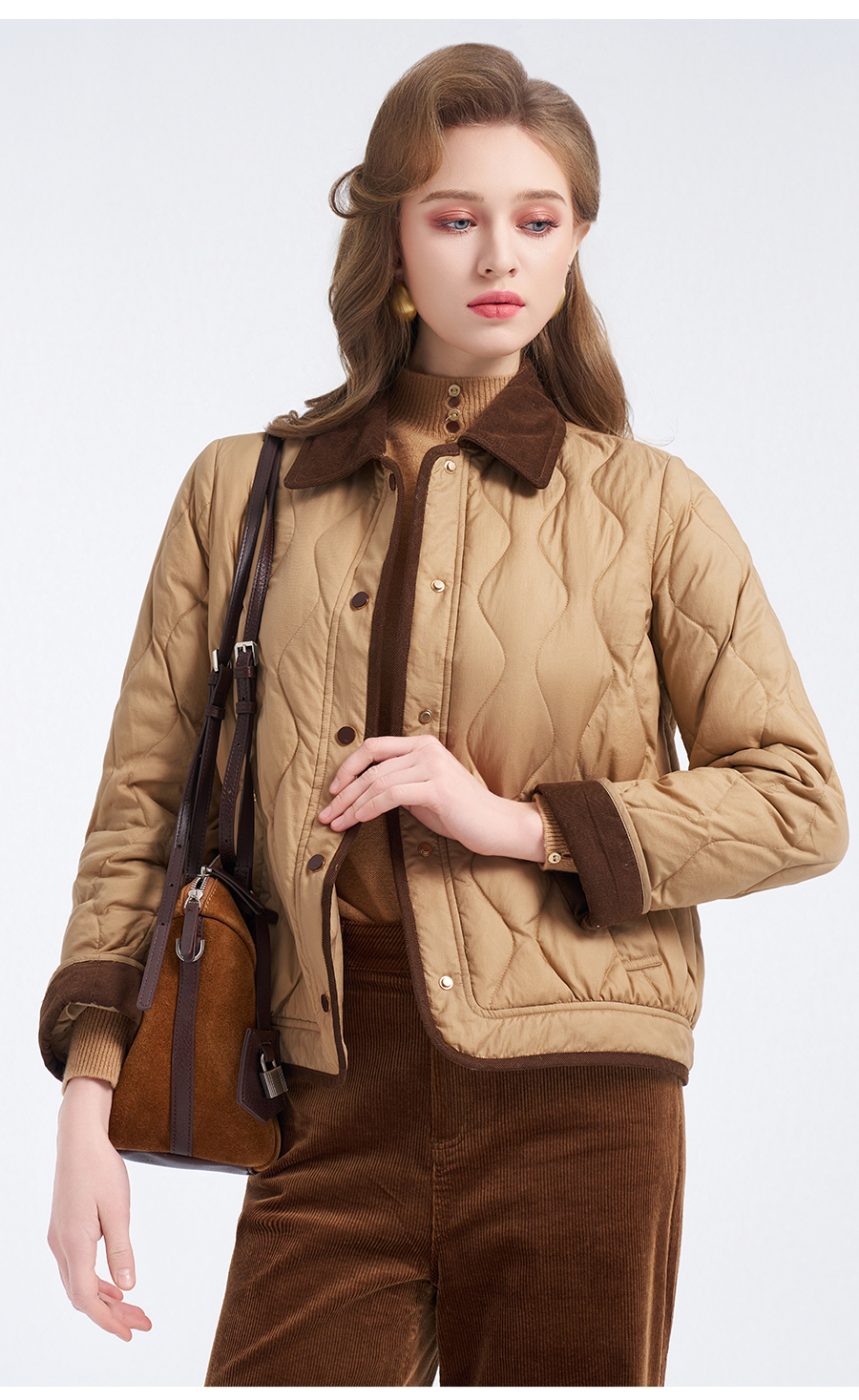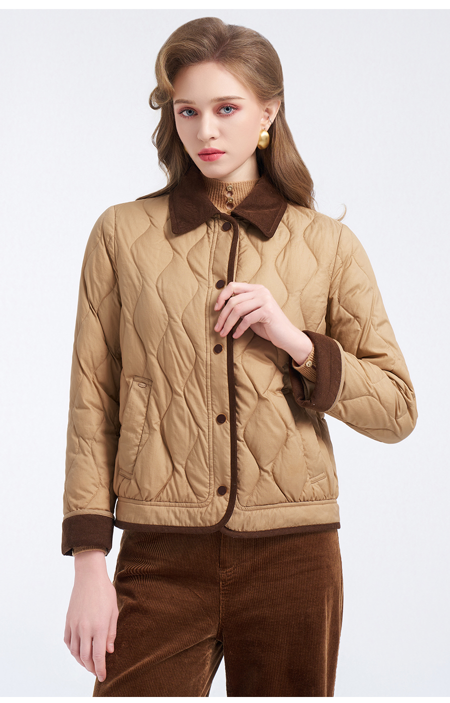 【鹅绒】乔万尼经典葫芦绗缝撞色翻领宽松白鹅绒羽绒服ED4T848