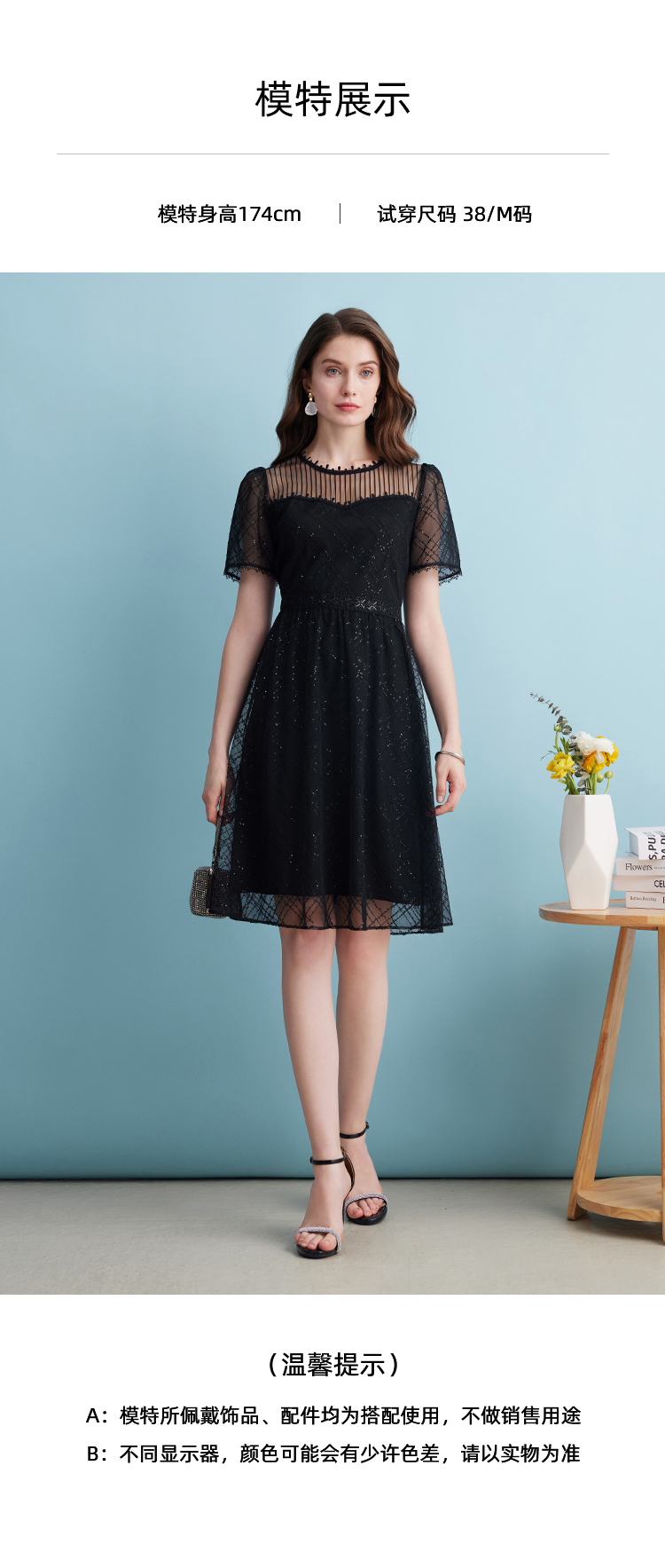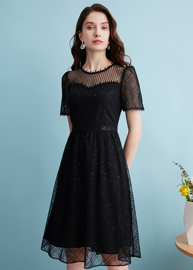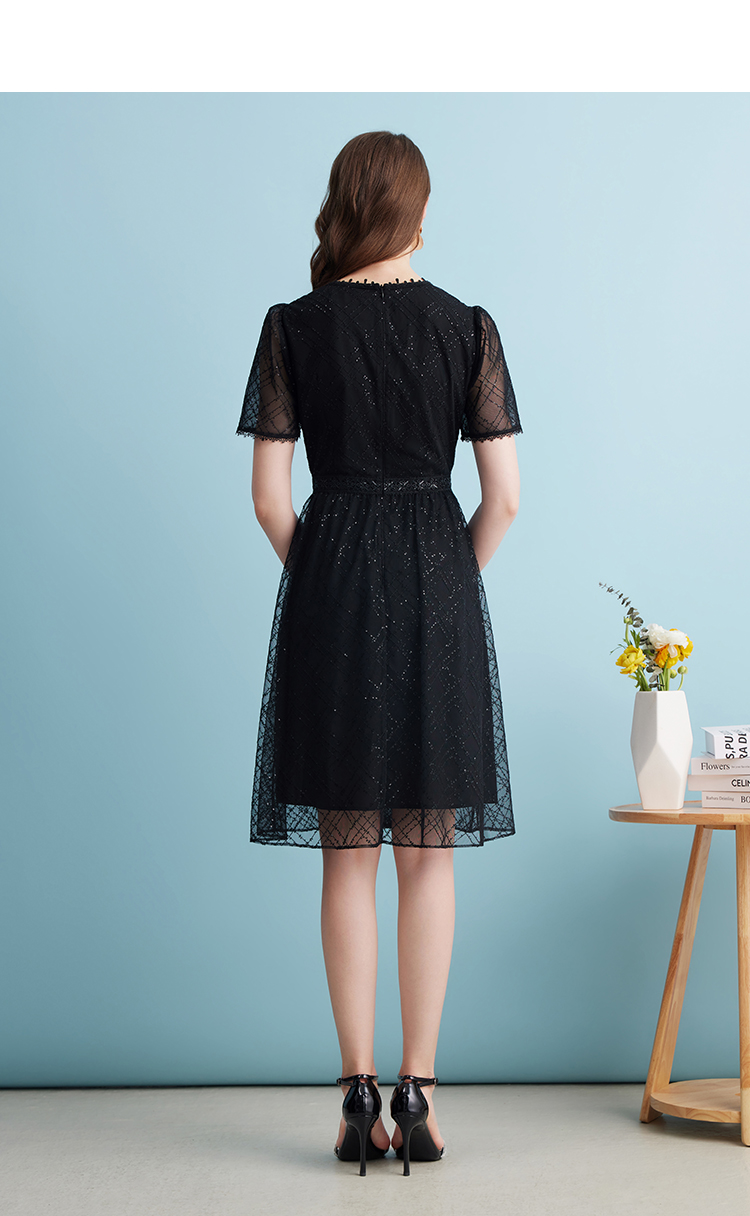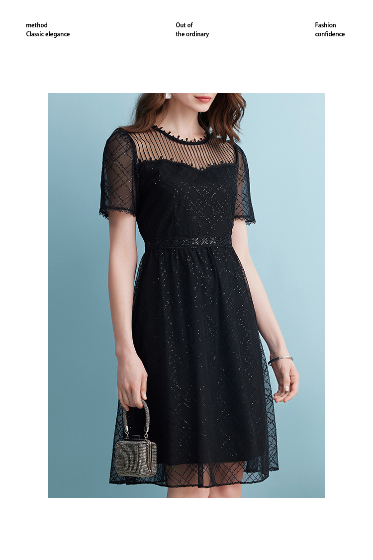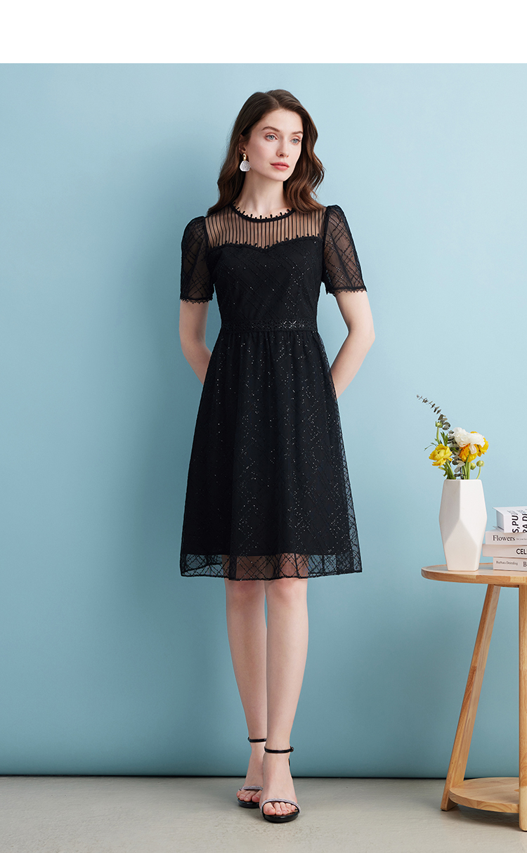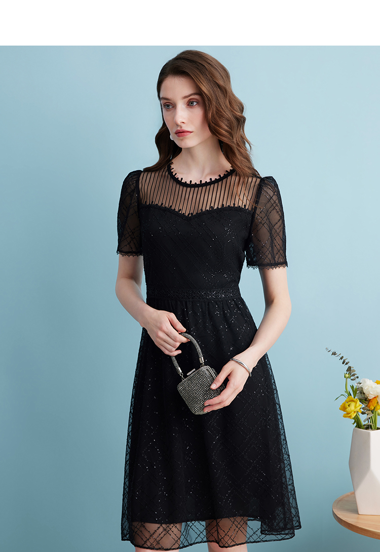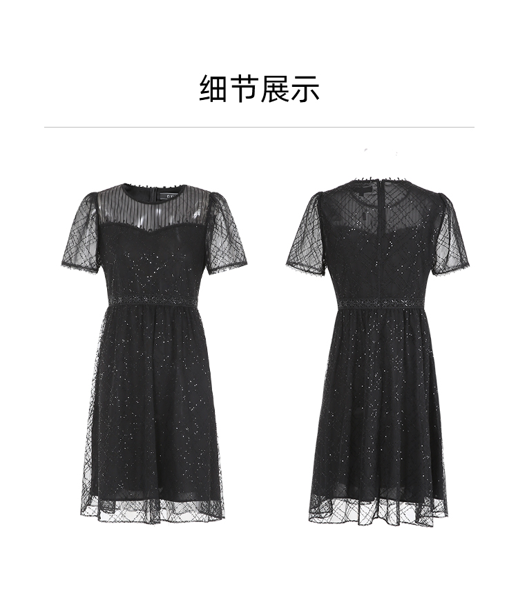 EITIE爱特爱夏季新款优雅蕾丝拼接连衣裙女7407158