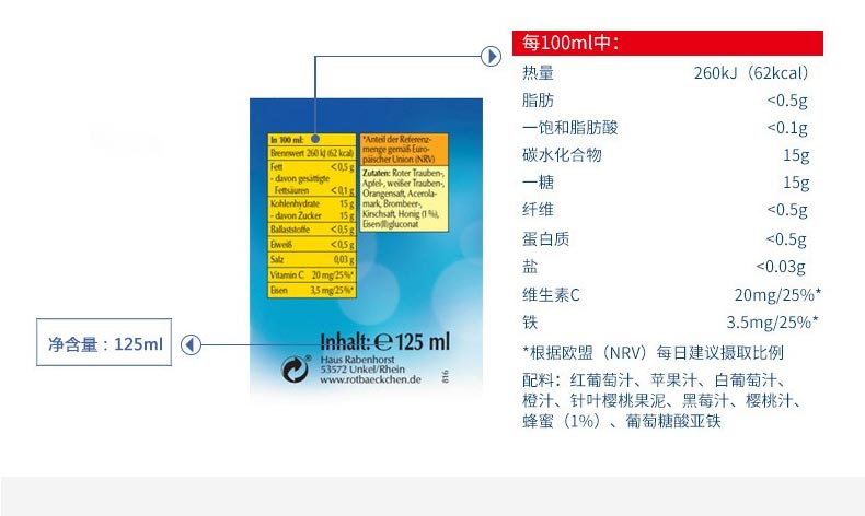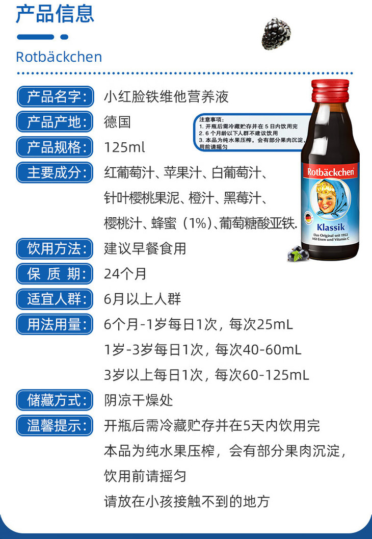 德国经典铁源,二价铁好吸收,吸收高达98%,还添加了促进铁吸收的维生素C;