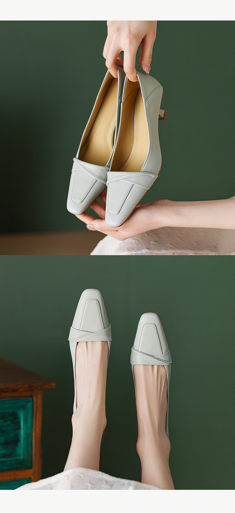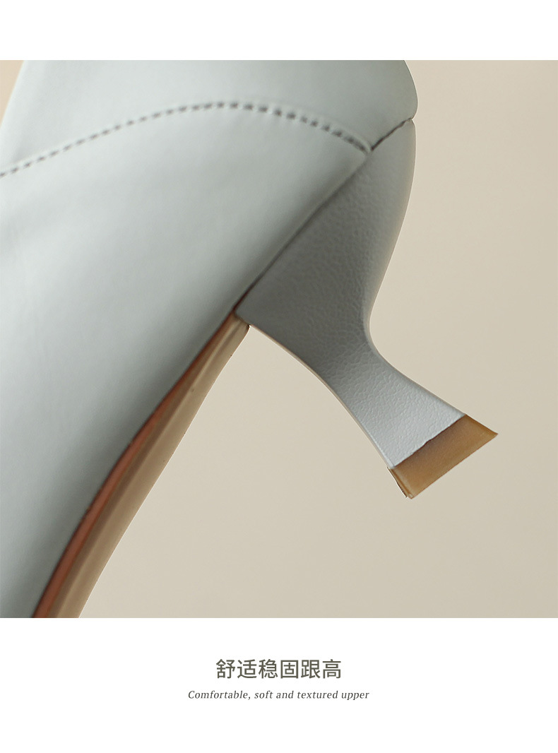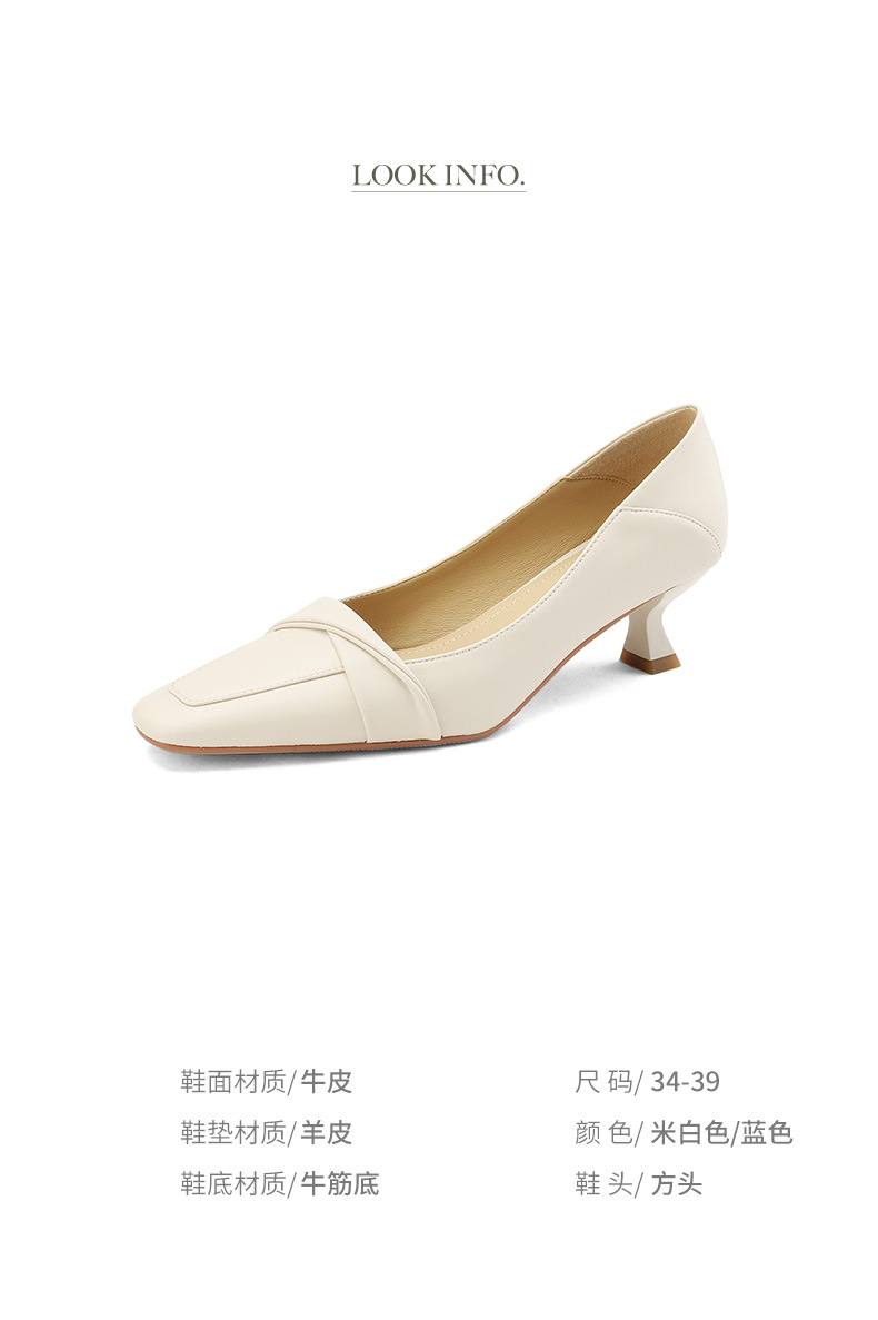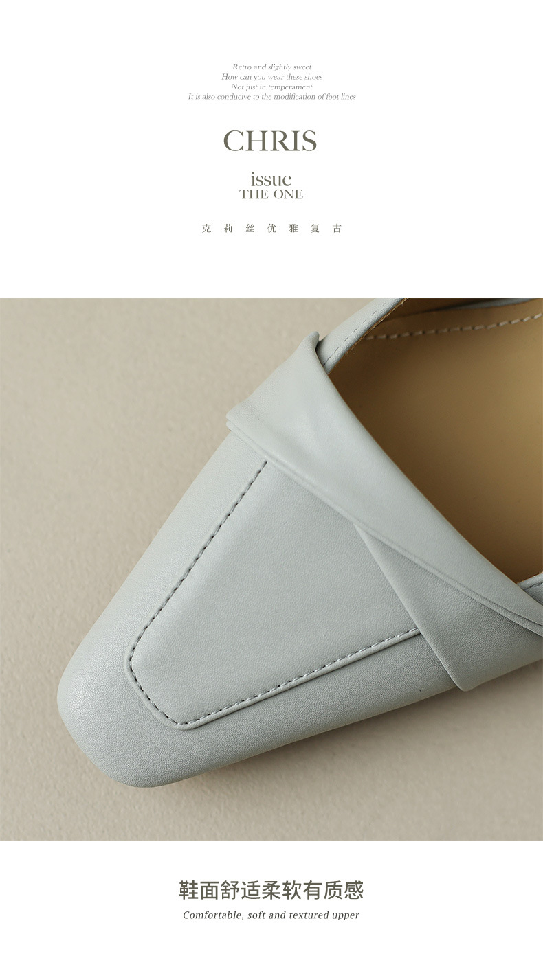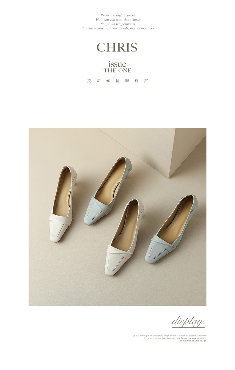 法式复古文艺方头小皮鞋,蓝色中跟清醒高跟鞋WC-M9925