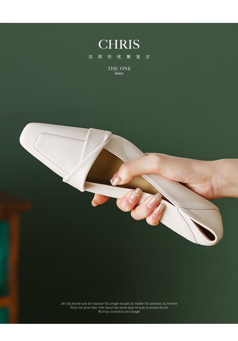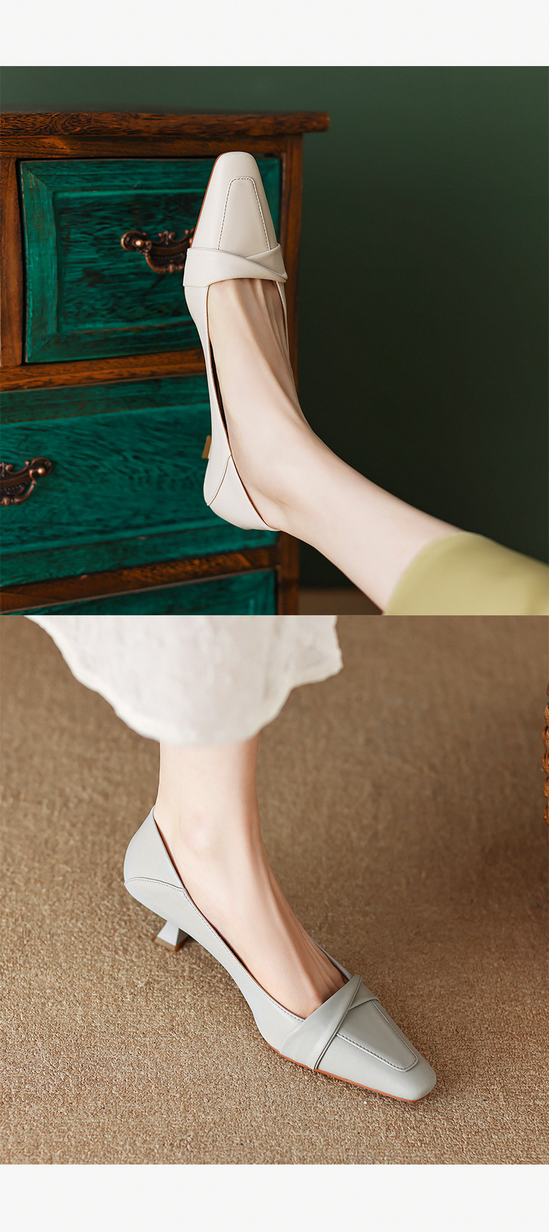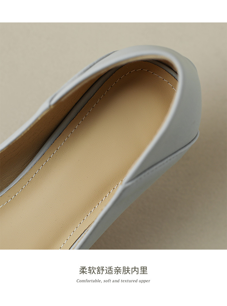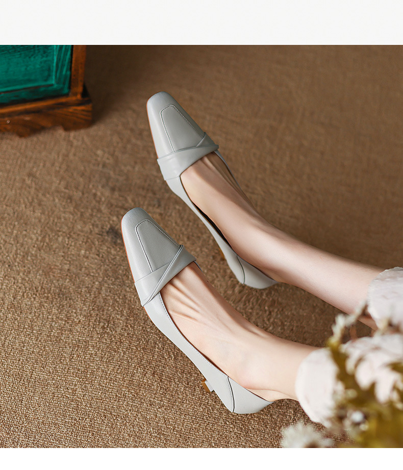 法式复古文艺方头小皮鞋,蓝色中跟清醒高跟鞋WC-M9925
