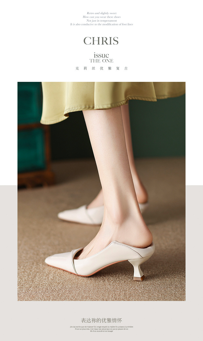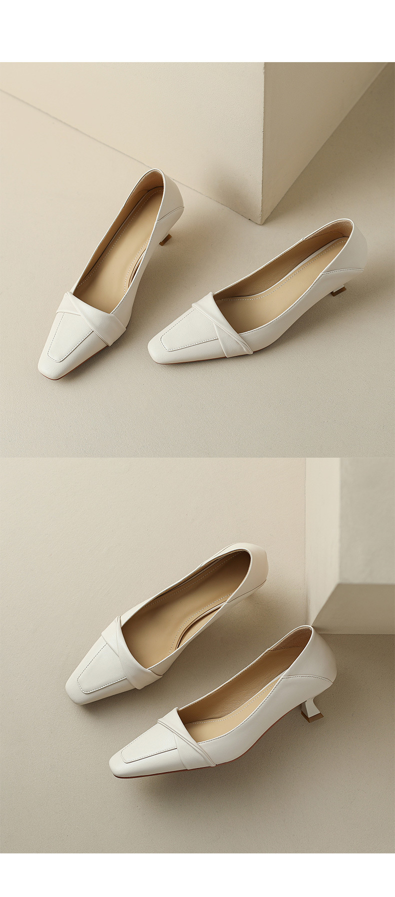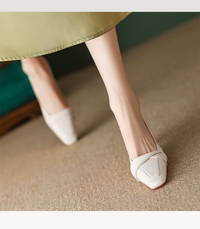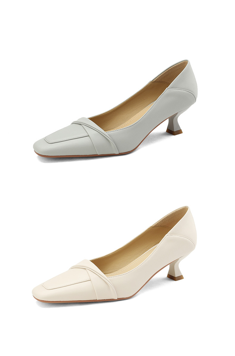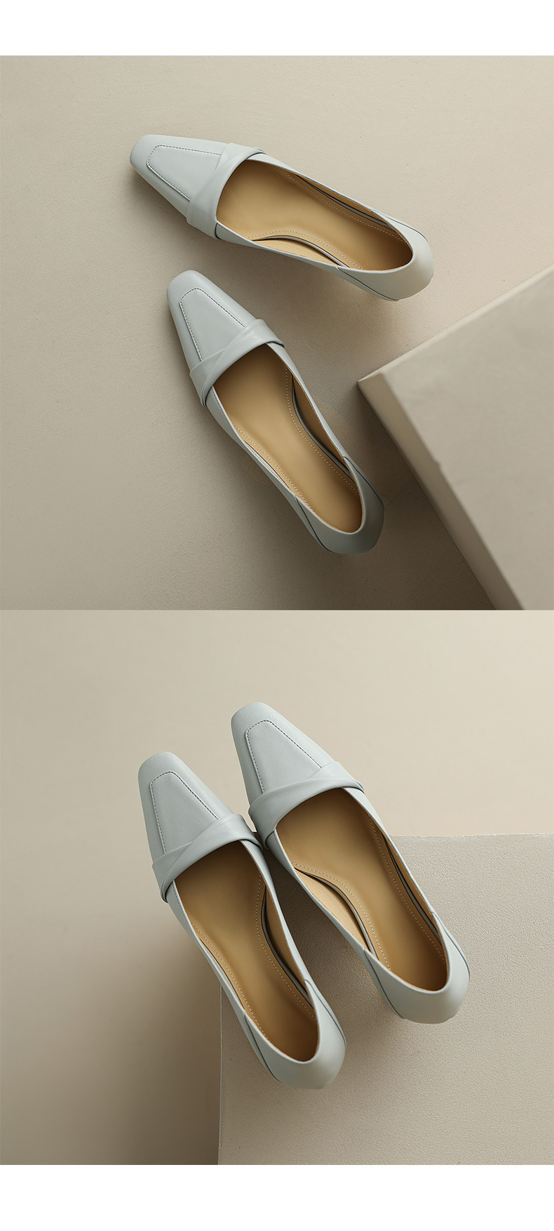 法式复古文艺方头小皮鞋,蓝色中跟清醒高跟鞋WC-M9925