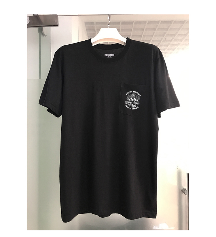 自由基地2022夏季新款山系露营户外风格图案印花口袋短袖T恤衫男 NMT-1877