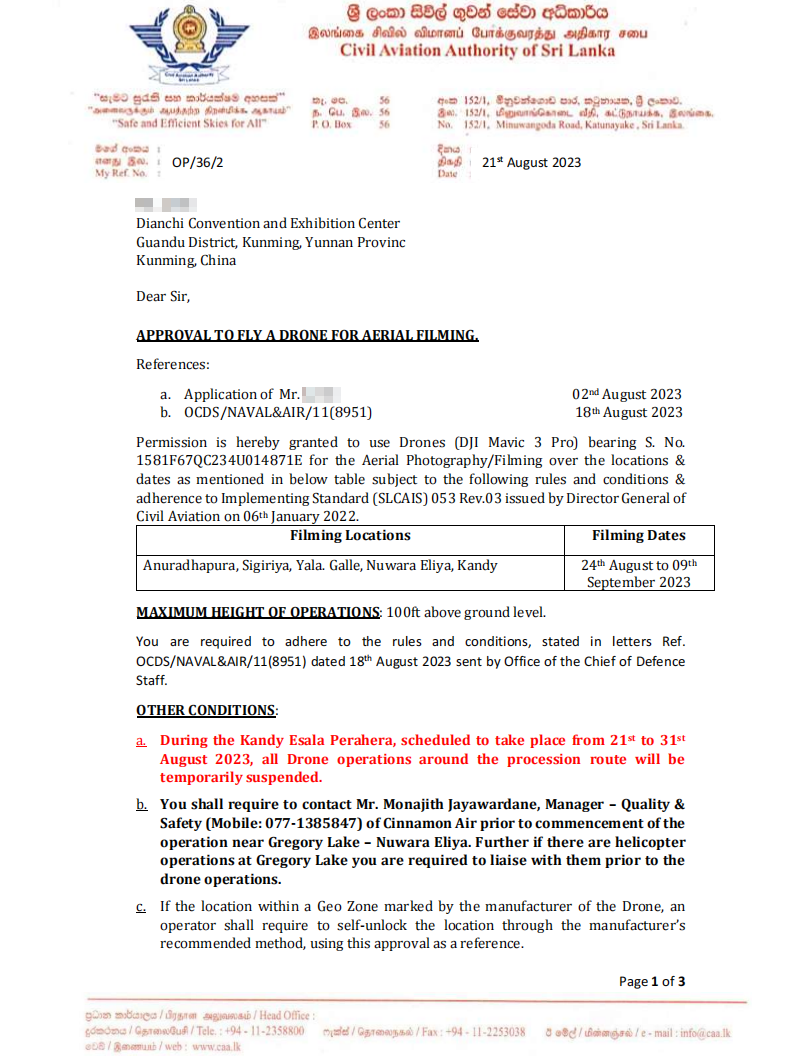 斯里兰卡无人机许可证申请