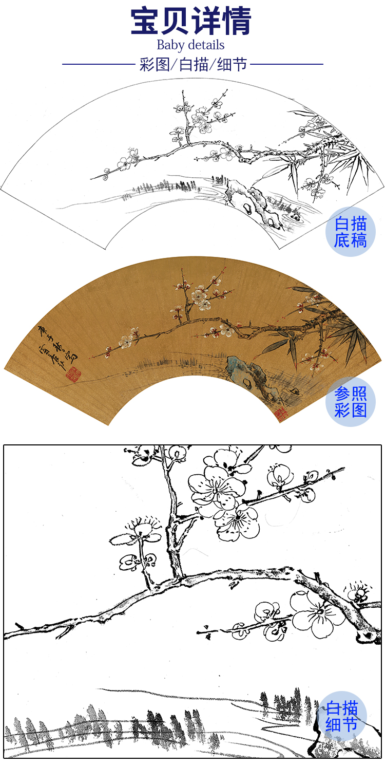 工笔画白描底稿 花鸟扇面小品 明 孙克弘 《梅竹图》 调-多种白描尺寸可选-SR18
