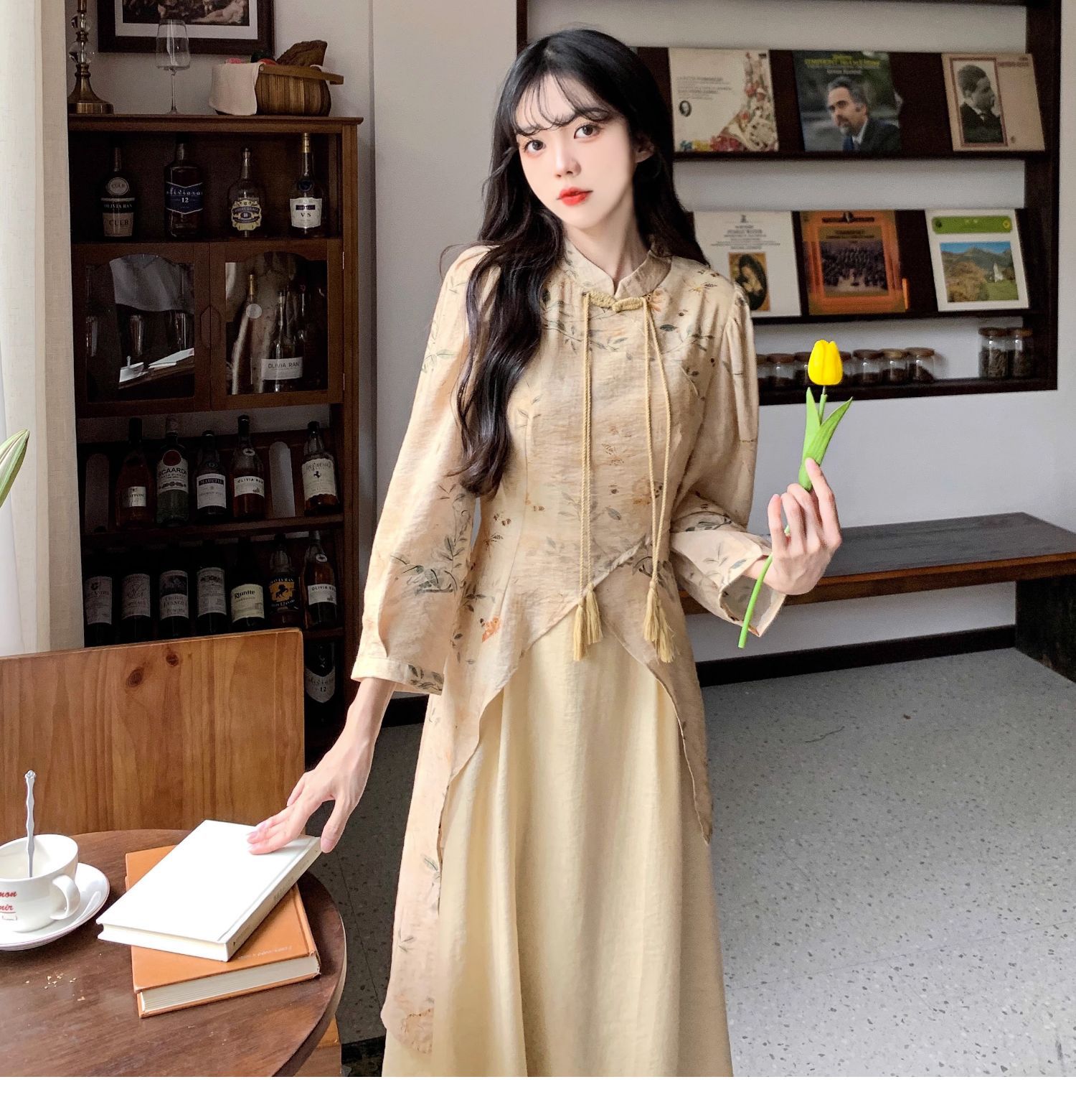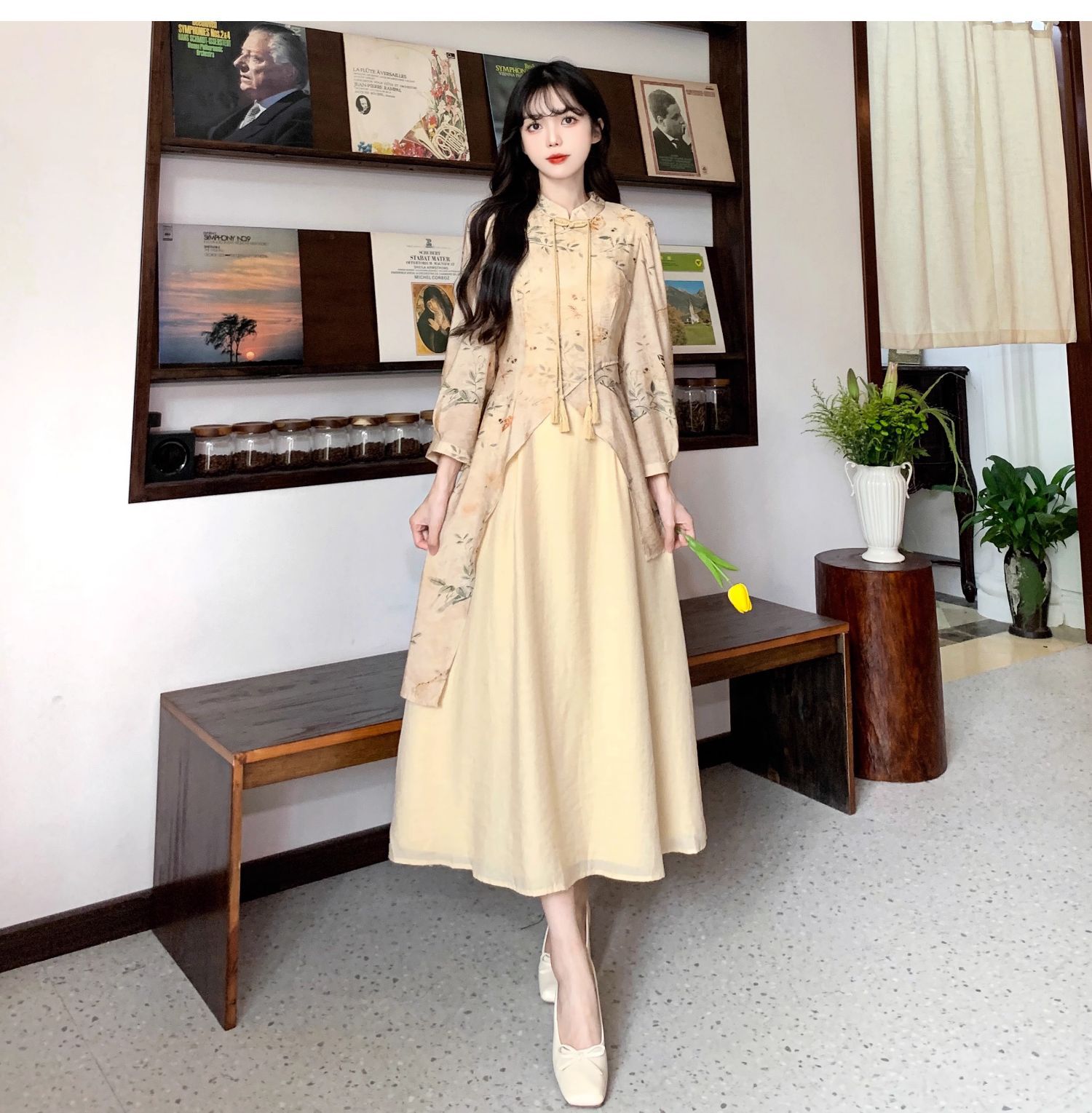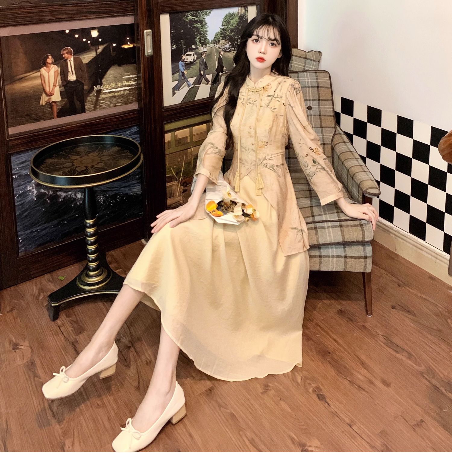 春秋季新中式【复古减龄 气质旗袍连衣裙女装】中长款 收腰国风裙子