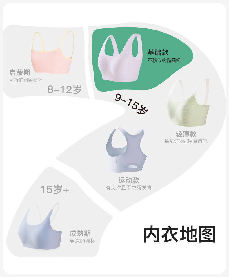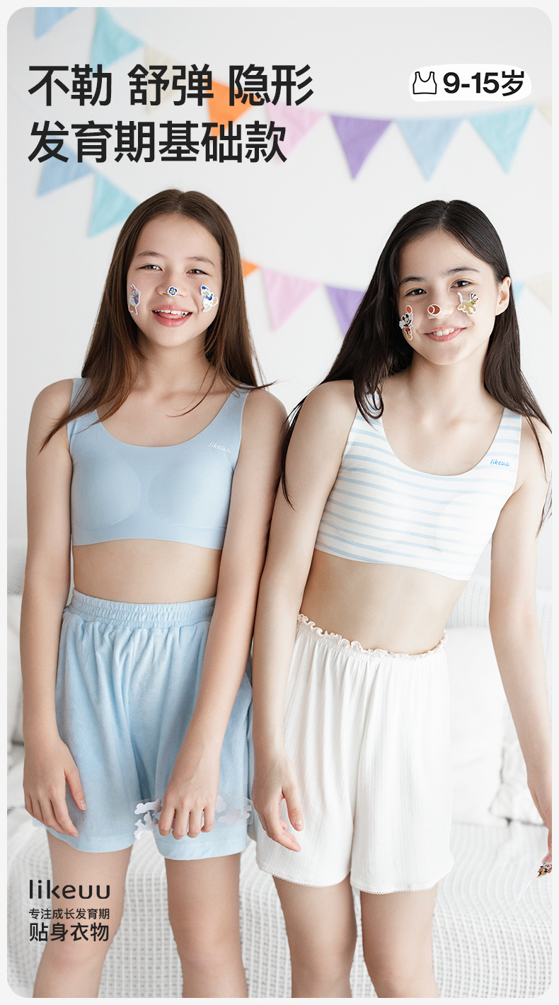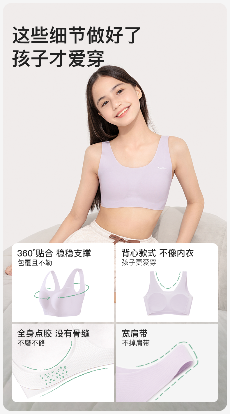 (日常)likeuu儿童内衣少女发育期背心无痕文胸隐形无尺码