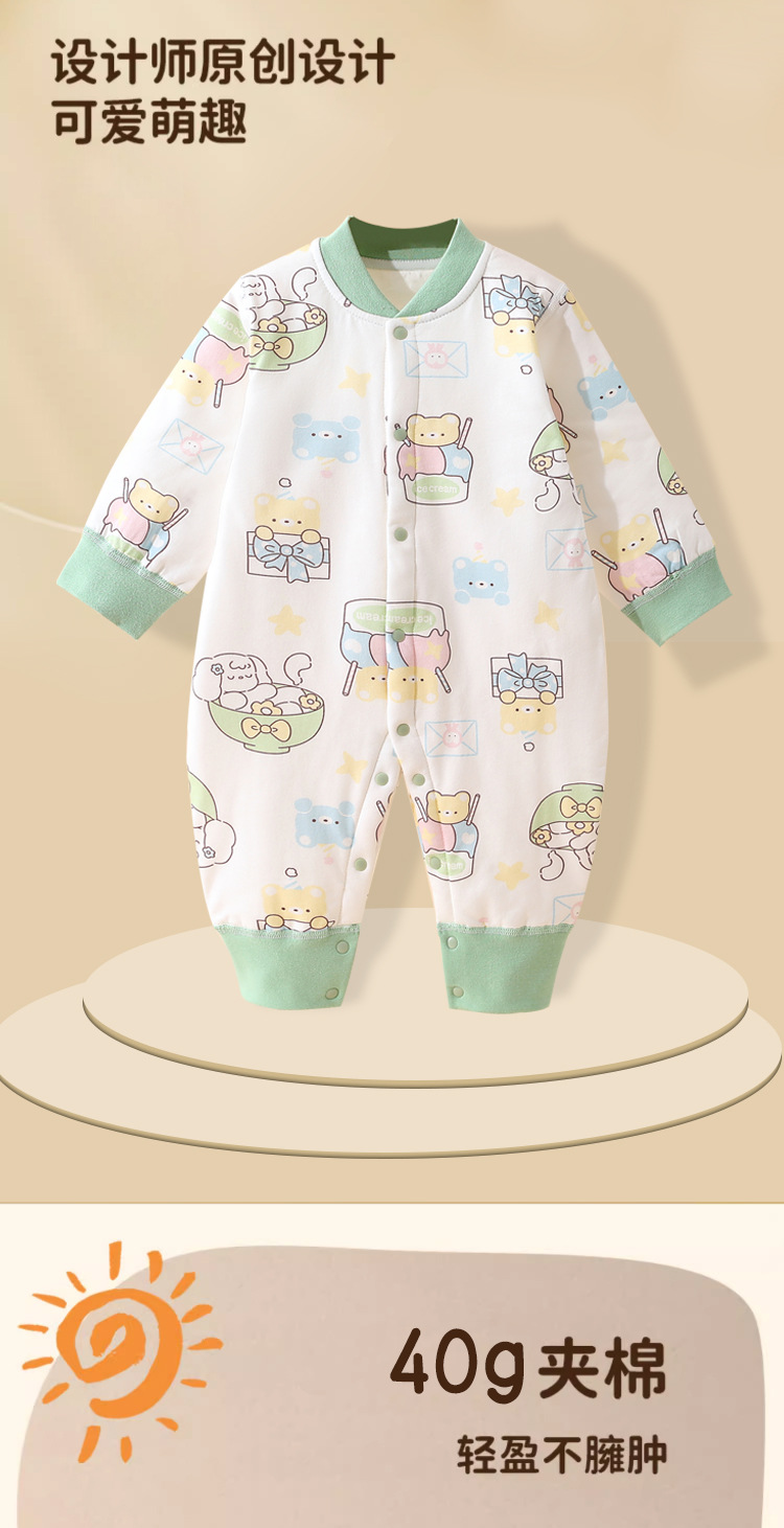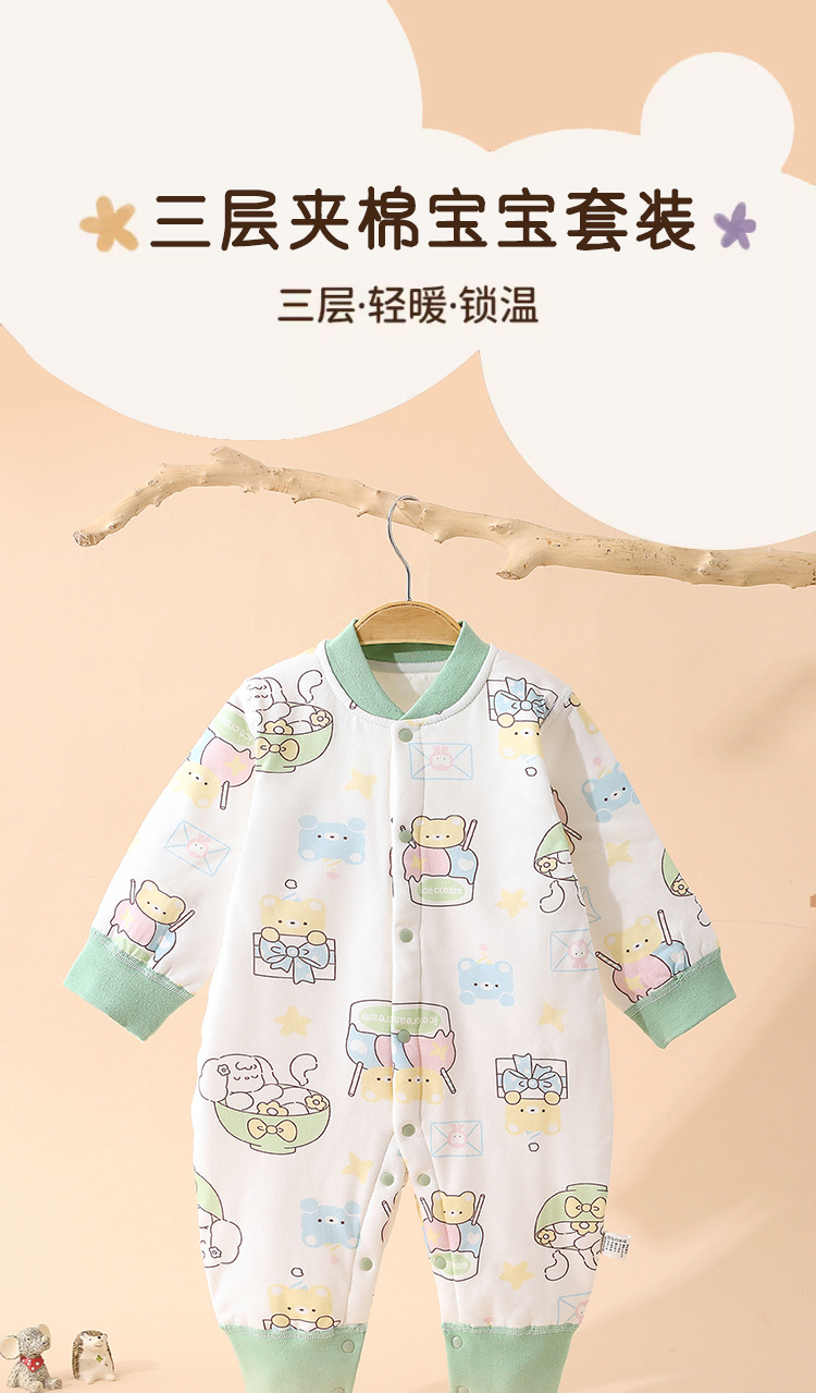 【三层保暖设计,锁住温度!】夹棉爬爬服婴儿连体衣男女宝宝秋冬季加棉新生儿衣服保暖a类棉服lm
