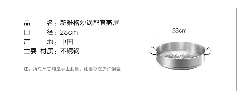 德国进口菲仕乐 新雅格28厘米双柄炒锅蒸屉 不包括炒锅