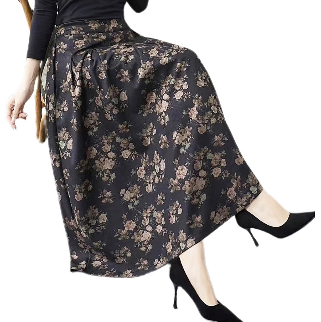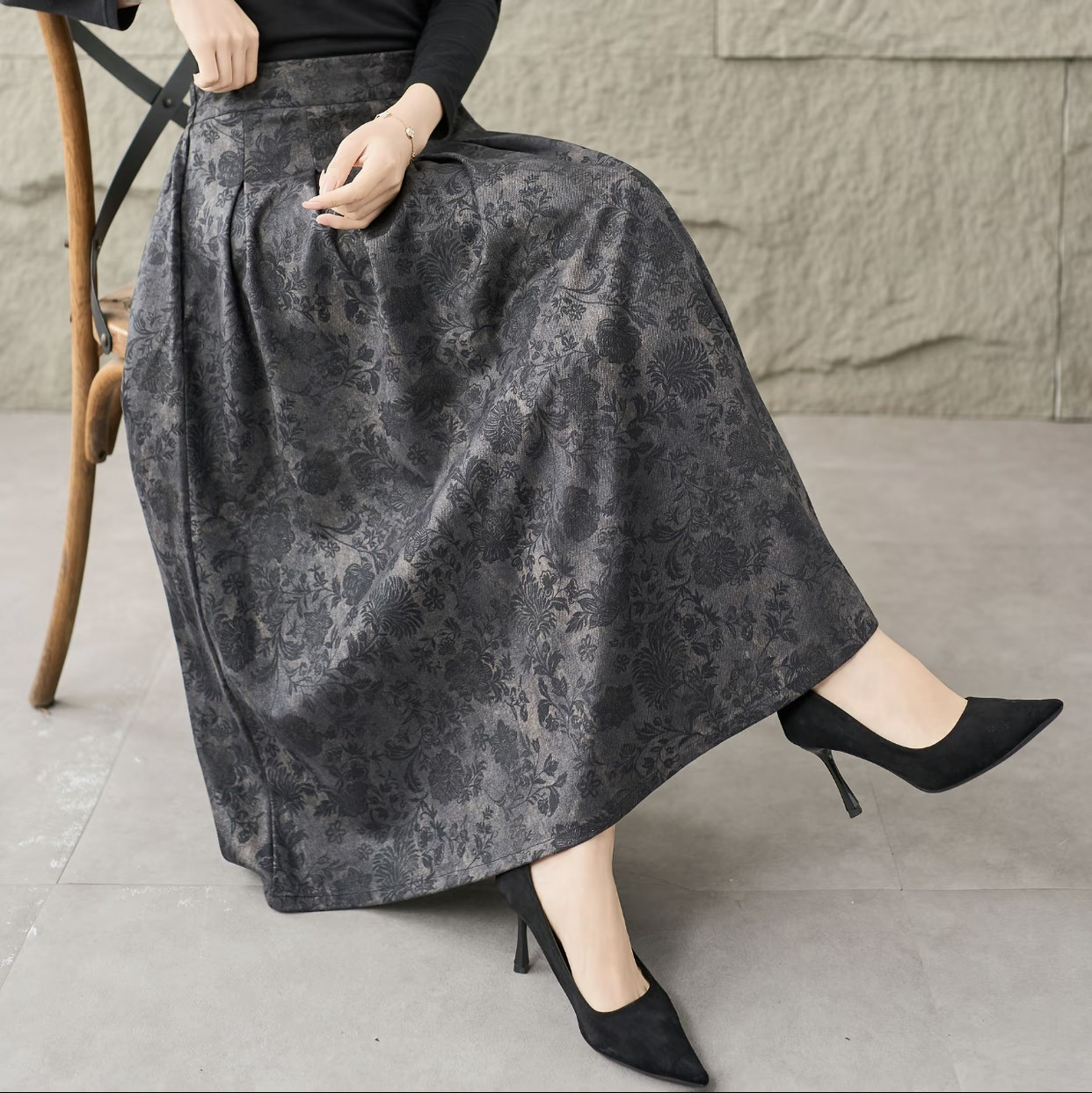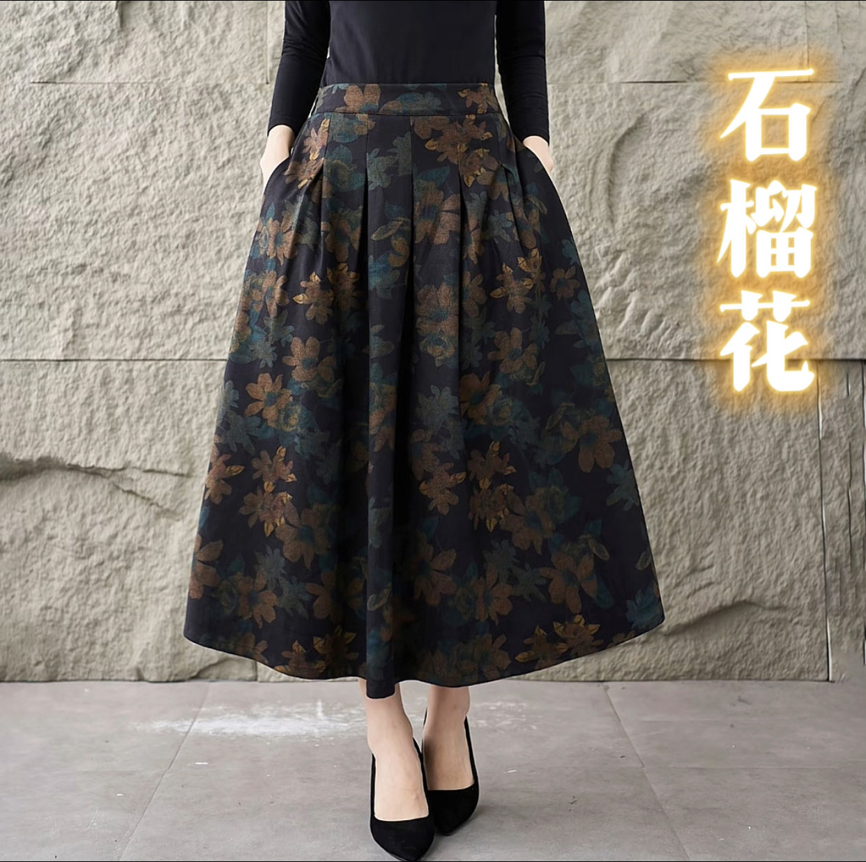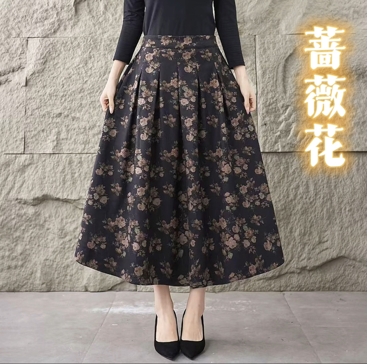 2025秋冬季新款高腰复古文艺半身裙显瘦中长款长裙印花碎花半身裙