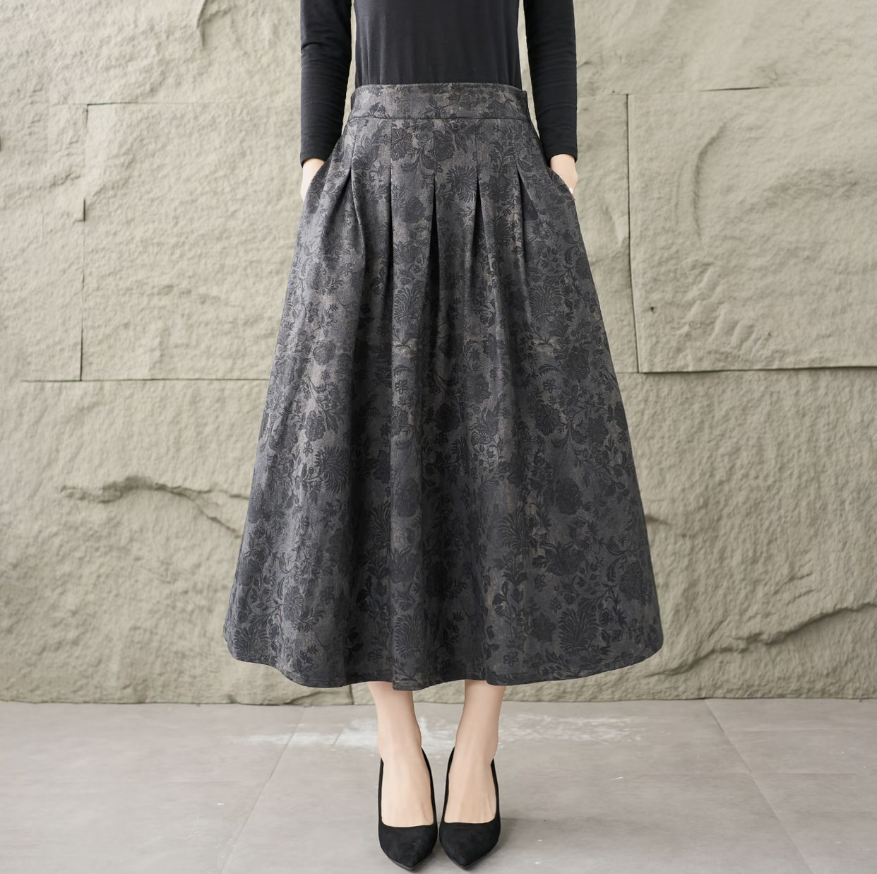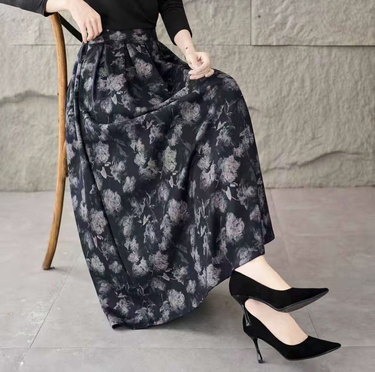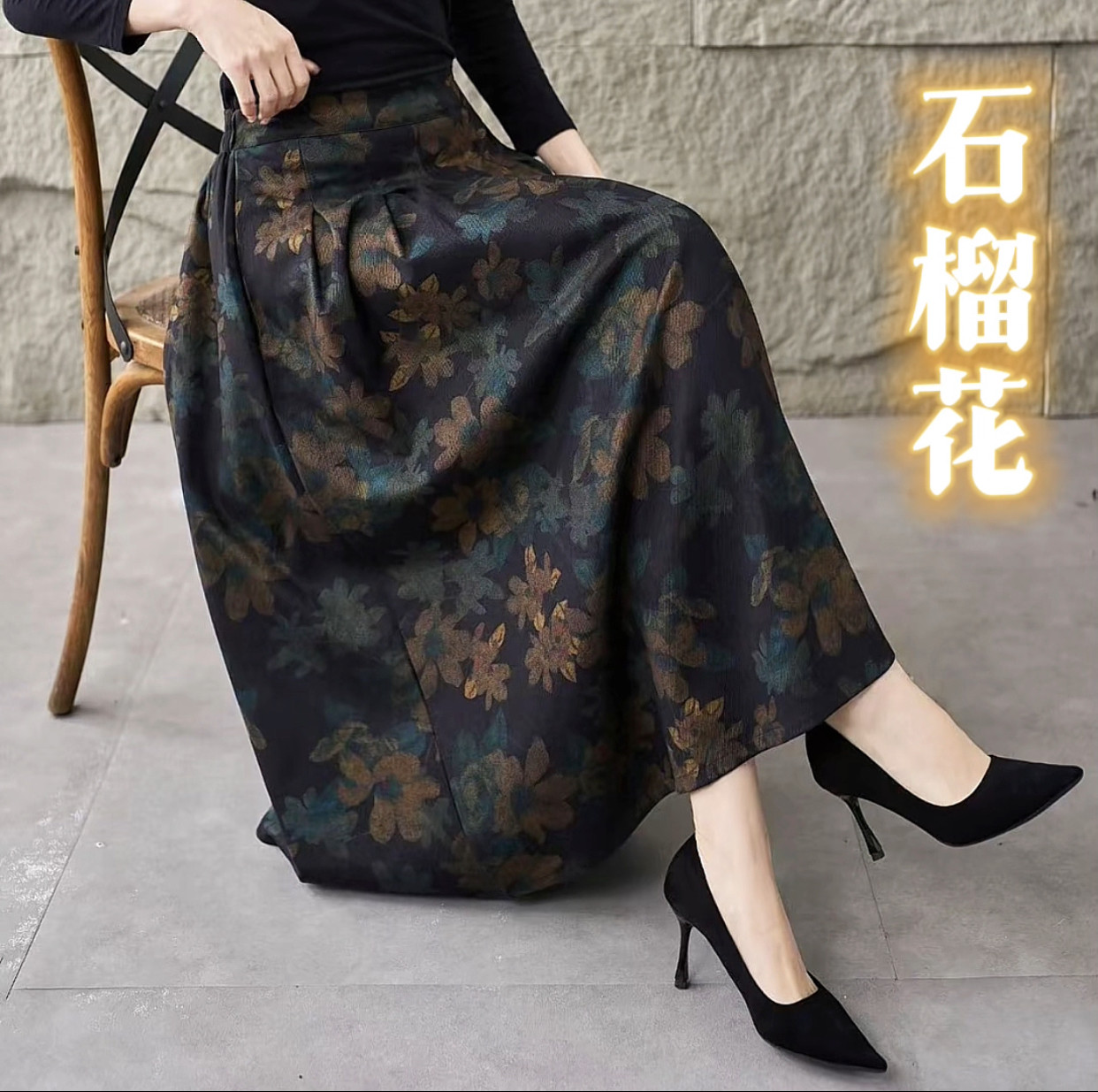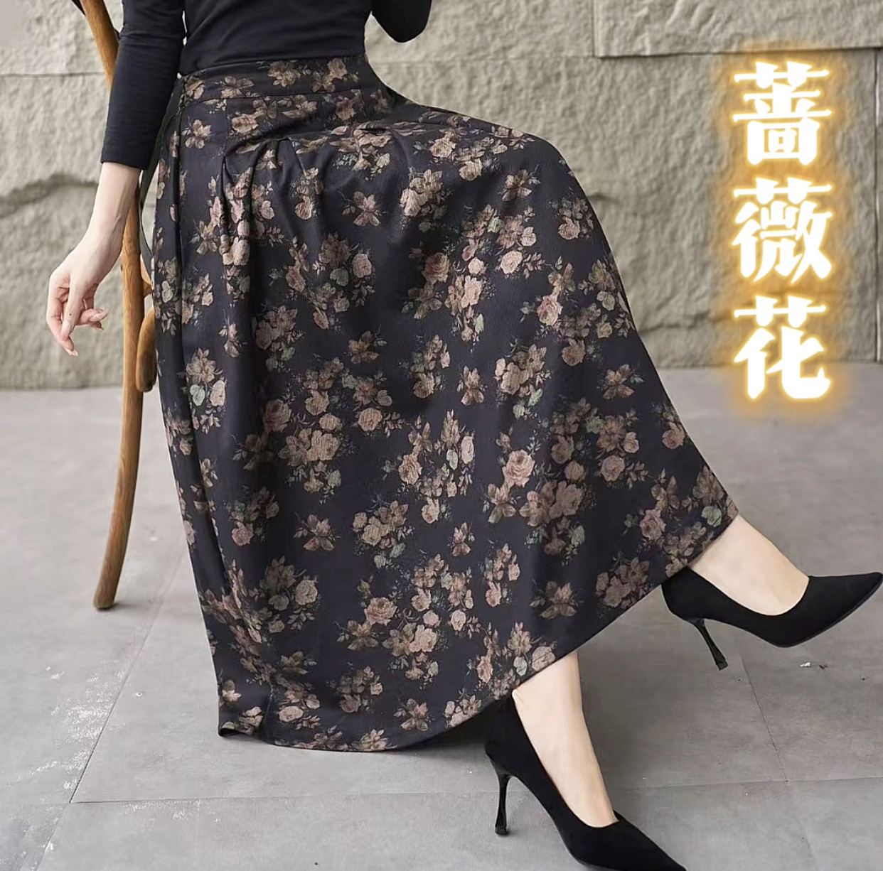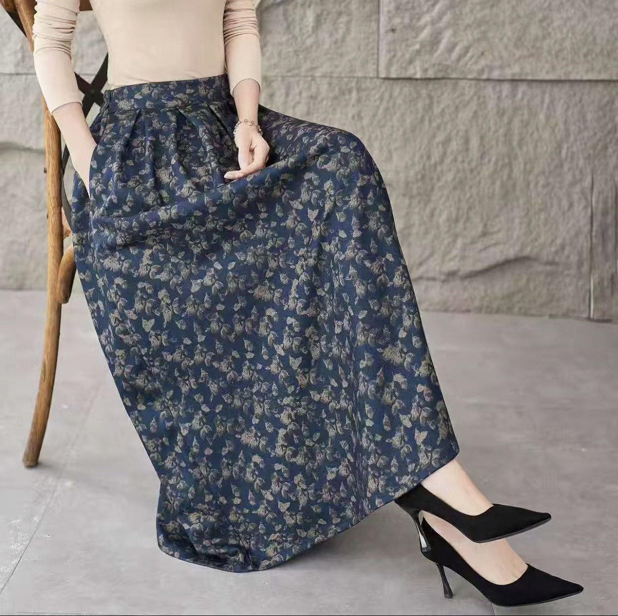 2025秋冬季新款高腰复古文艺半身裙显瘦中长款长裙印花碎花半身裙