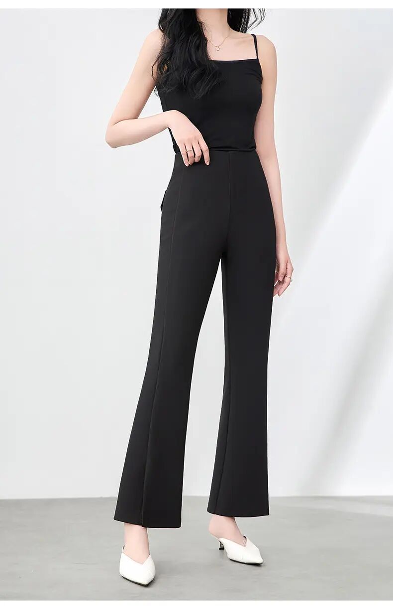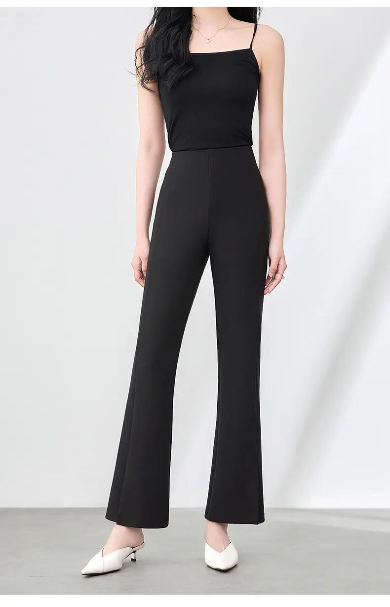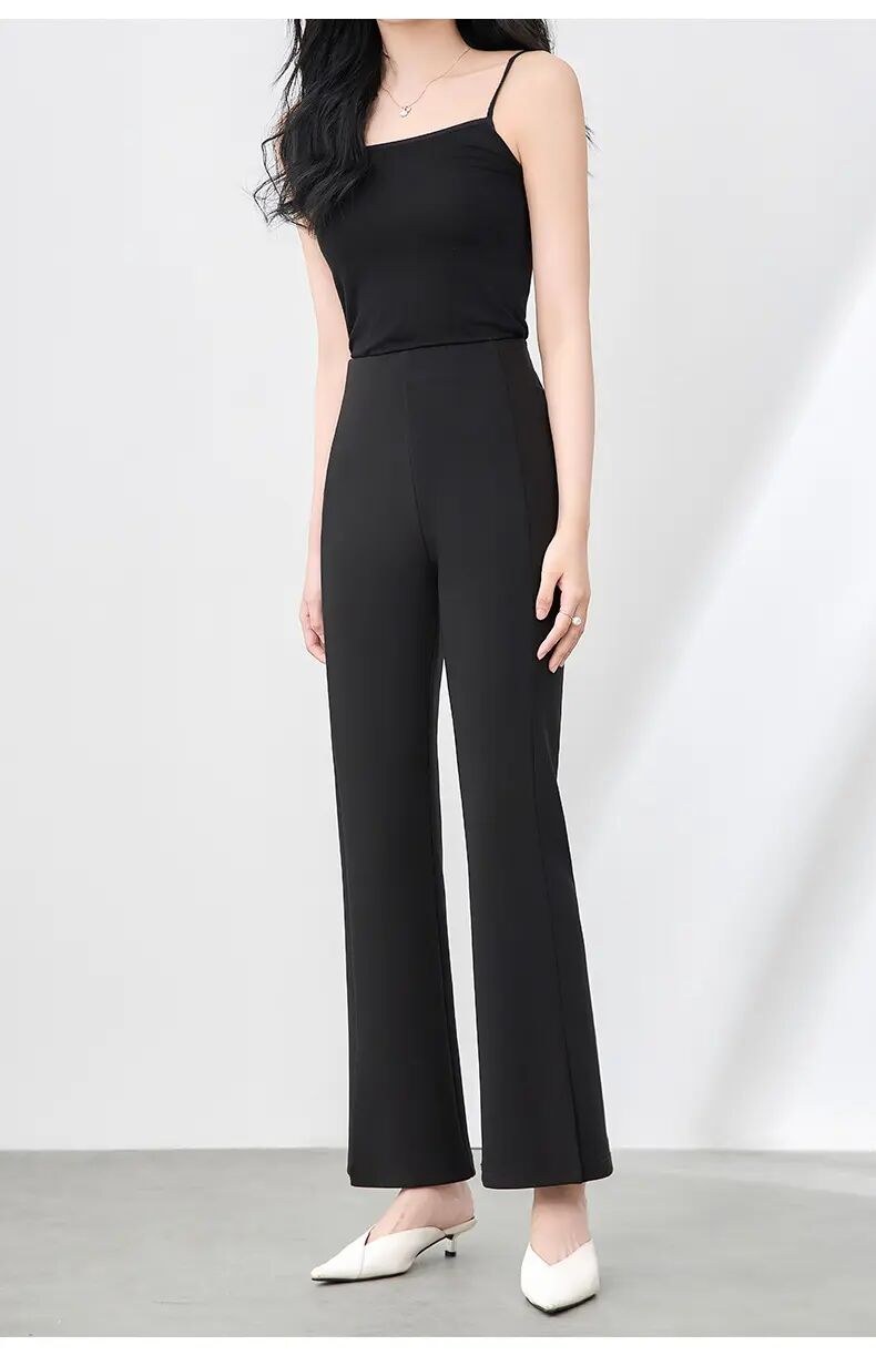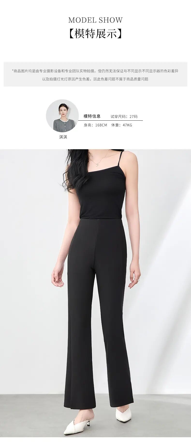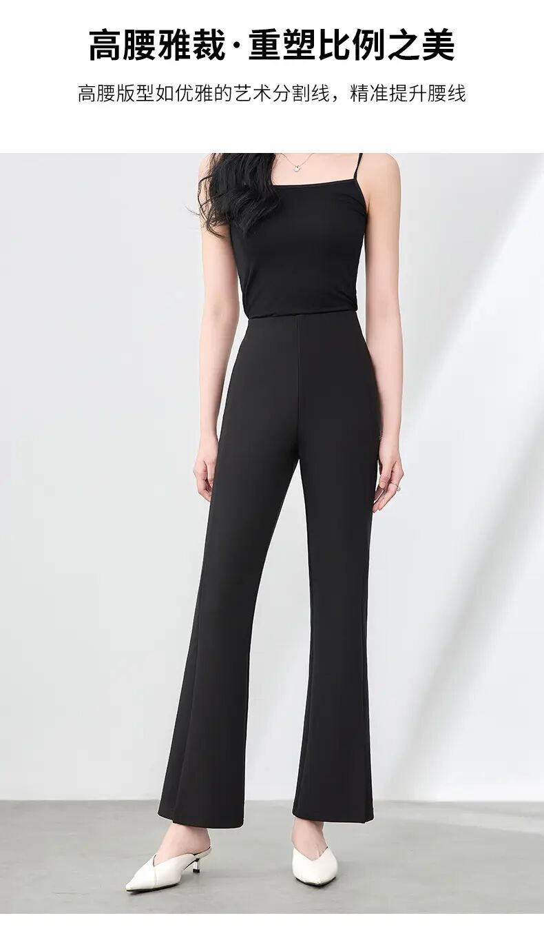 【高货wl】全新升级【铂金会员201/天猫269/差价68】(00843) 洛诗琳时尚高级感通勤高腰修身显瘦超弹女夏微喇休闲裤