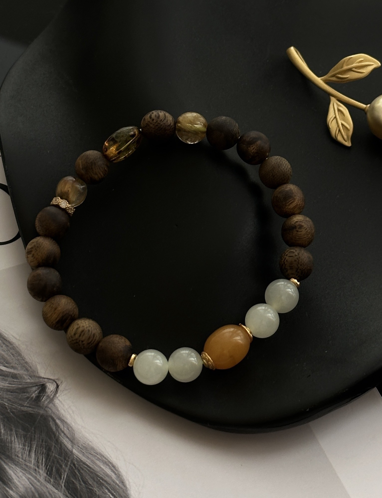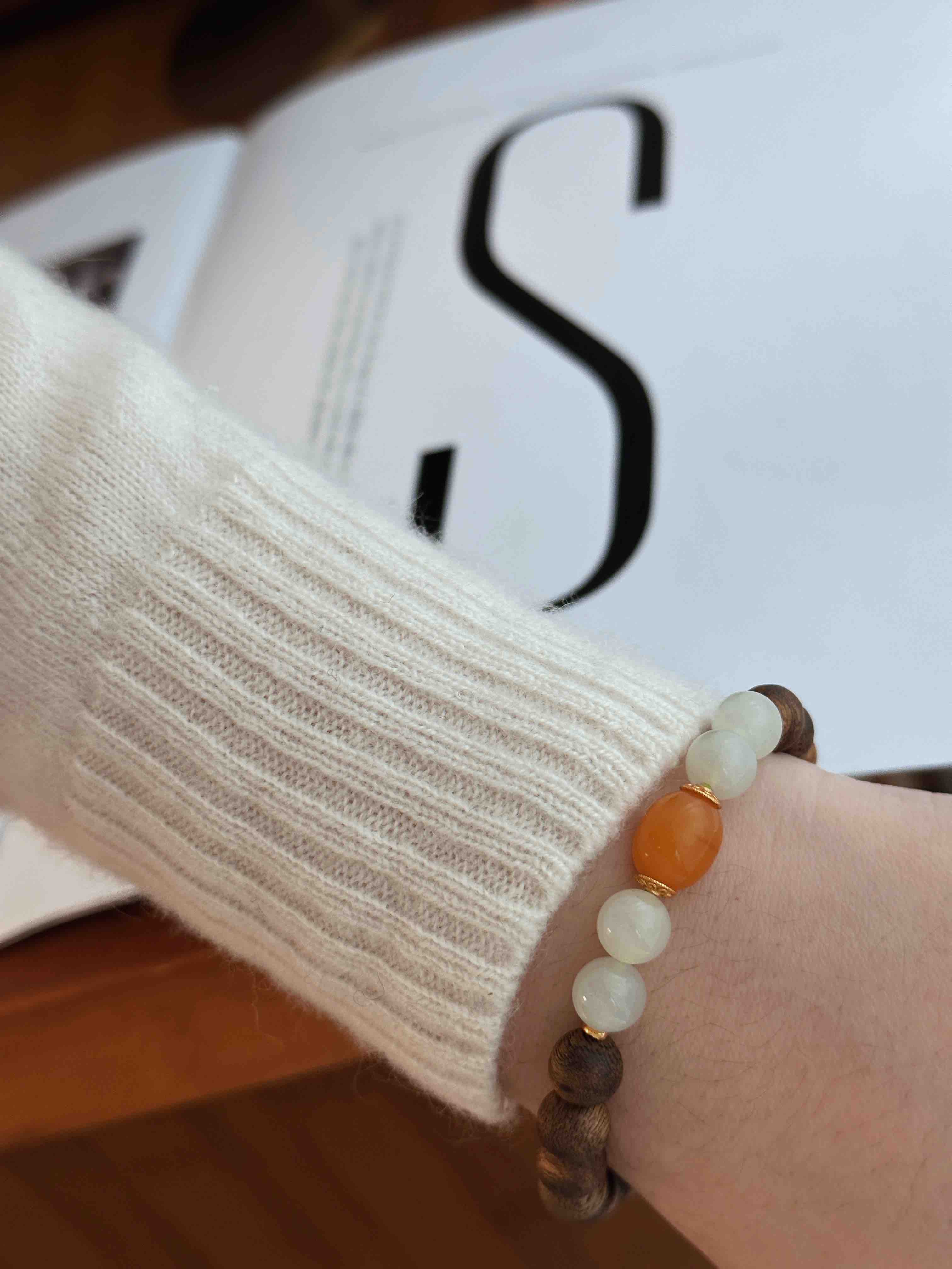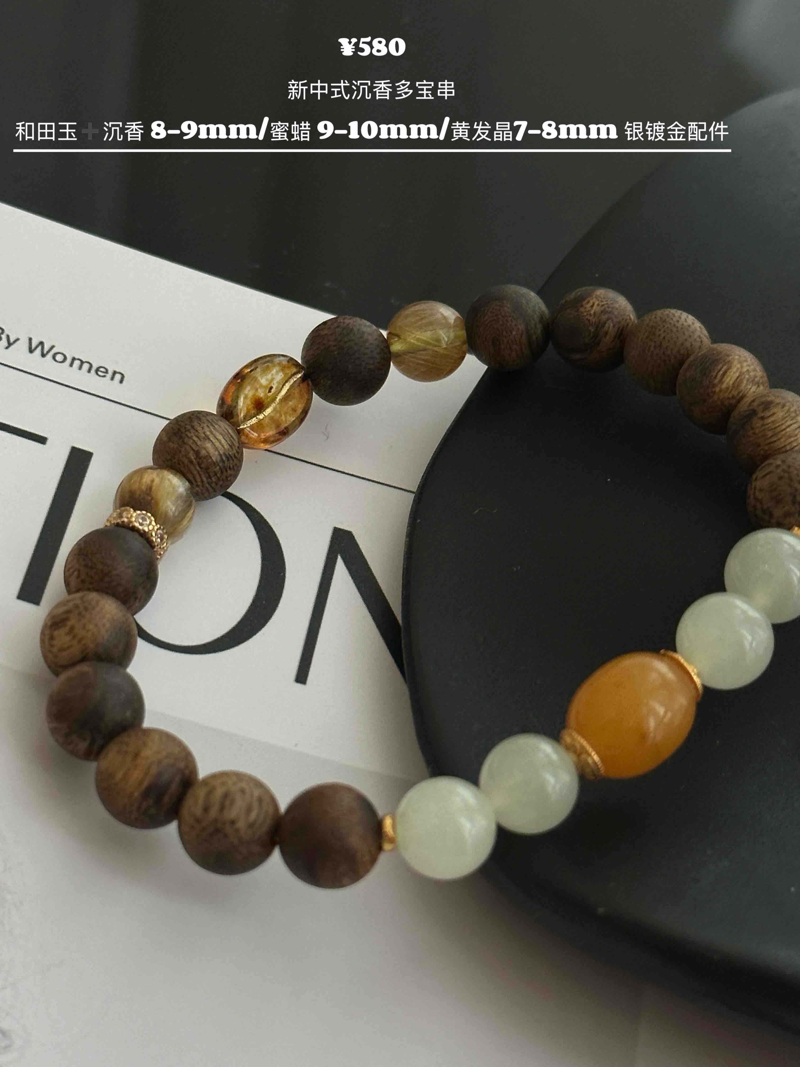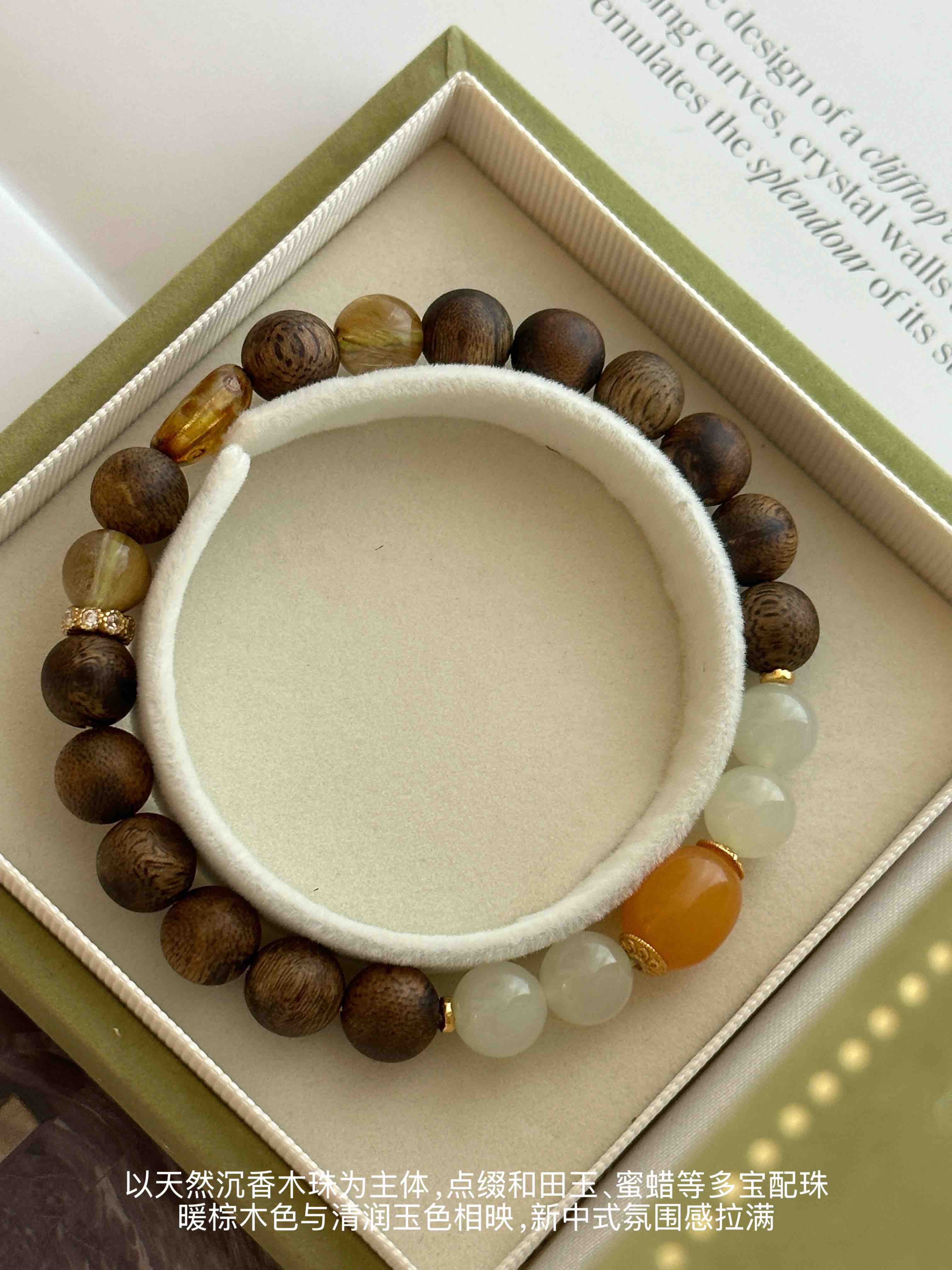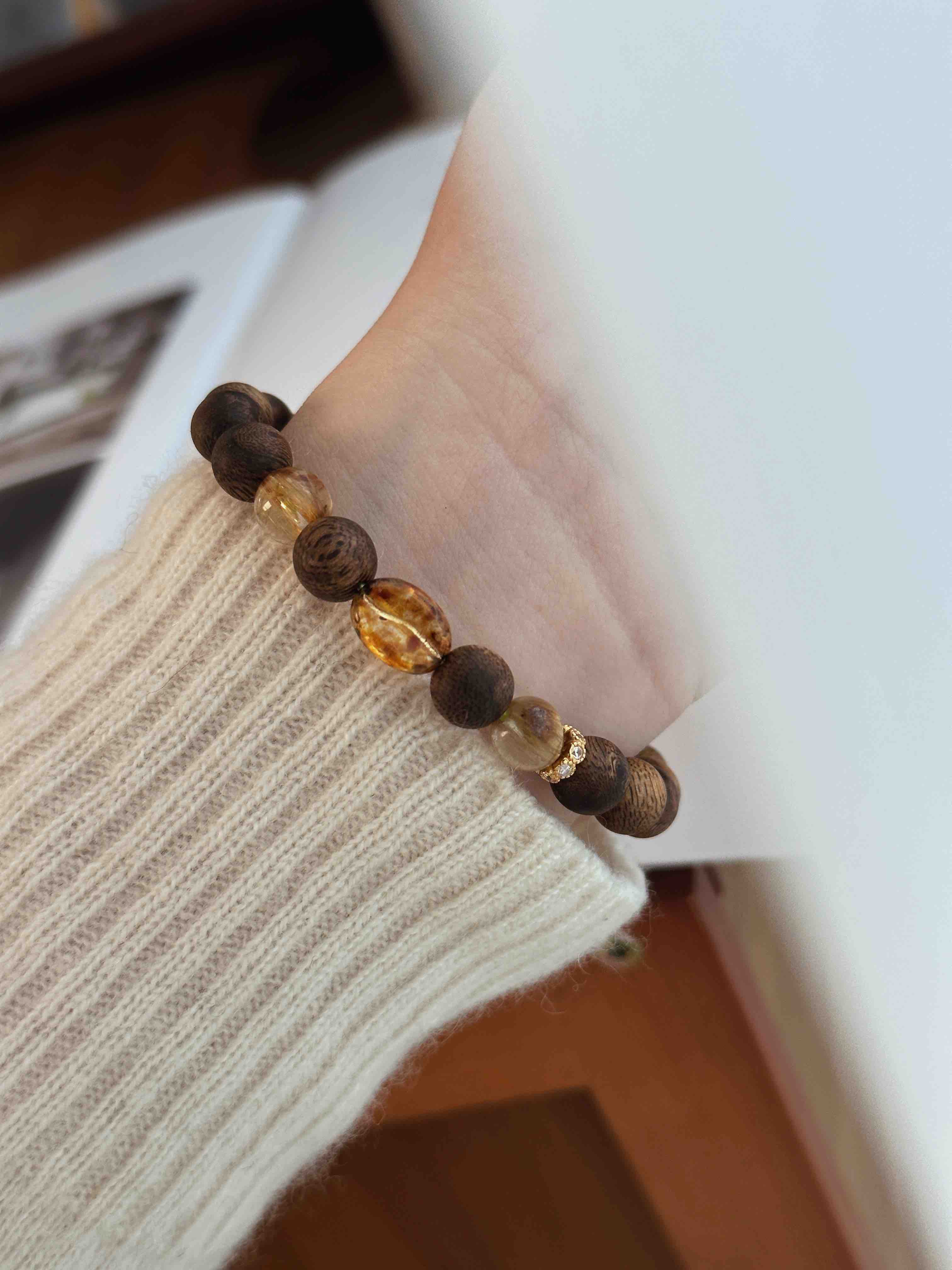 糯糯的真好看,沉香“拿铁”·雅致多宝串 | 温润治愈风:沉香+和田玉+蜜蜡+黄发晶,高端材质,定制腕间香气
