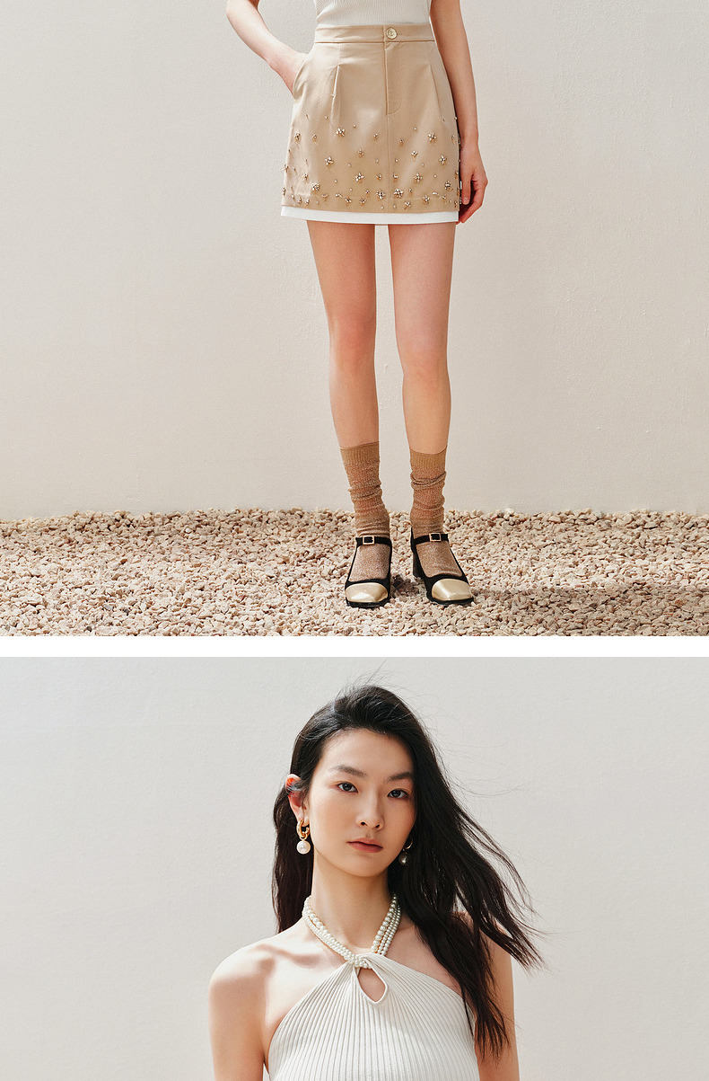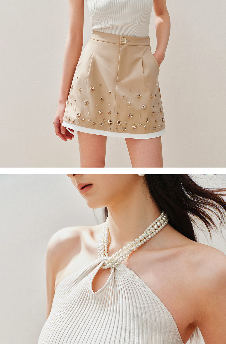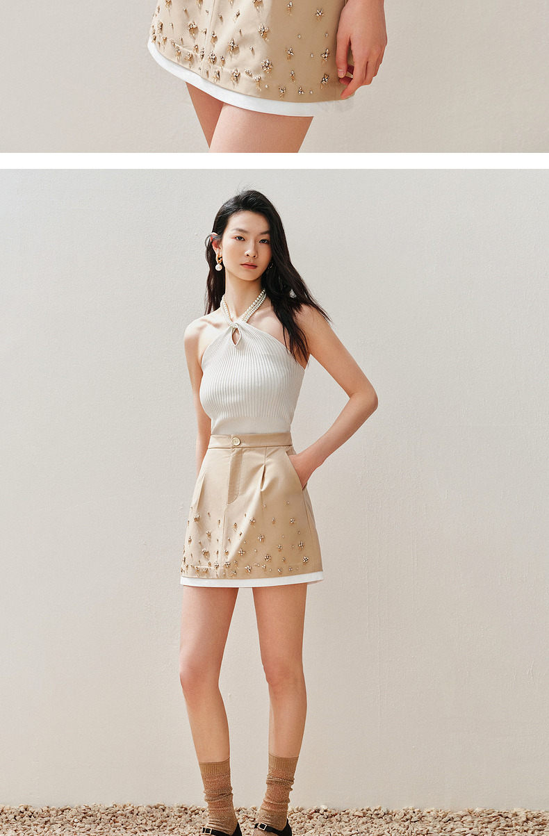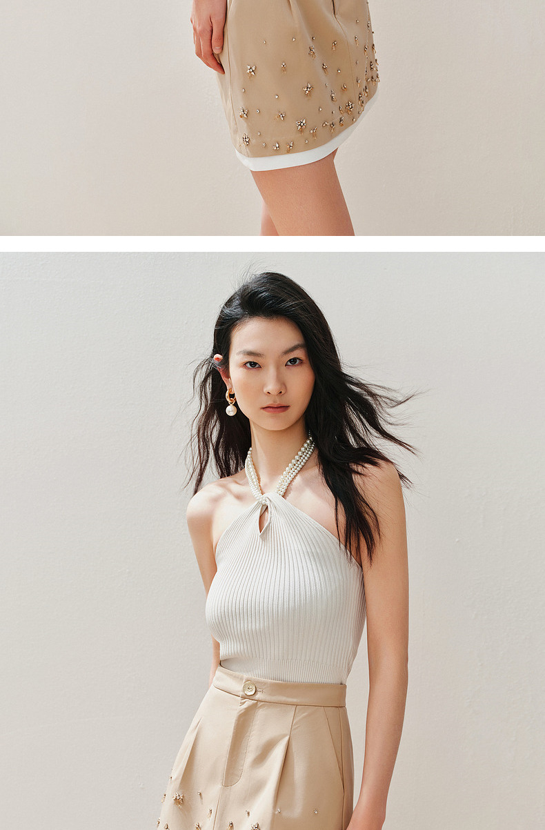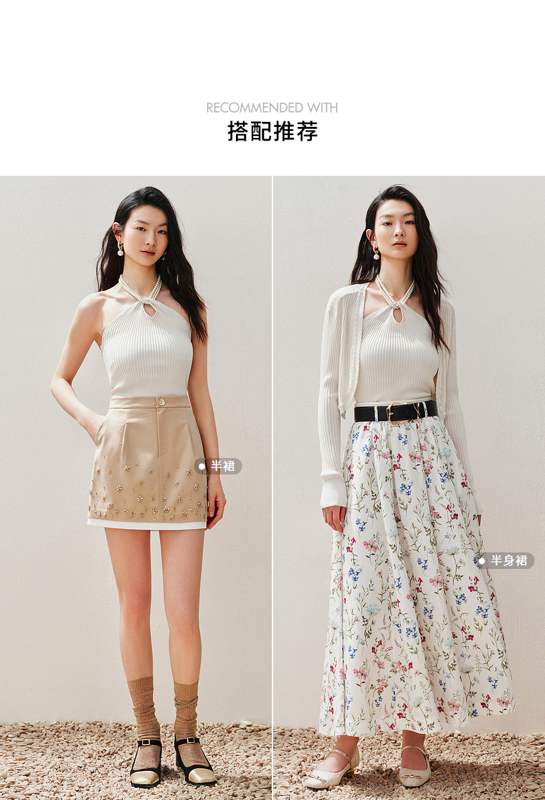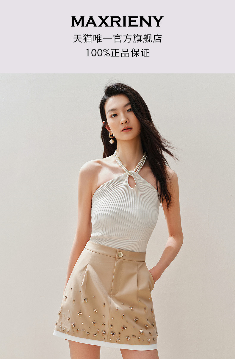 【浪漫花园-商场同款】MAXRIENY复古挂珠挖洞针织毛衫*优雅(货号:MC85SW041)