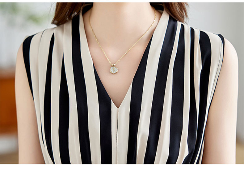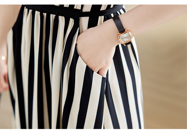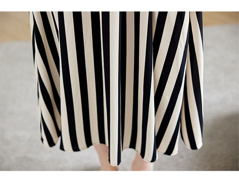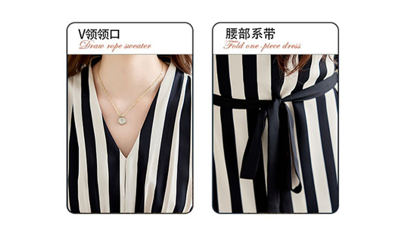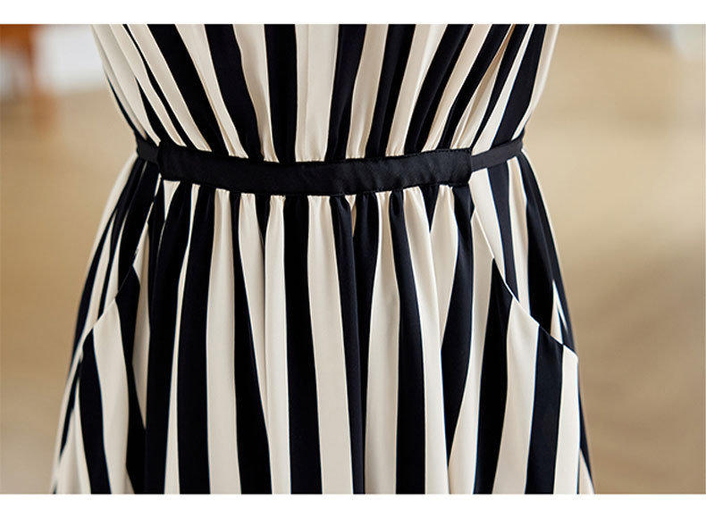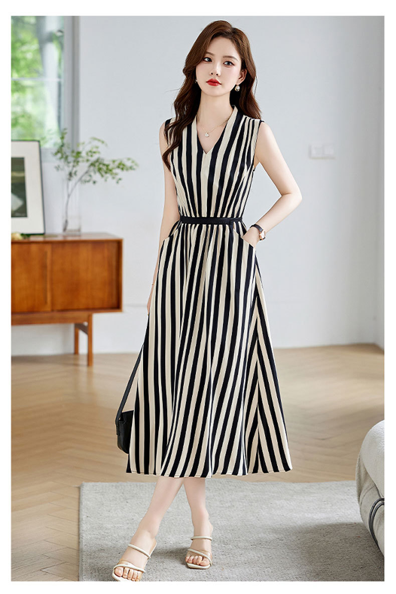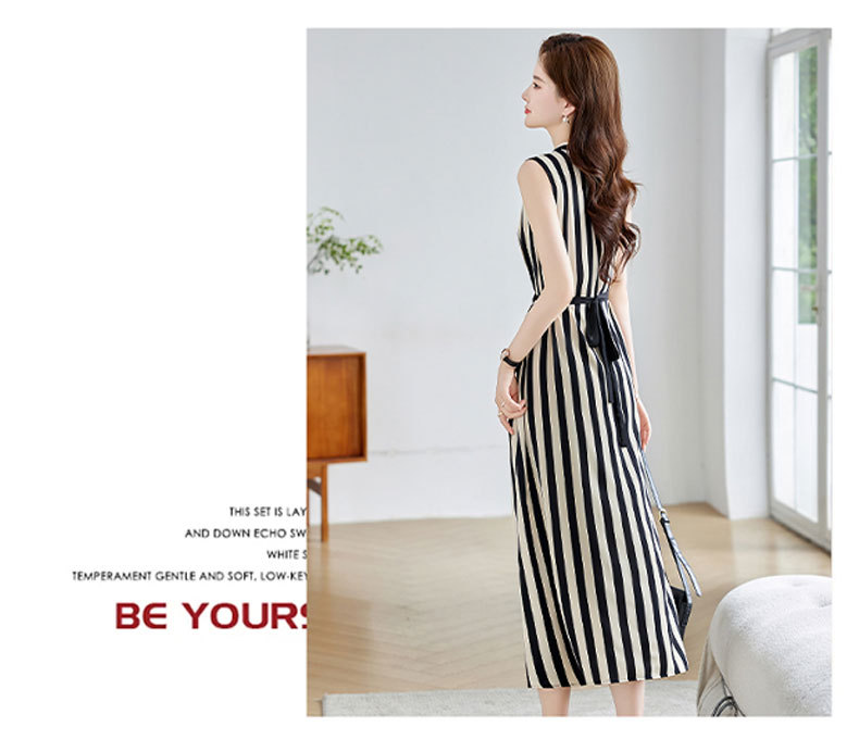 雀说 V领条纹背心连衣裙女夏新款系带收腰洋气长裙4ZF-5280