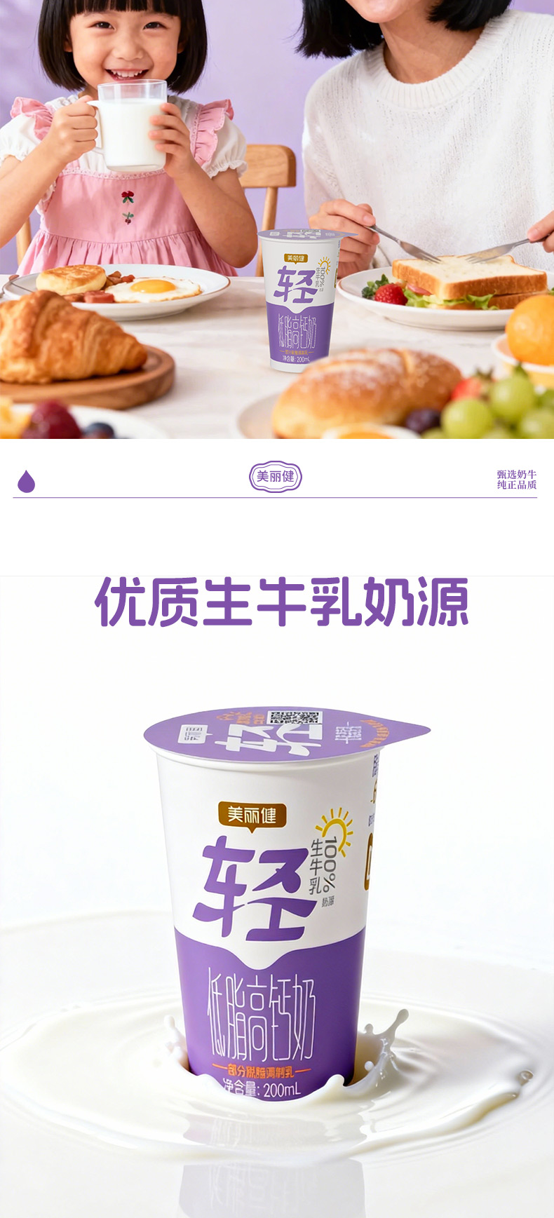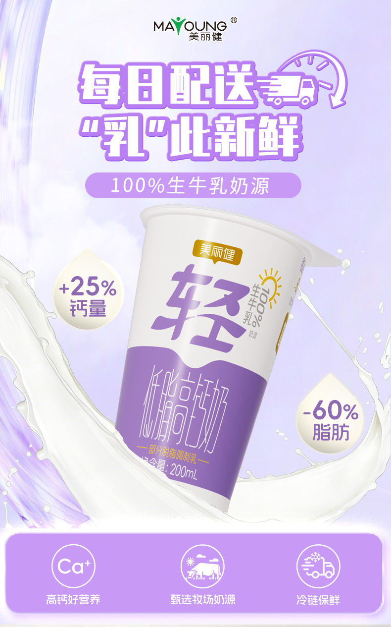 【每日鲜配】美丽健牌纸杯低脂高钙牛奶200mL(低温鲜奶,月套餐,每日配送)