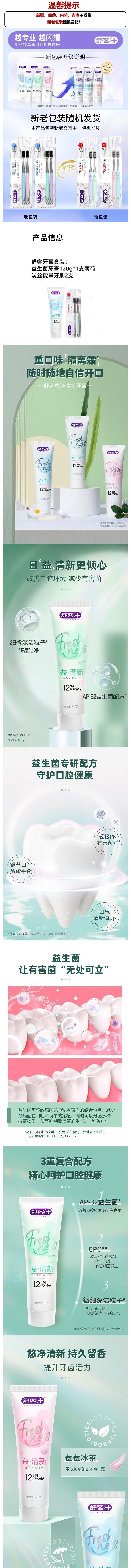 舒客 益生菌牙膏120g*1支薄荷+炭丝能量牙刷2支 68120-03