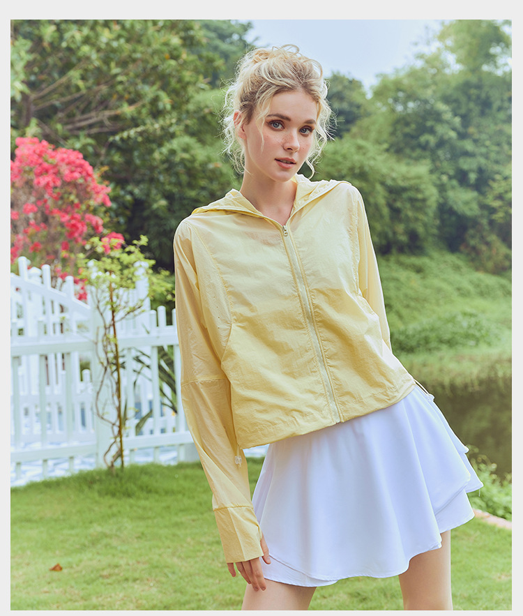 跃牌【健舞健美】系列凉皮5系透气拉链连帽冰丝梭织网纱防晒衣8925