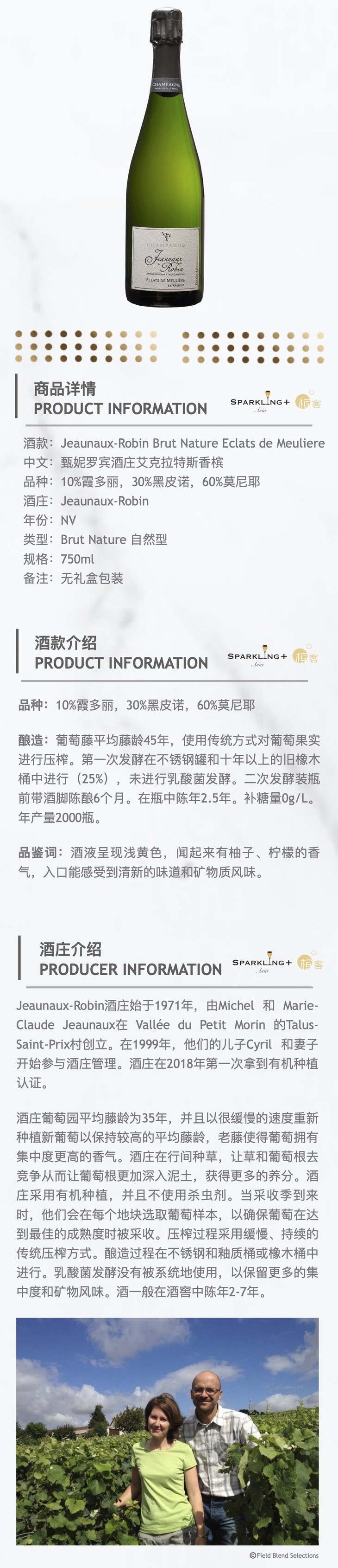 Jeaunaux-Robin Brut Nature Eclats de Meuliere 甄妮罗宾酒庄艾克拉特斯香槟