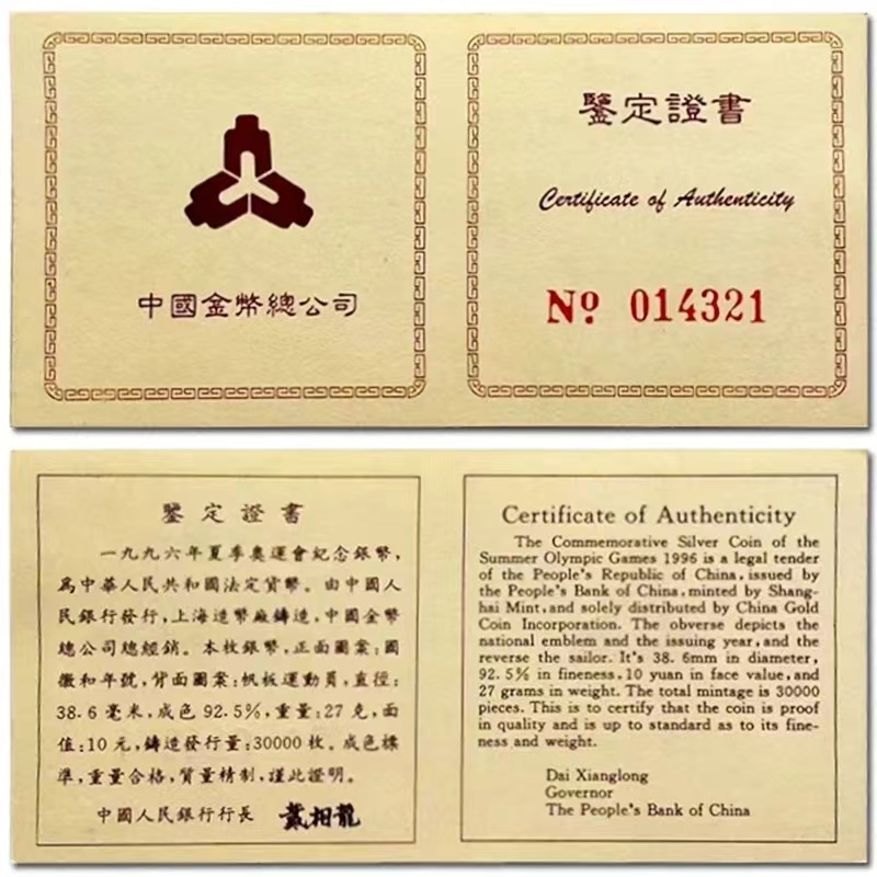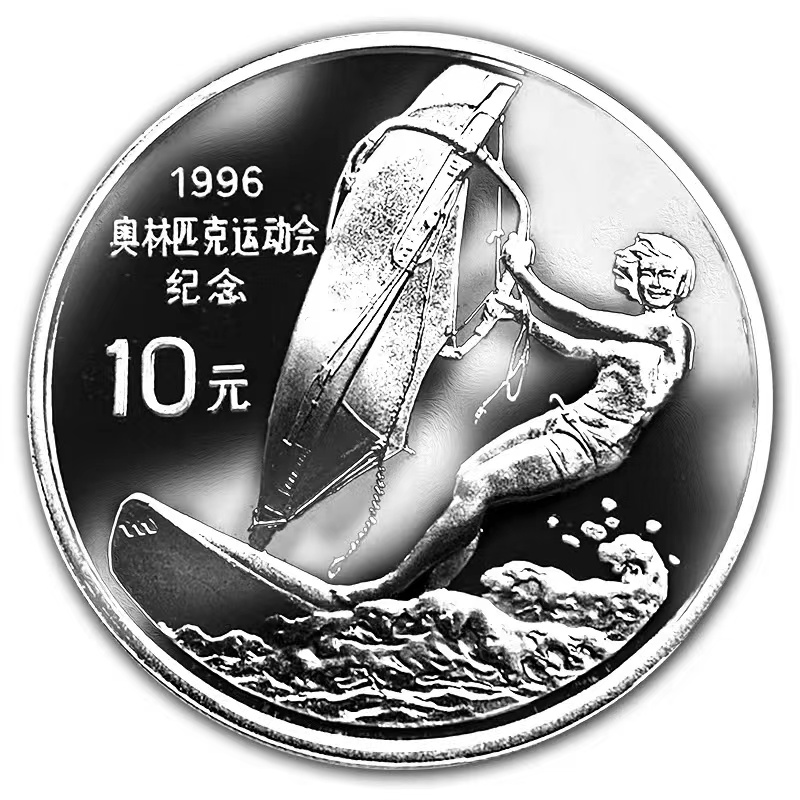 1996年第26届奥运会-李丽珊帆板精制银币 克朗币(27克)