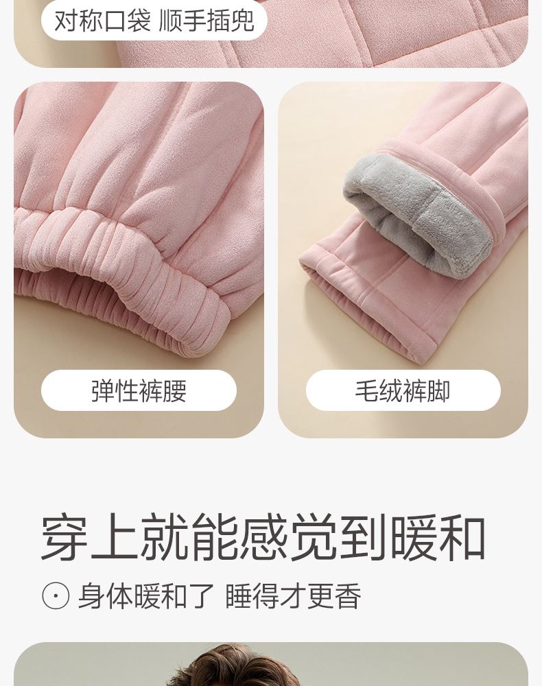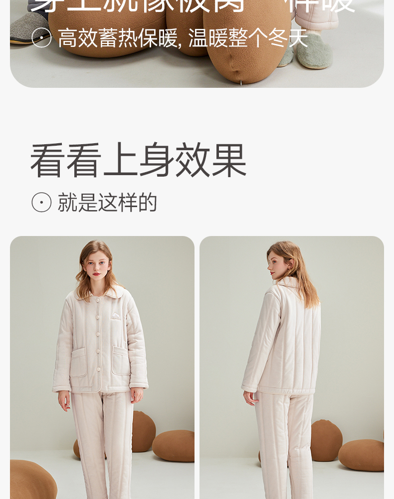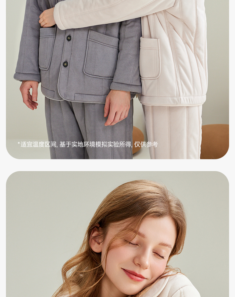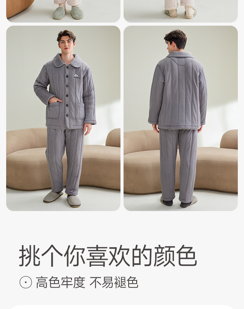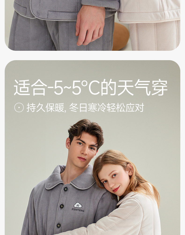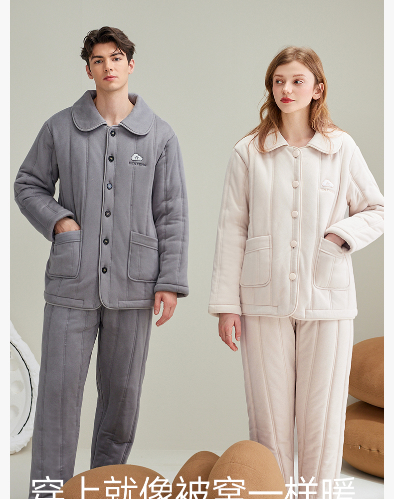 芬腾情侣睡衣冬季珊瑚绒夹棉女士套装三层加厚加绒抗静电家居服男