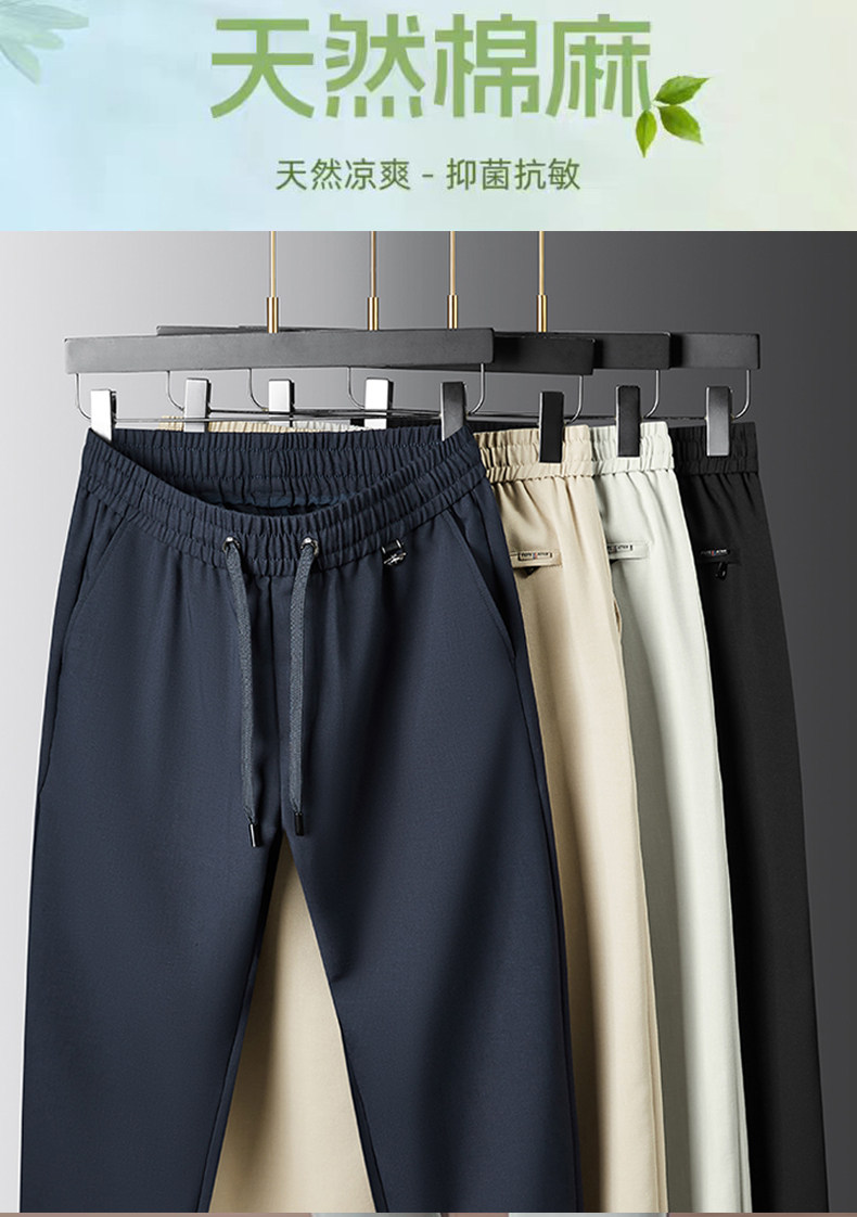【DWD】大依优型大码男装春季亚麻商务长裤休闲百搭松紧腰长裤