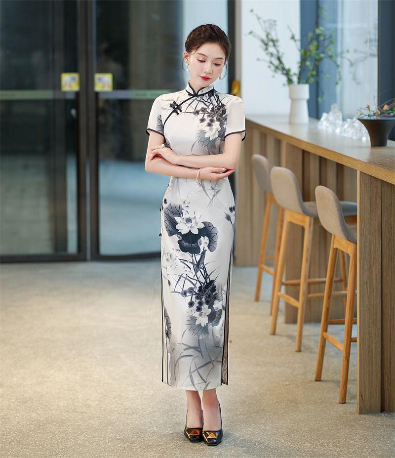 夏季新款,改良民会水墨荷花旗袍连衣裙GX298883