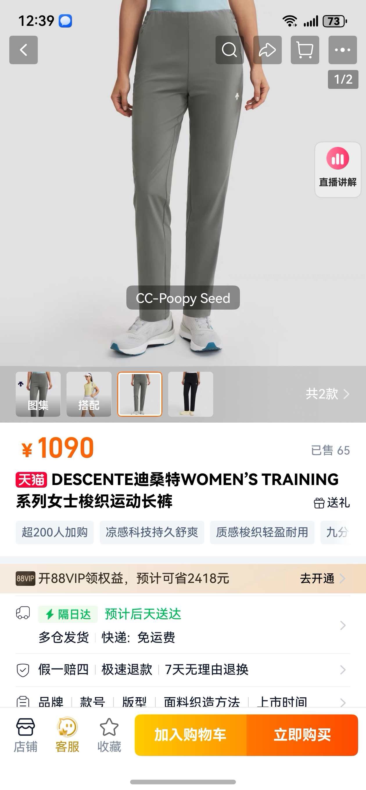 118 货号095741118 ly DESCENTE迪桑特WOMEN'SRUNNING系列女士梭织运动长裤