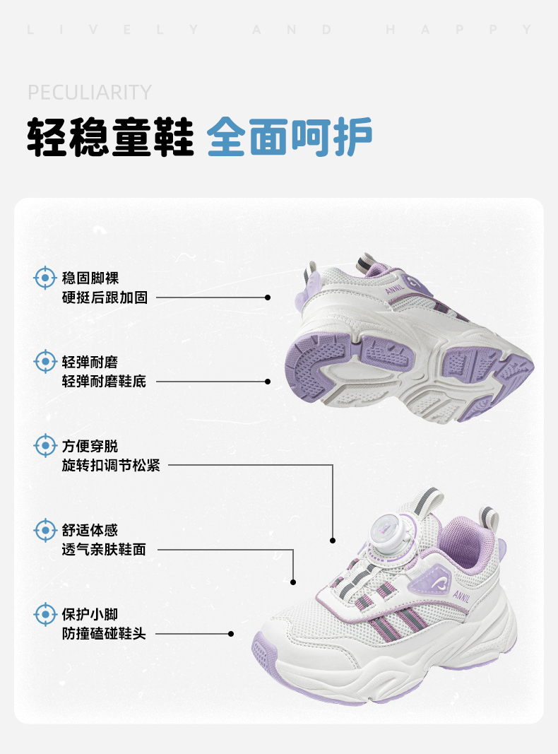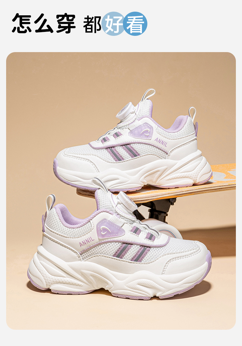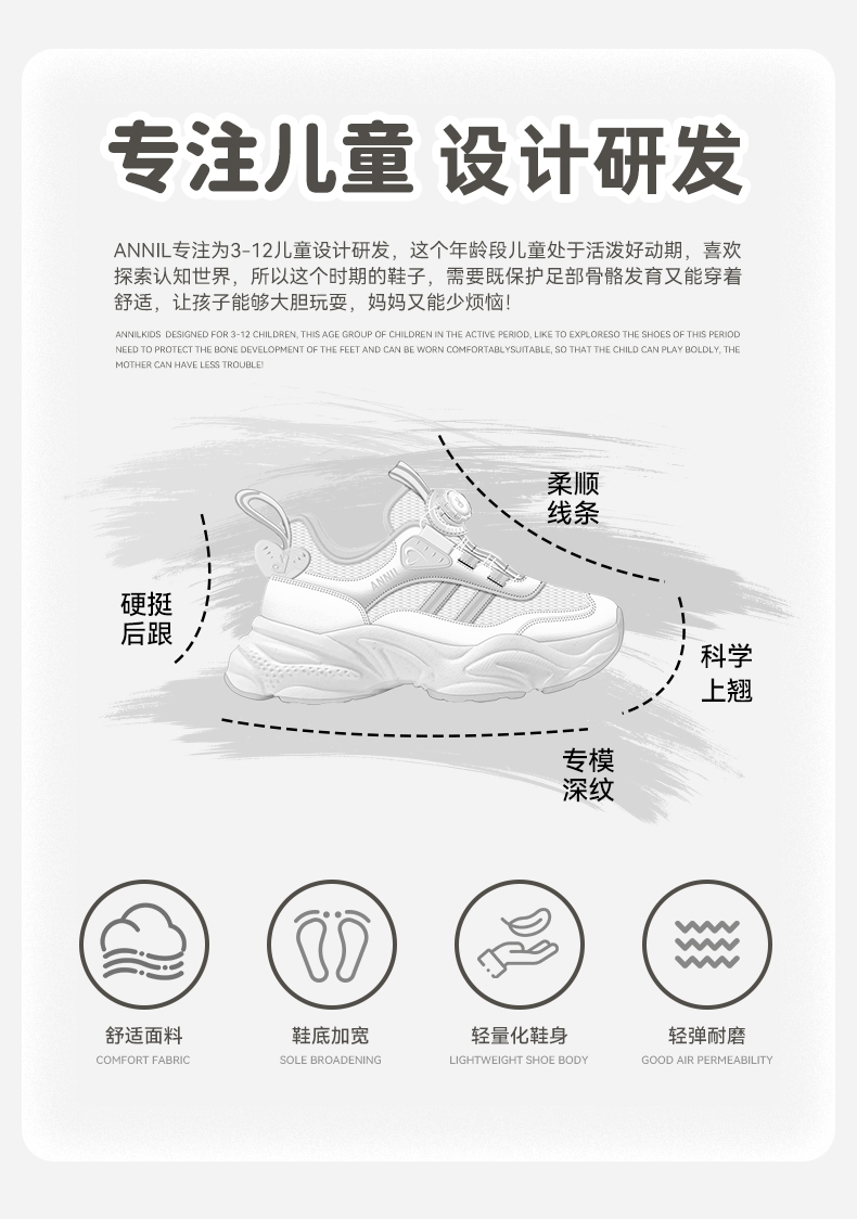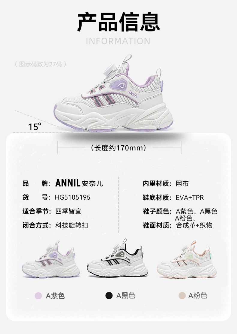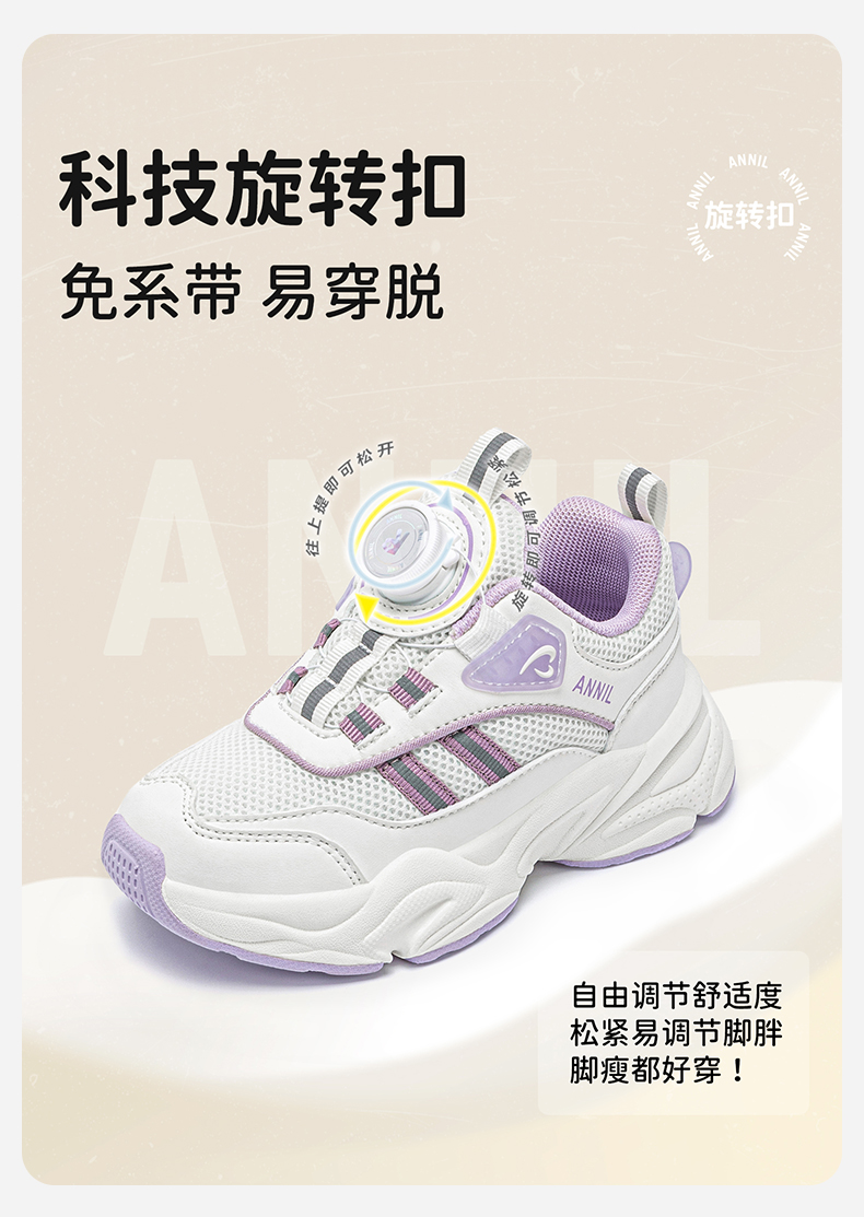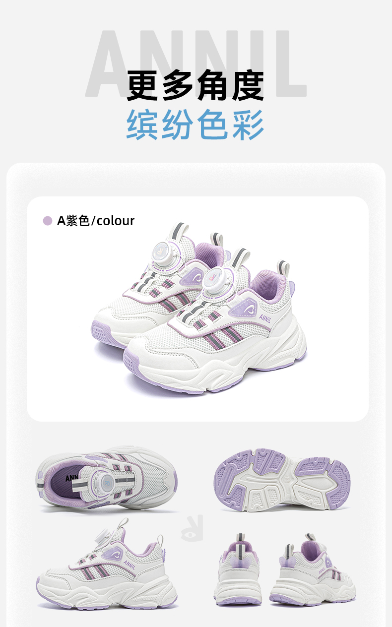 ANNIL/安奈儿儿童运动鞋2025春秋男童旋转扣网面鞋中大童软底女童跑步鞋HG5105195
