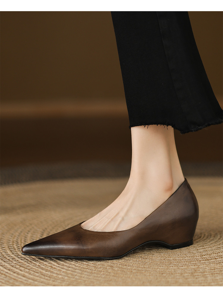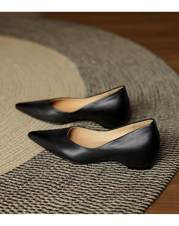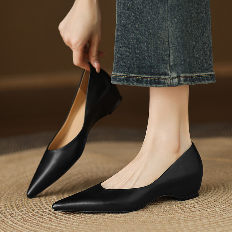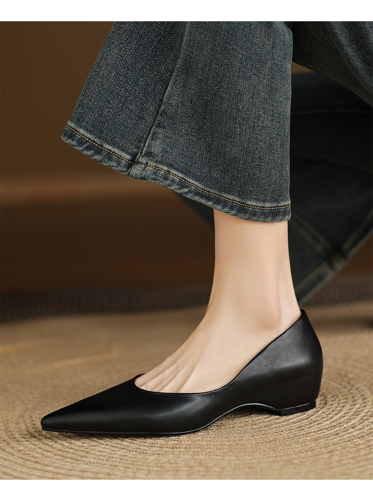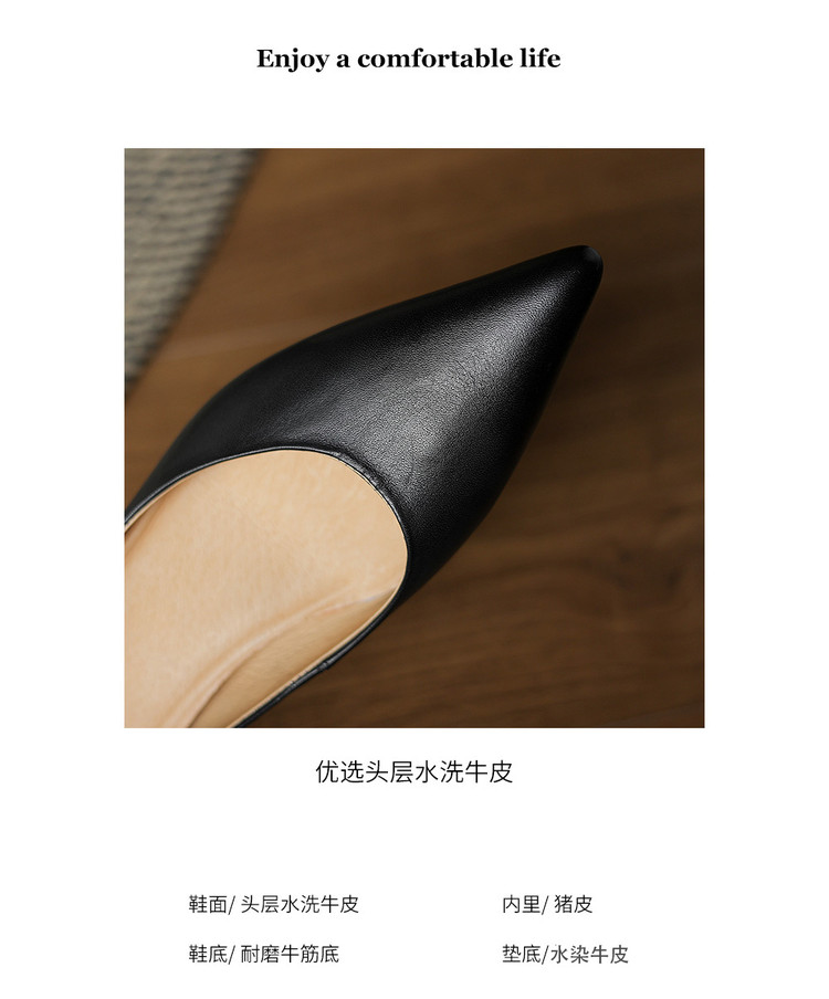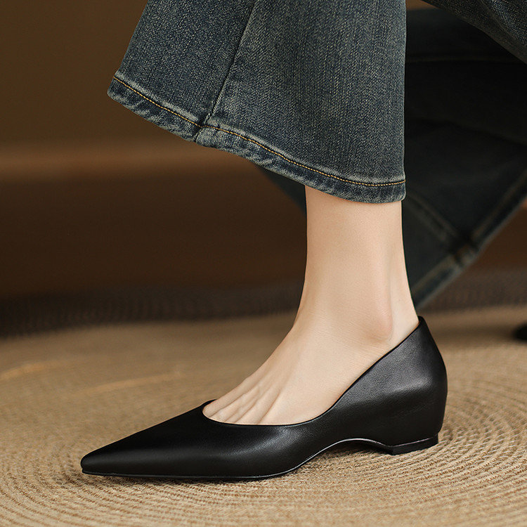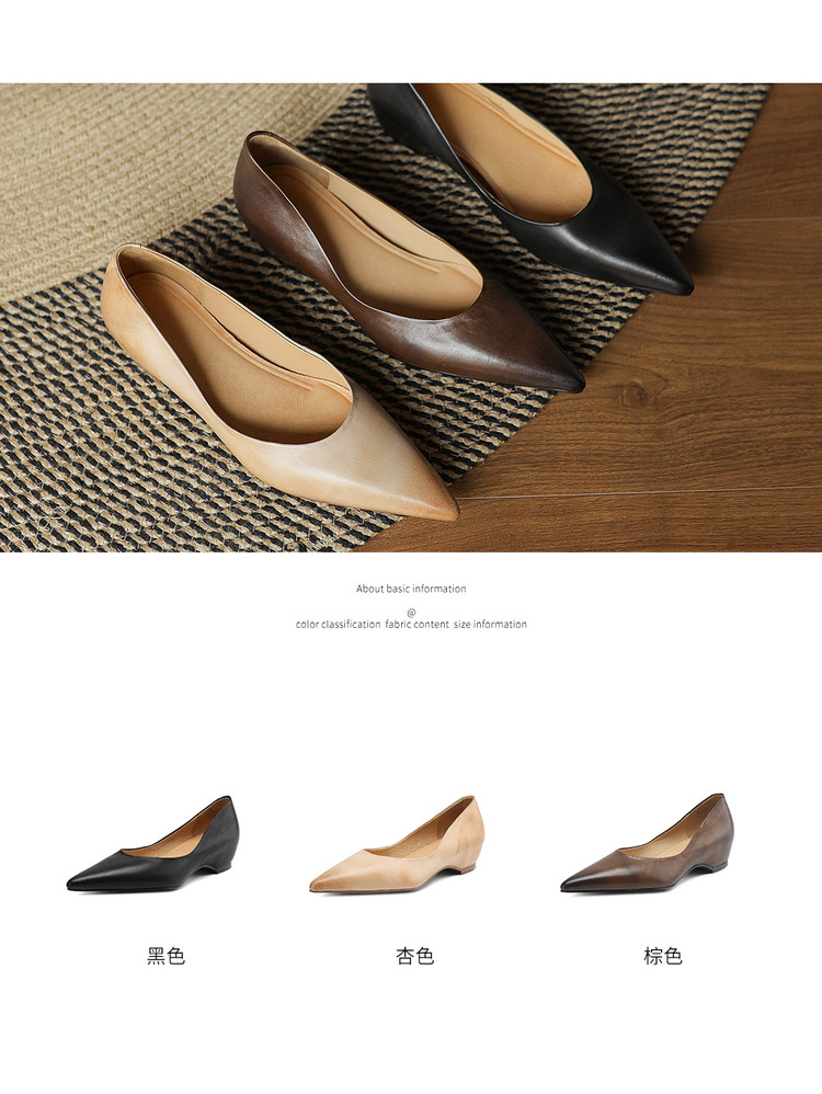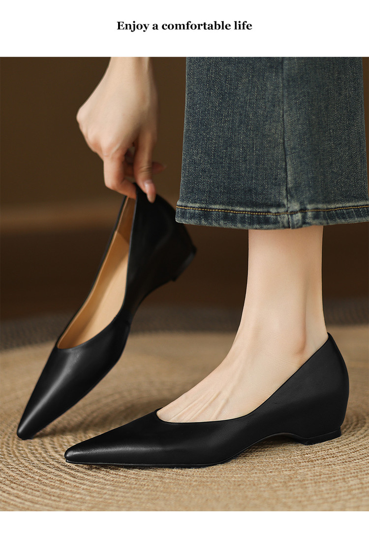 【预售5天】优雅舒适通勤内增高头层牛皮秋季中跟百搭尖头真皮浅口单鞋女DY&11520
