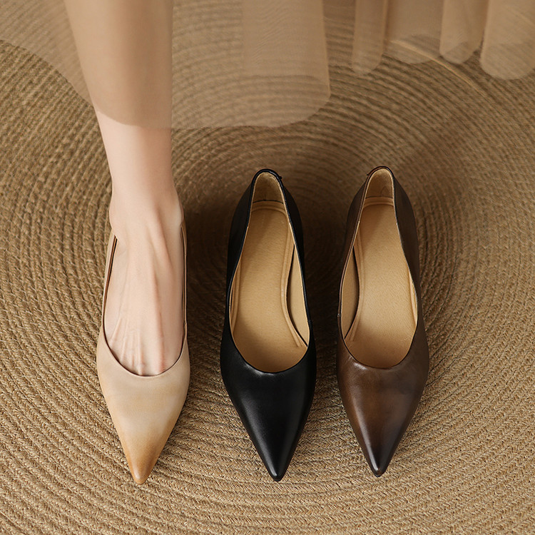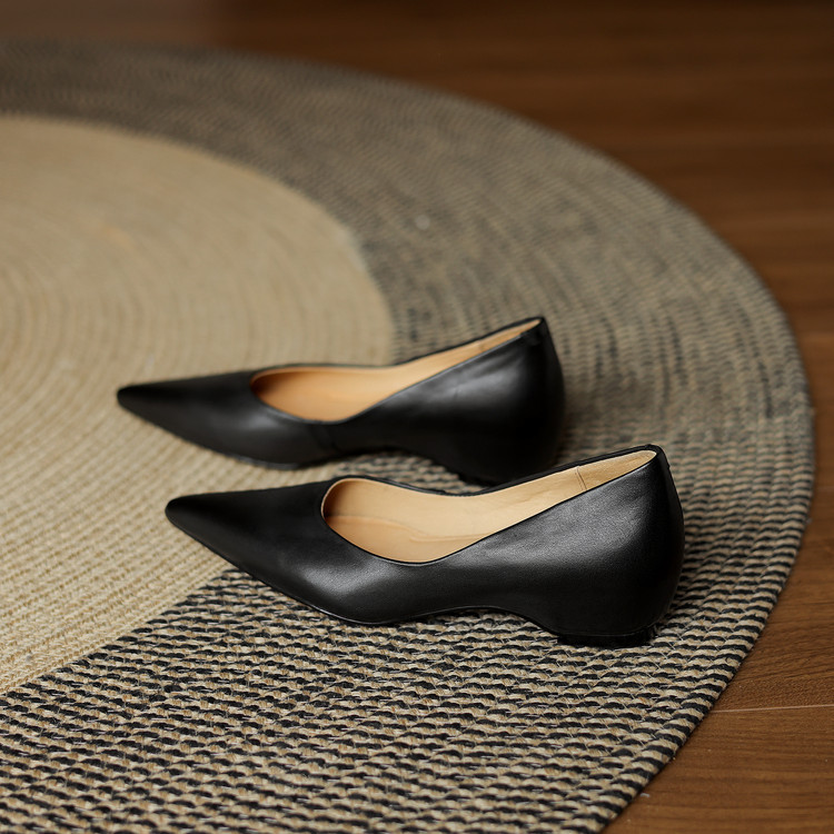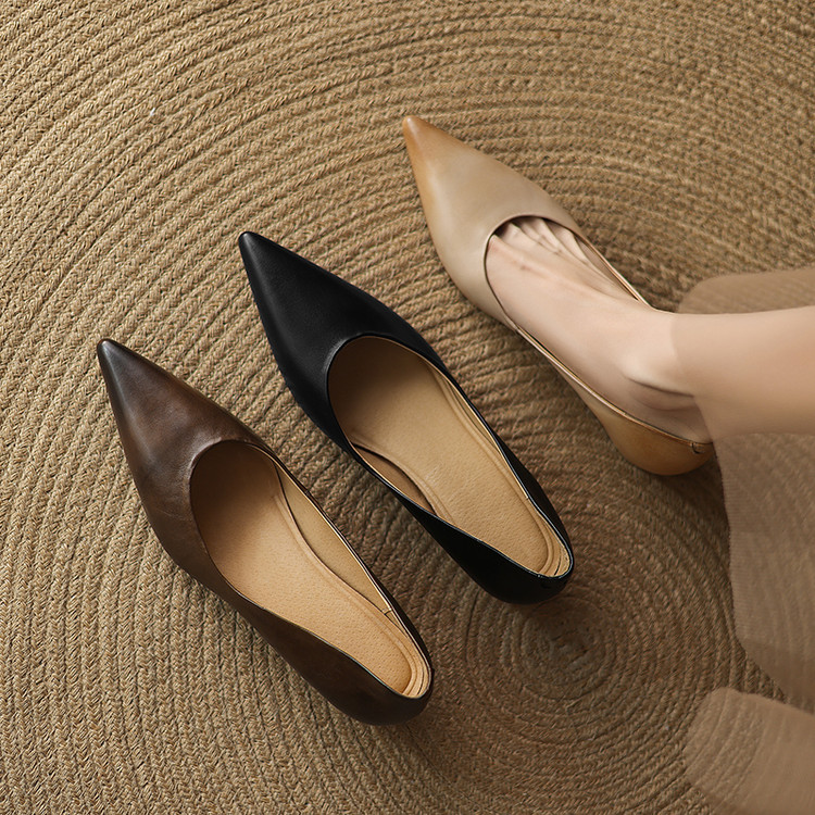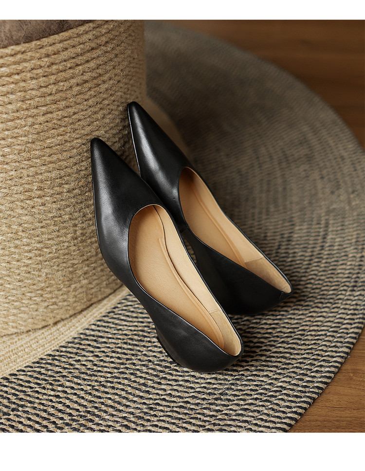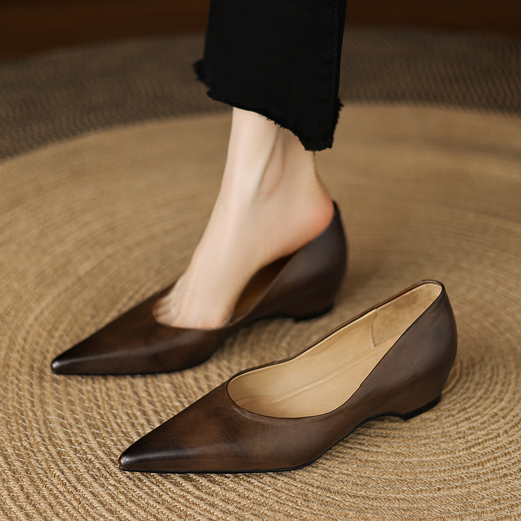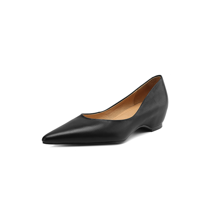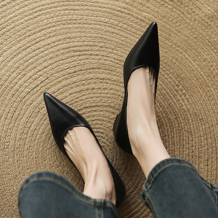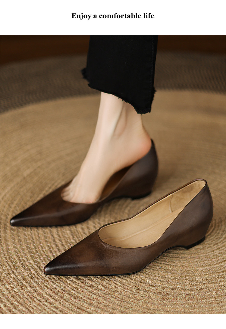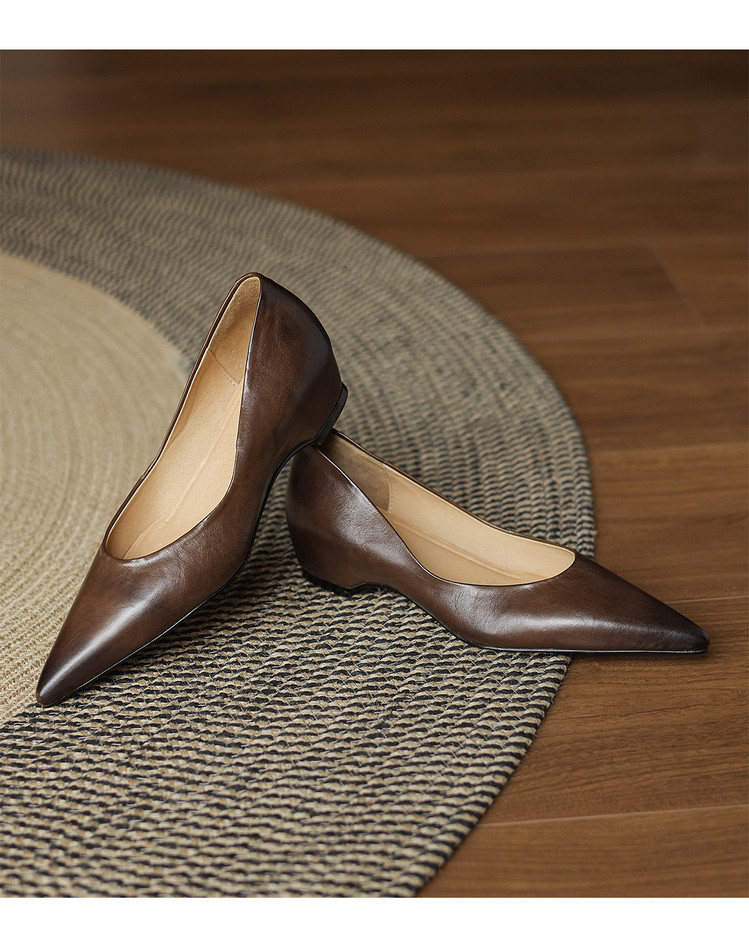 【预售5天】优雅舒适通勤内增高头层牛皮秋季中跟百搭尖头真皮浅口单鞋女DY&11520