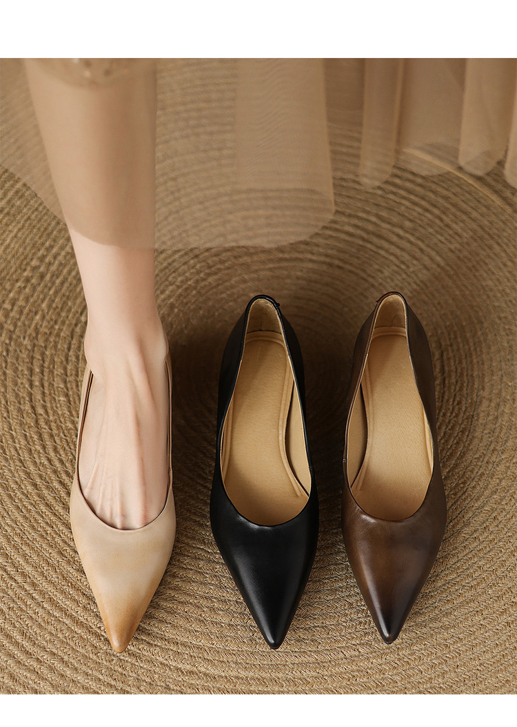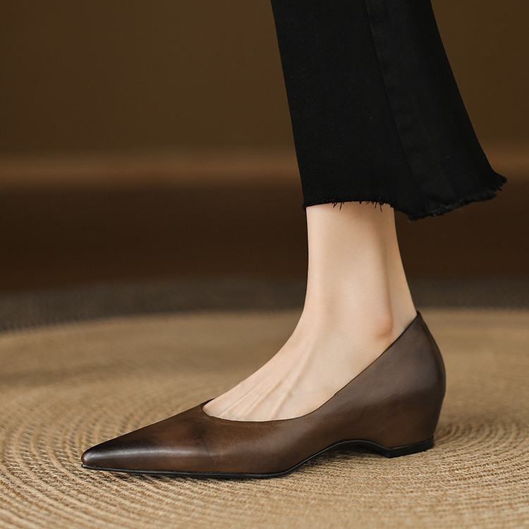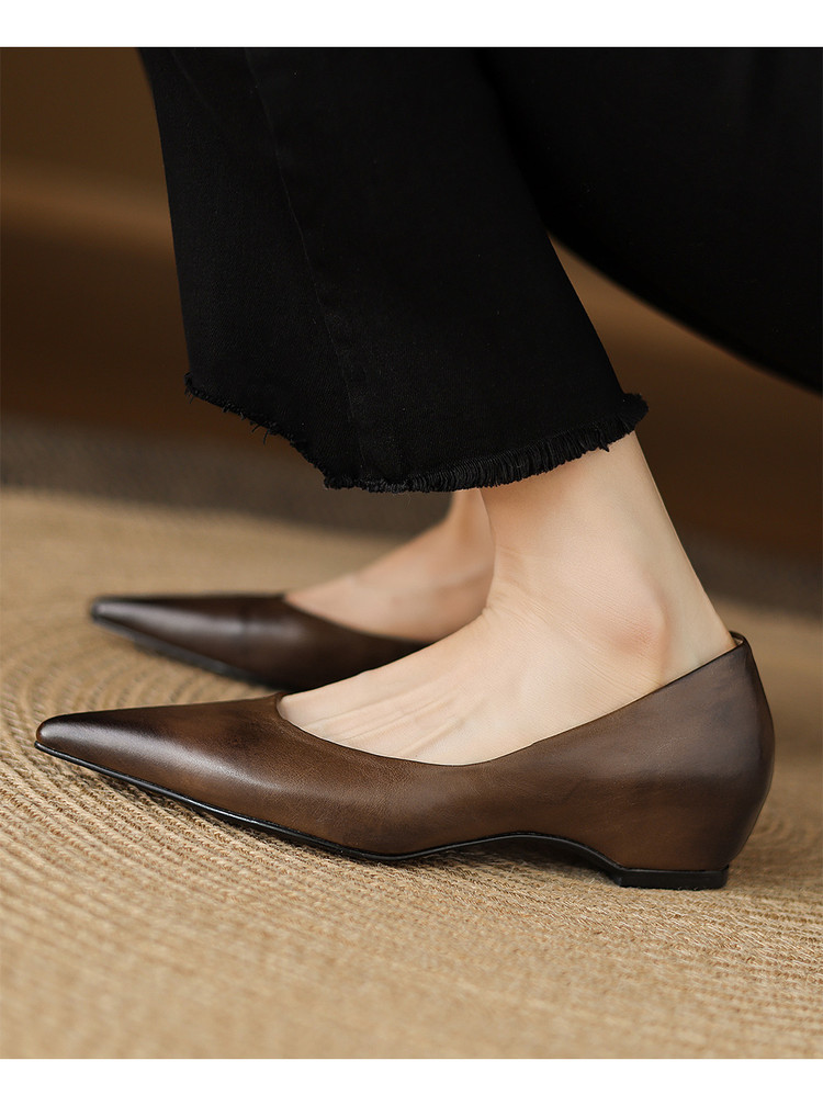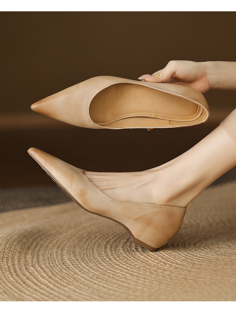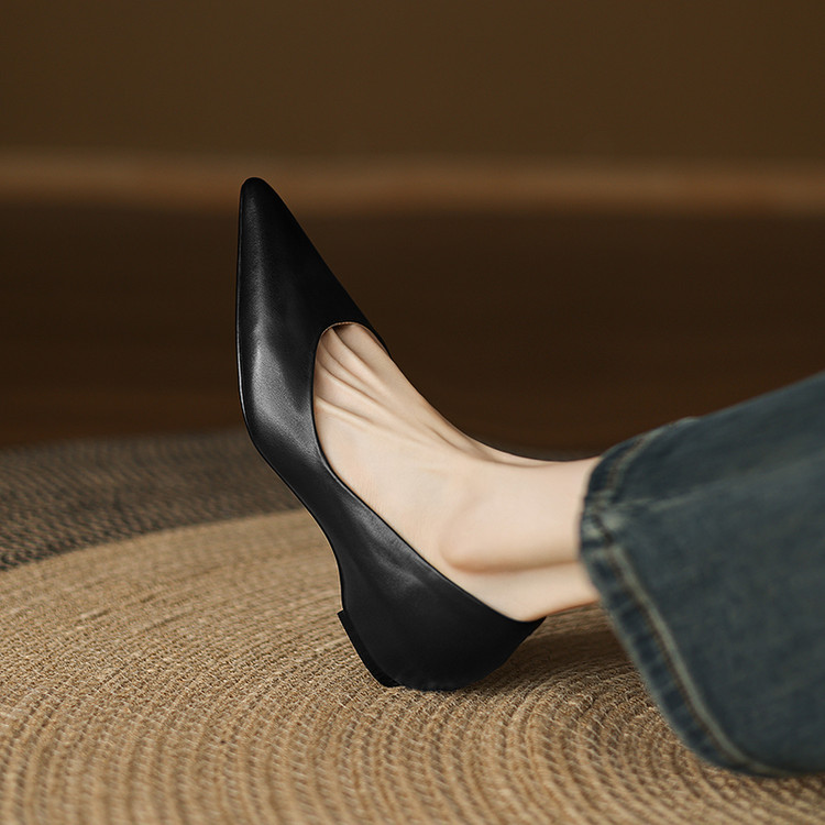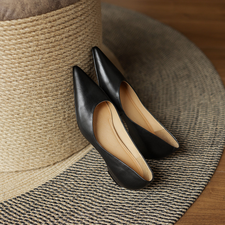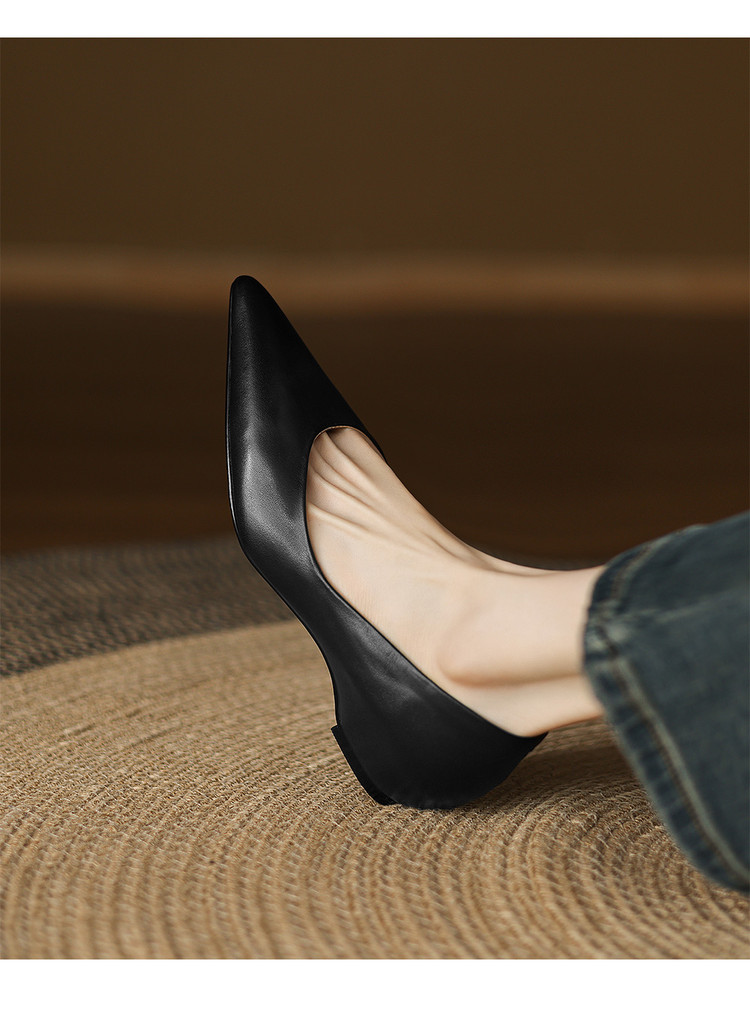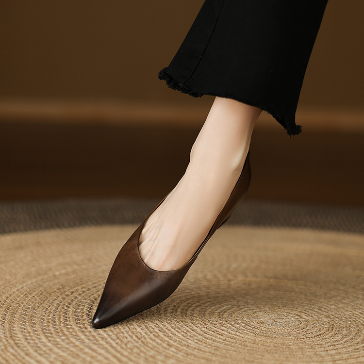 【预售5天】优雅舒适通勤内增高头层牛皮秋季中跟百搭尖头真皮浅口单鞋女DY&11520