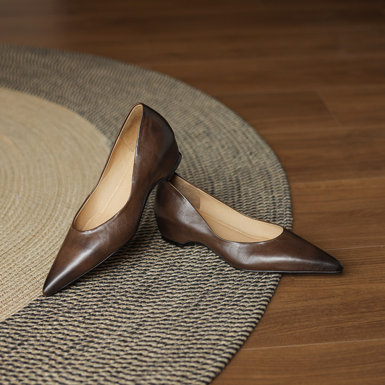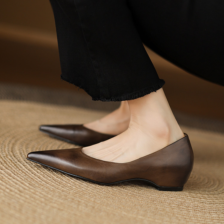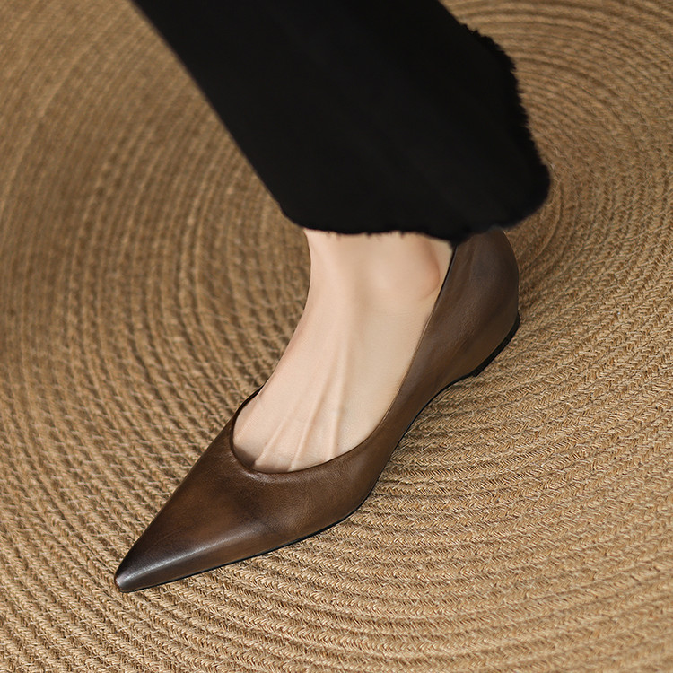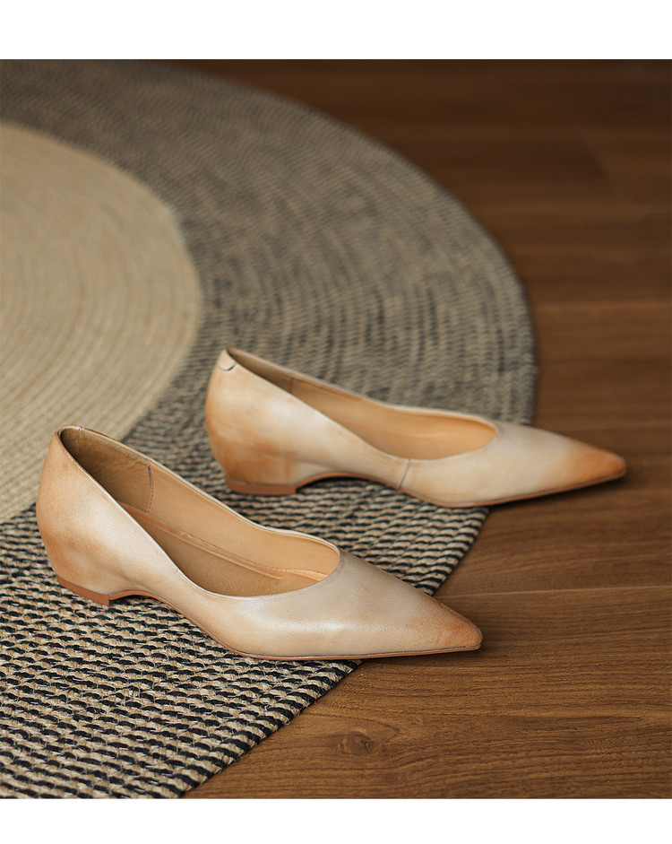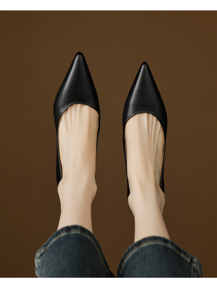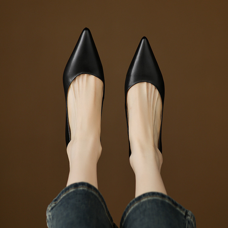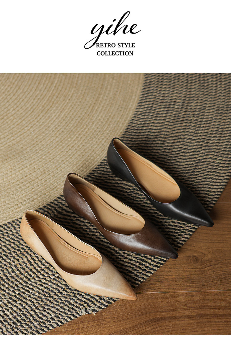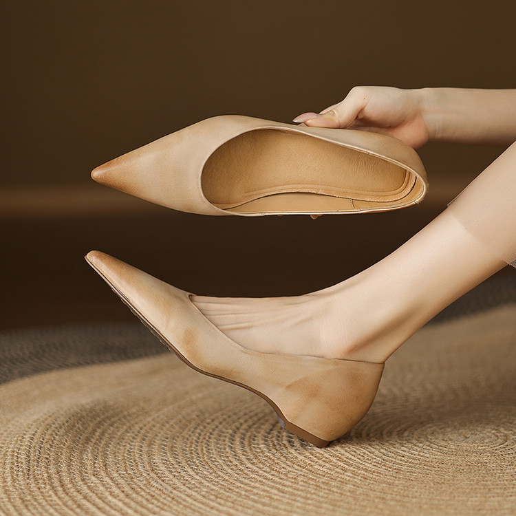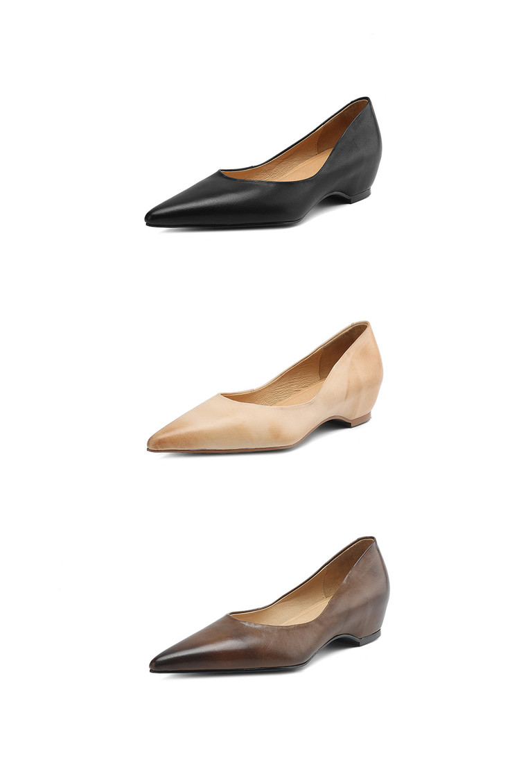 【预售5天】优雅舒适通勤内增高头层牛皮秋季中跟百搭尖头真皮浅口单鞋女DY&11520