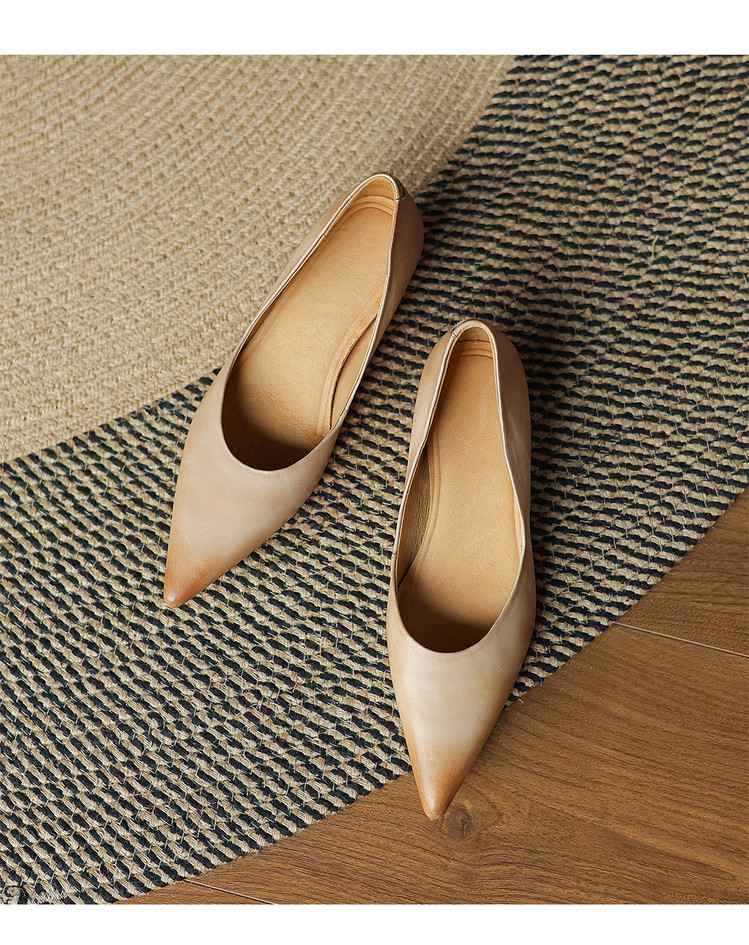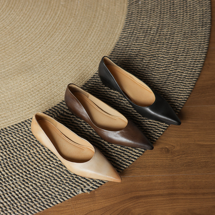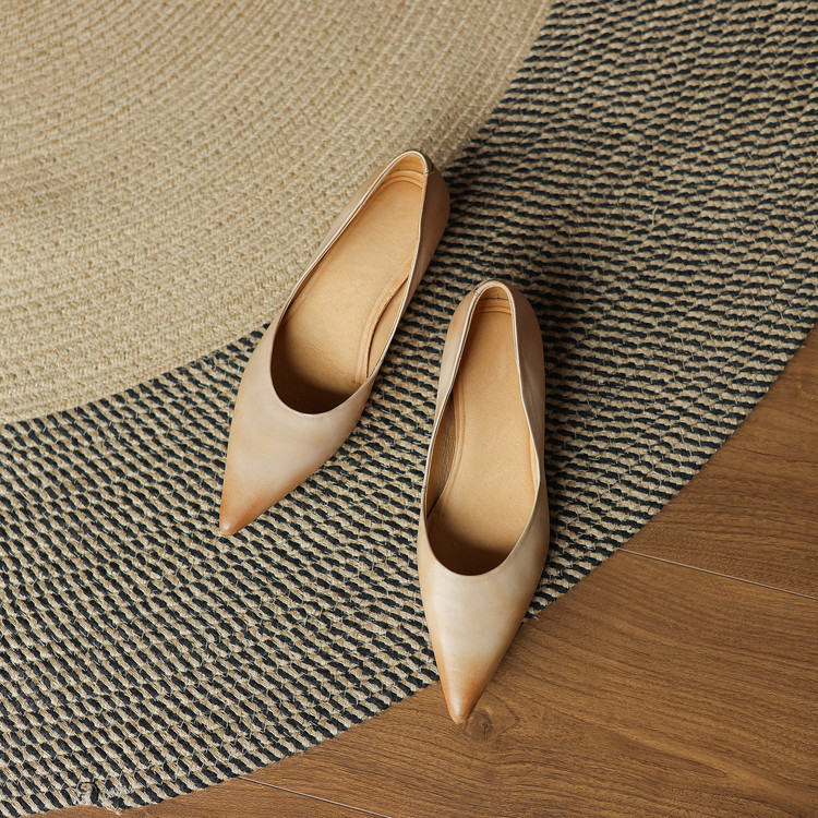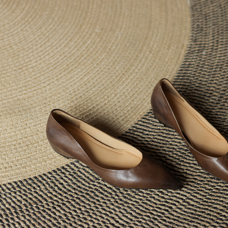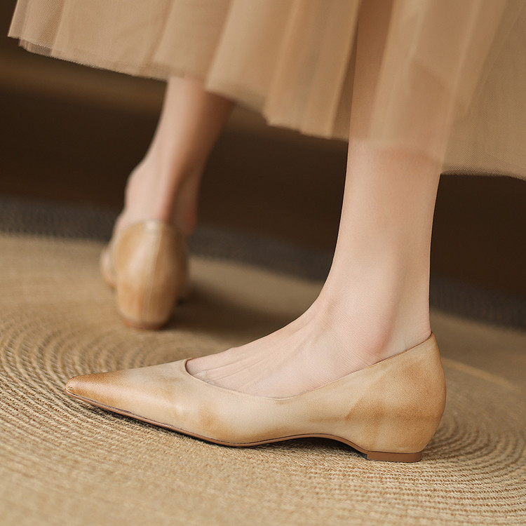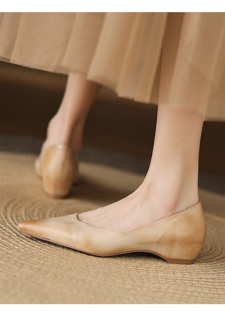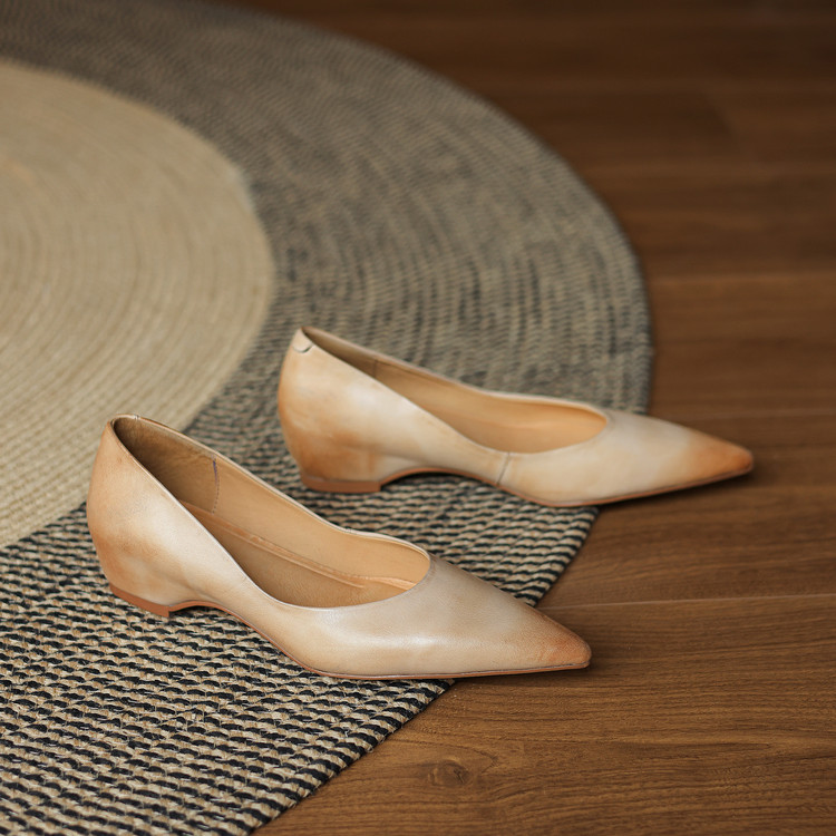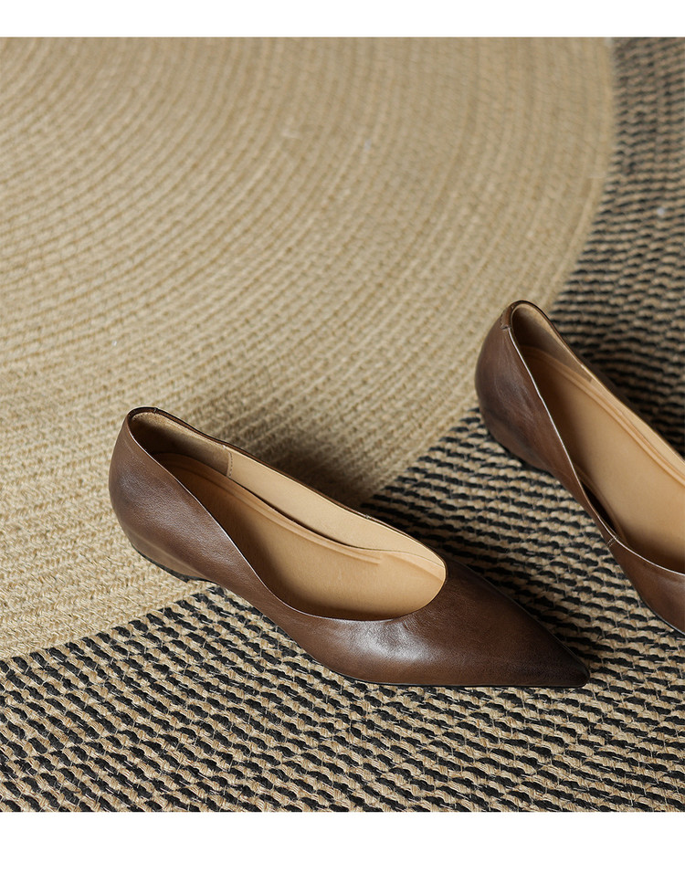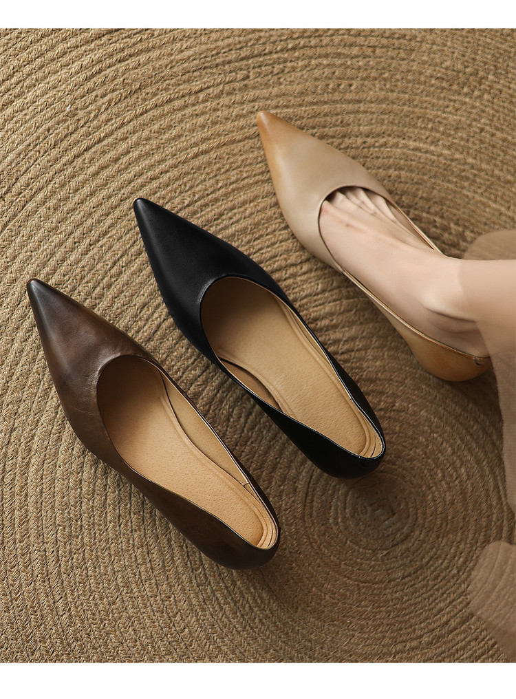 【预售5天】优雅舒适通勤内增高头层牛皮秋季中跟百搭尖头真皮浅口单鞋女DY&11520