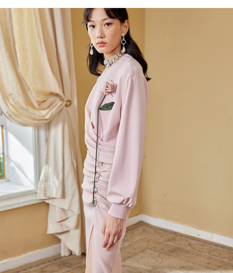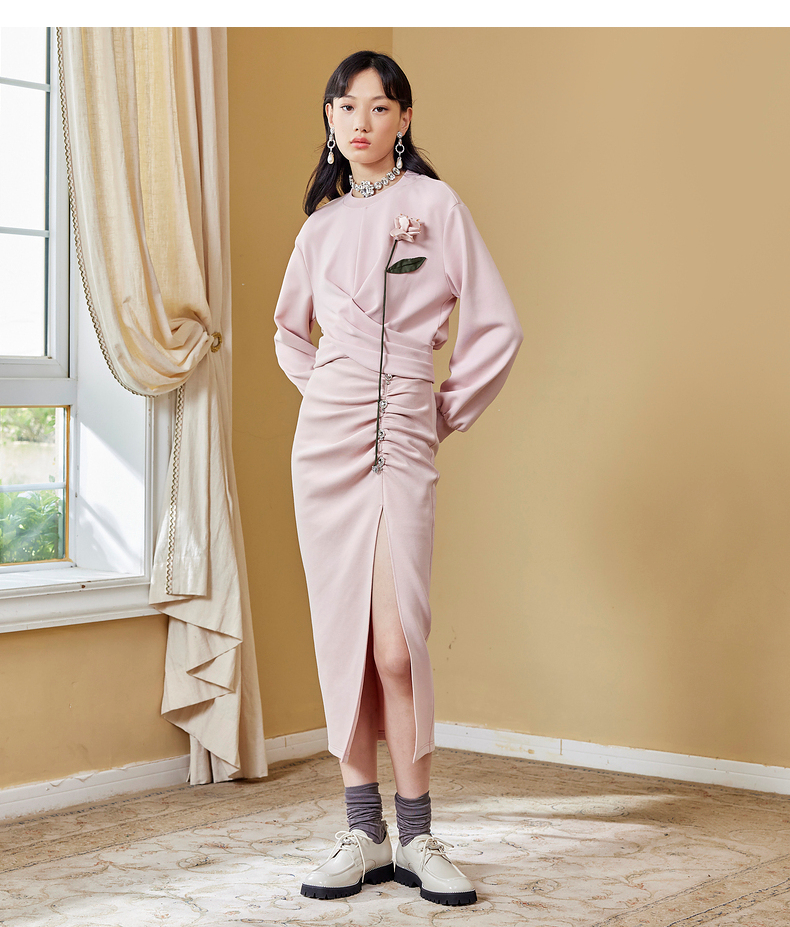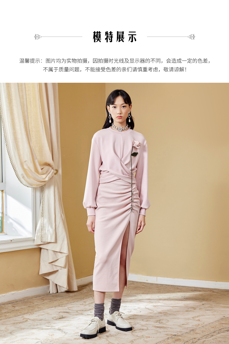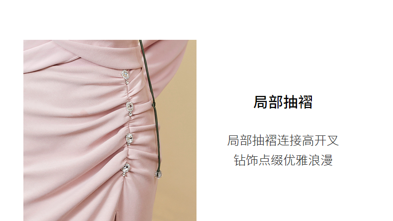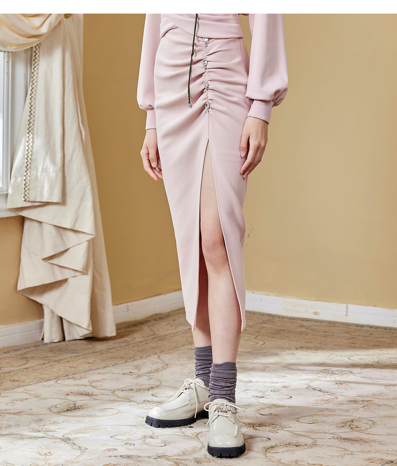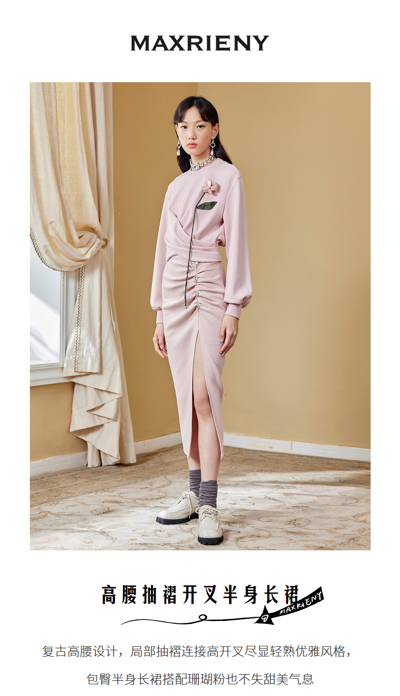 MAXRIENY高开叉抽褶包臀裙秋季高腰设计感半身裙(货号:MC87SK564)