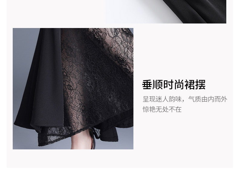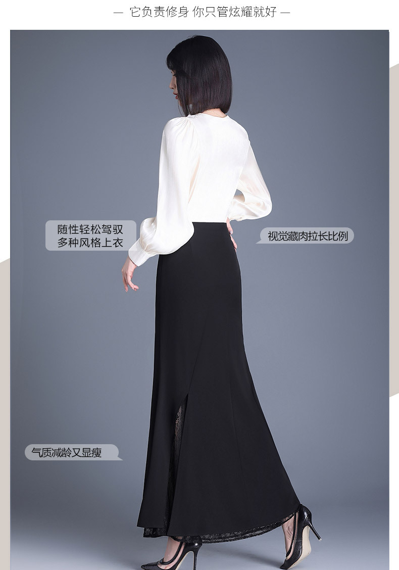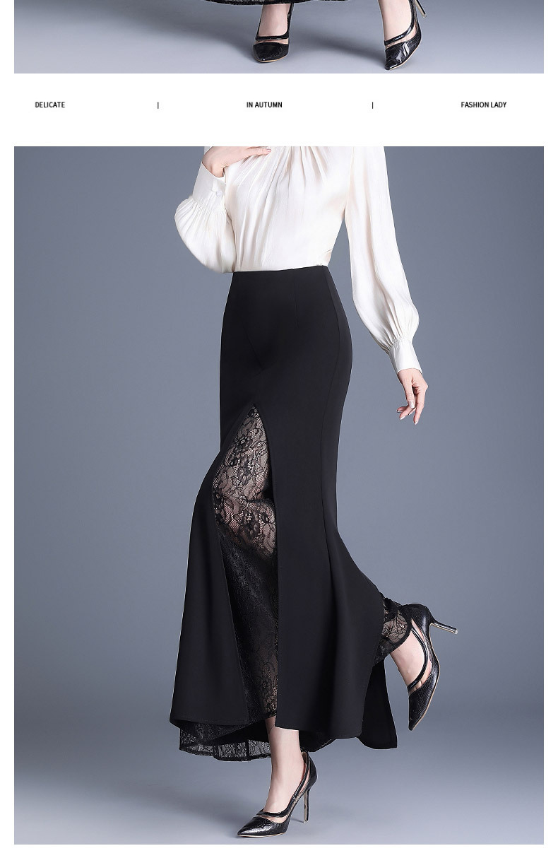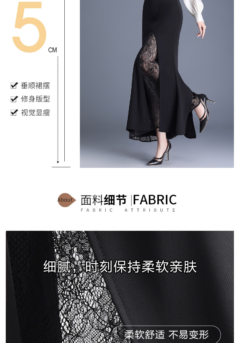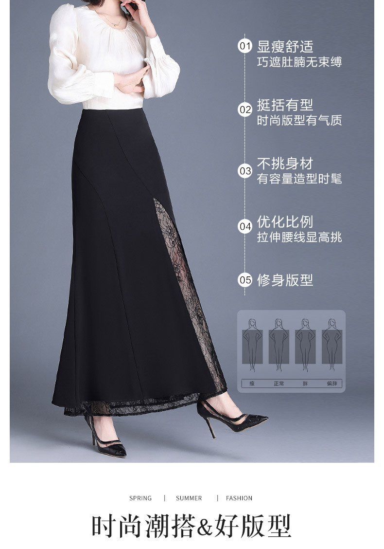 LDNS-2519-L蕾丝拼接时尚优雅鱼尾裙显瘦黑色洋气包臀裙春夏款高腰通勤半身裙