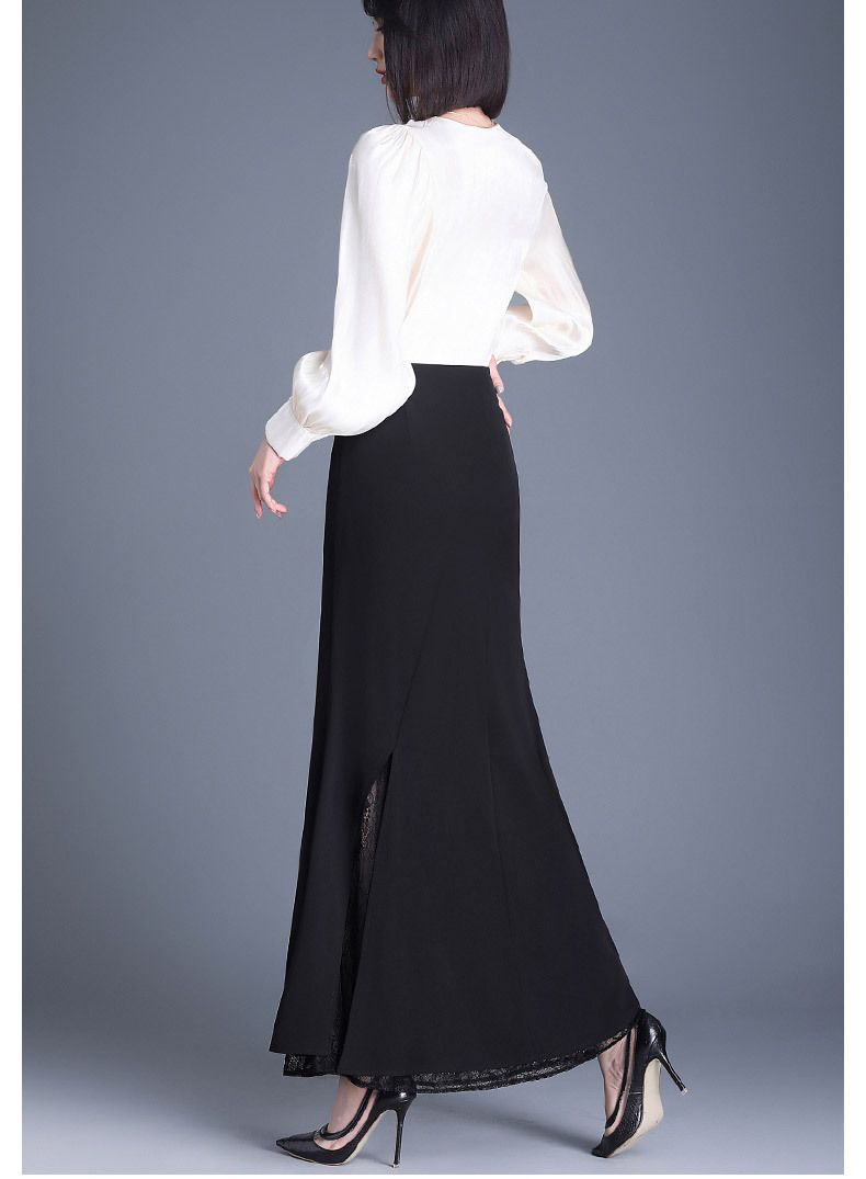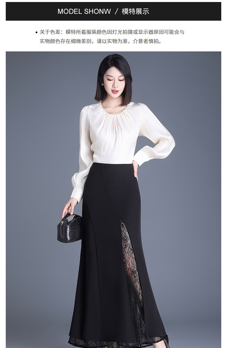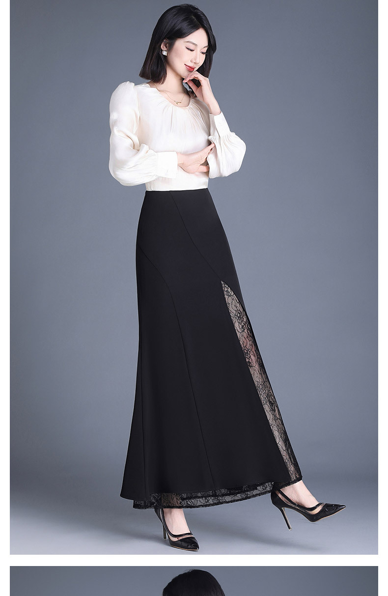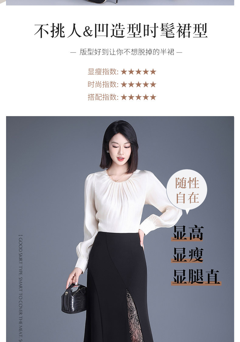 LDNS-2519-L蕾丝拼接时尚优雅鱼尾裙显瘦黑色洋气包臀裙春夏款高腰通勤半身裙