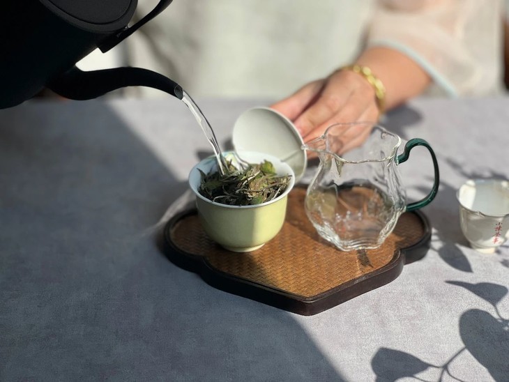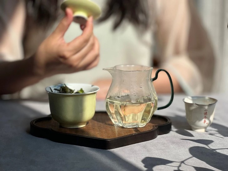 5、出汤后须迅速揭盖闻香,此时盖子最热,盖香最丰富而旺盛,能让人闻到全部的,各个沸点的香气。