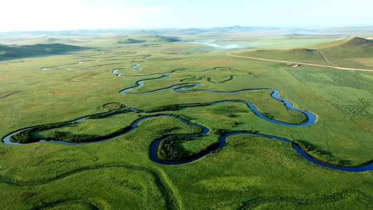 草原生命线之一的乌拉盖河蜿蜒而过